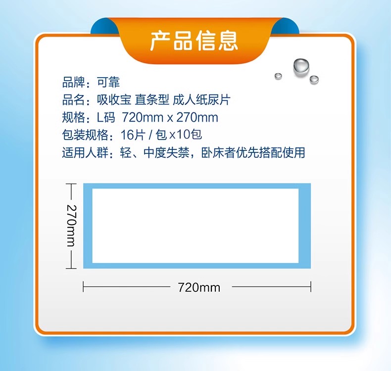 【吸收宝直条型纸尿片 单包】直条型成人纸尿片720*270 16片