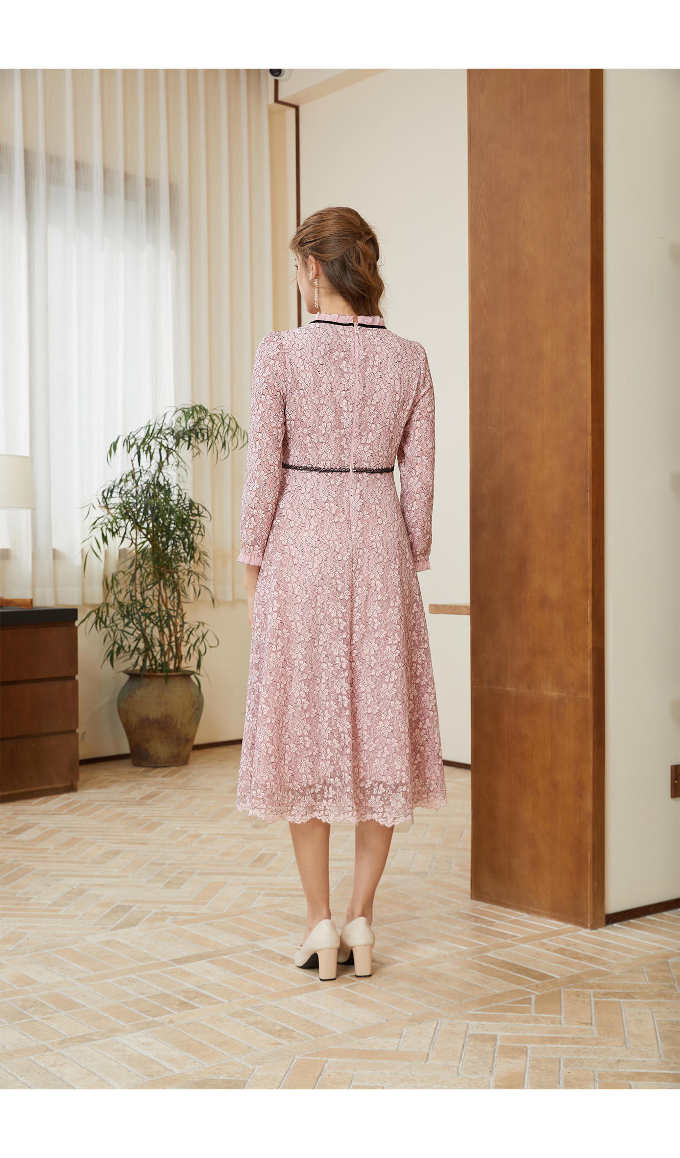 司歌绒感蕾丝修身高贵长袖连衣裙A901238X