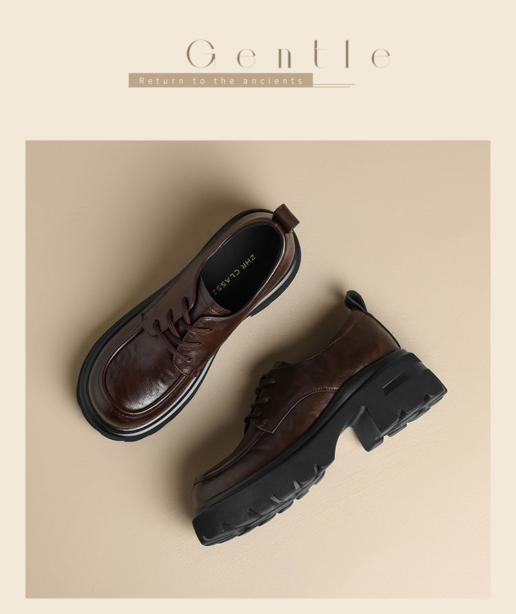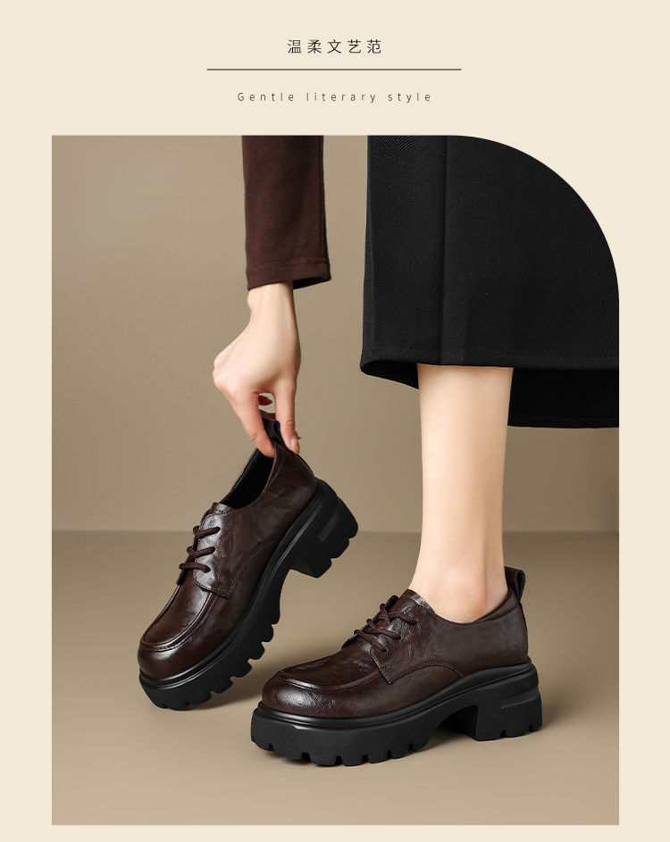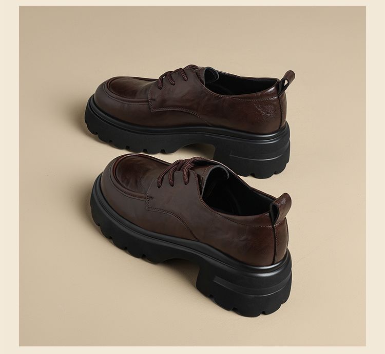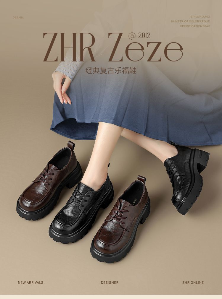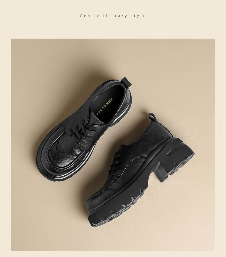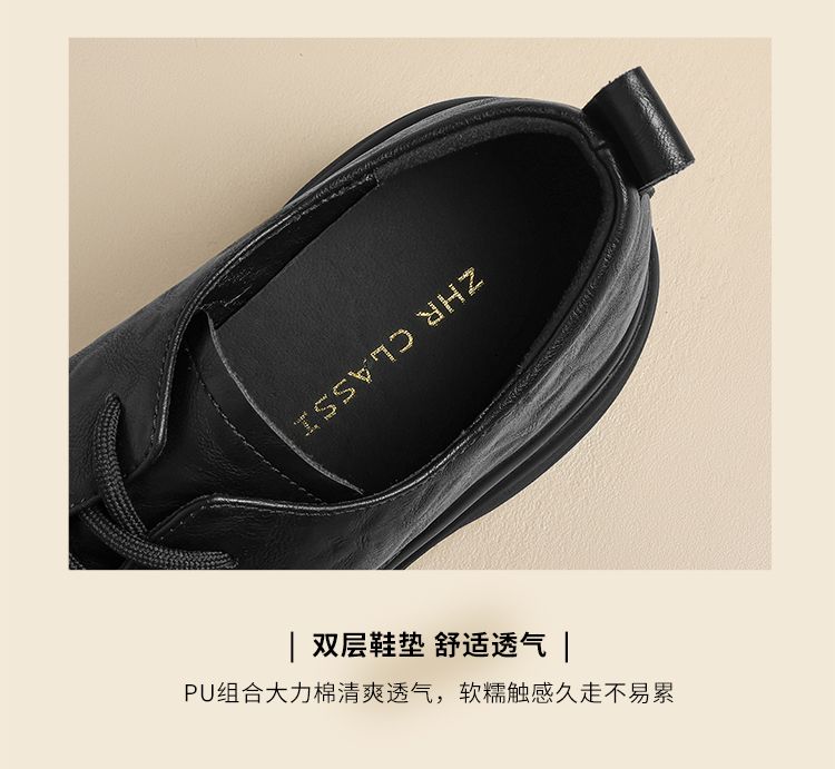 ZHR则则日系复古小皮鞋2024新款厚底单鞋英伦系带乐福鞋百搭女鞋