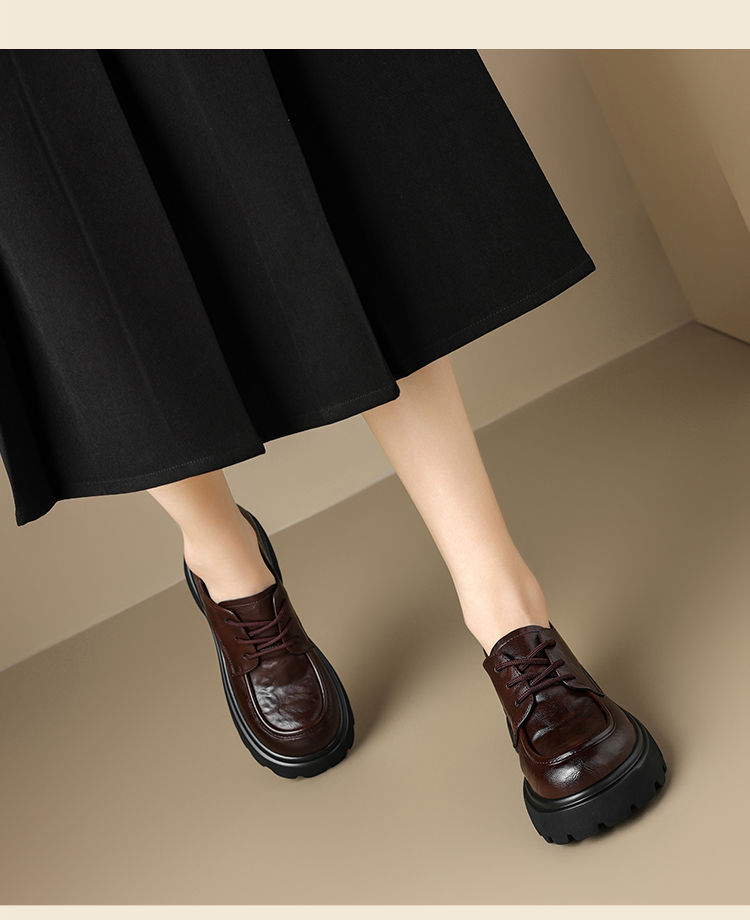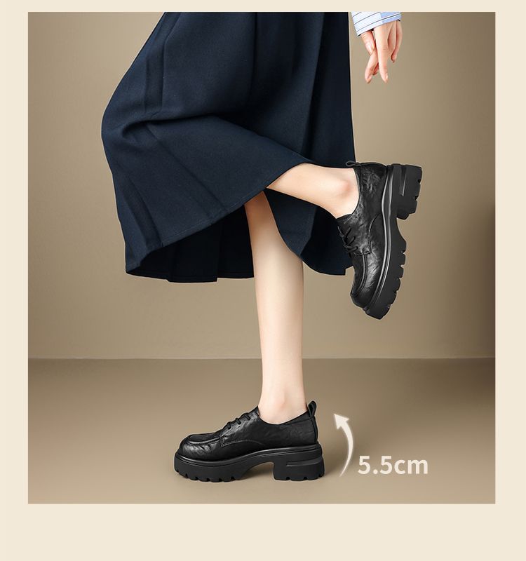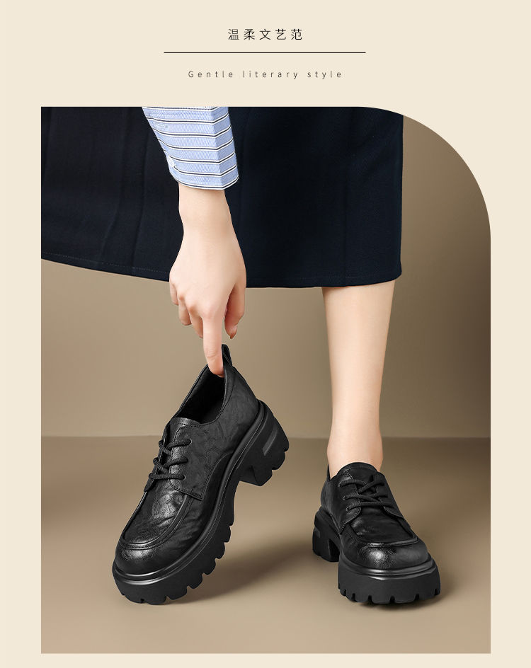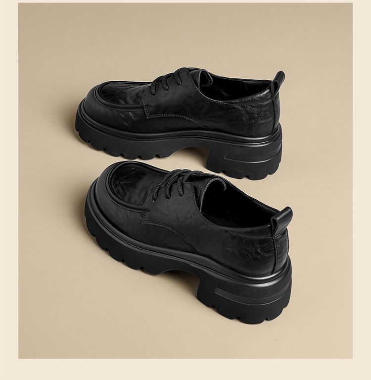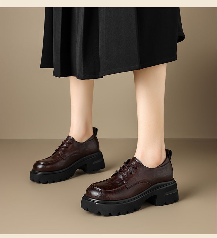 ZHR则则日系复古小皮鞋2024新款厚底单鞋英伦系带乐福鞋百搭女鞋