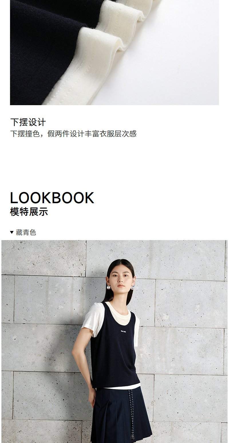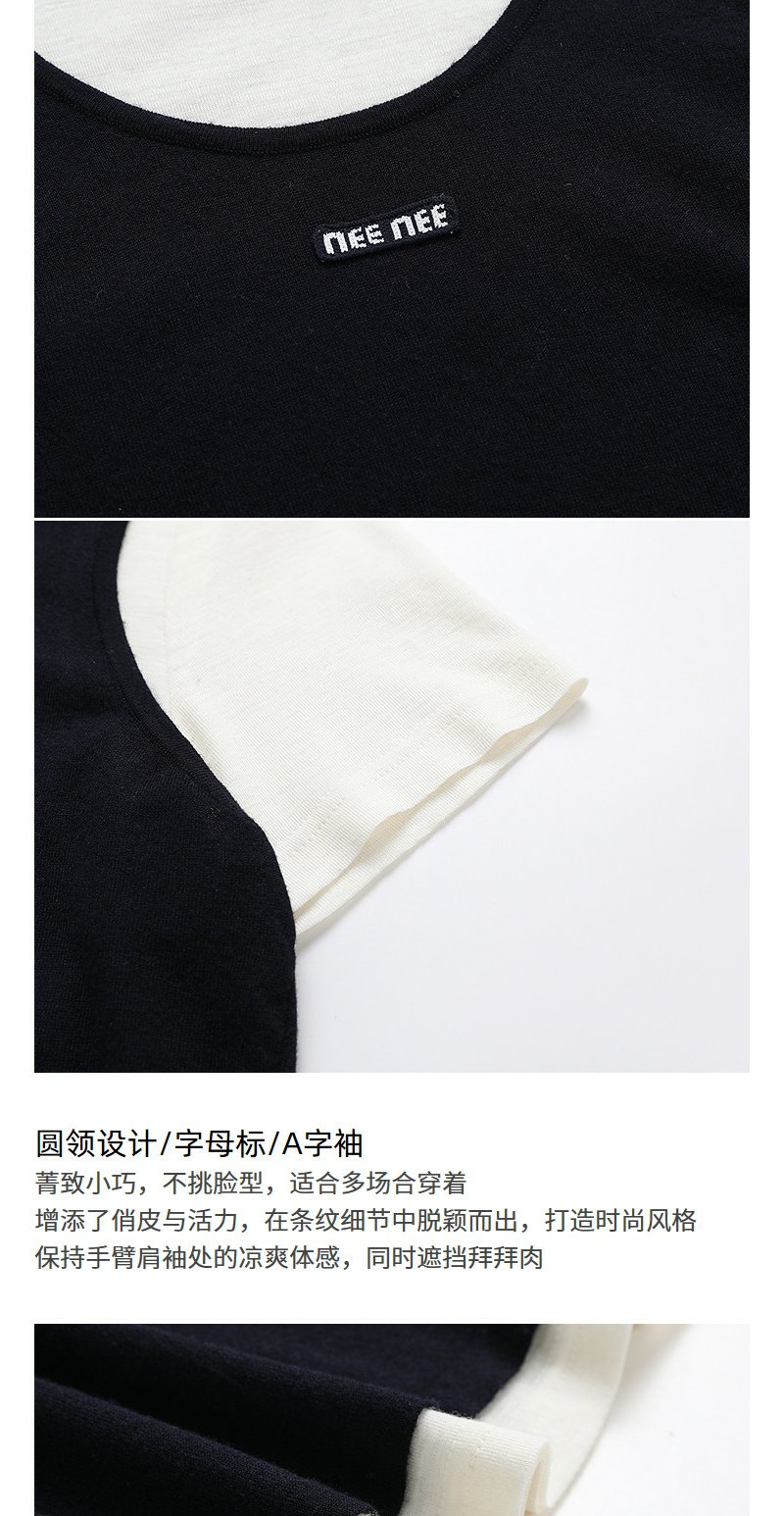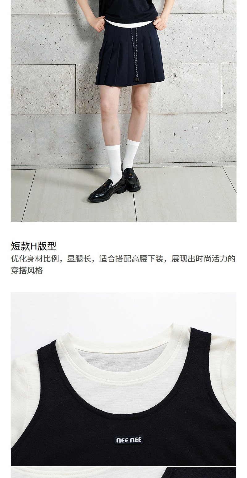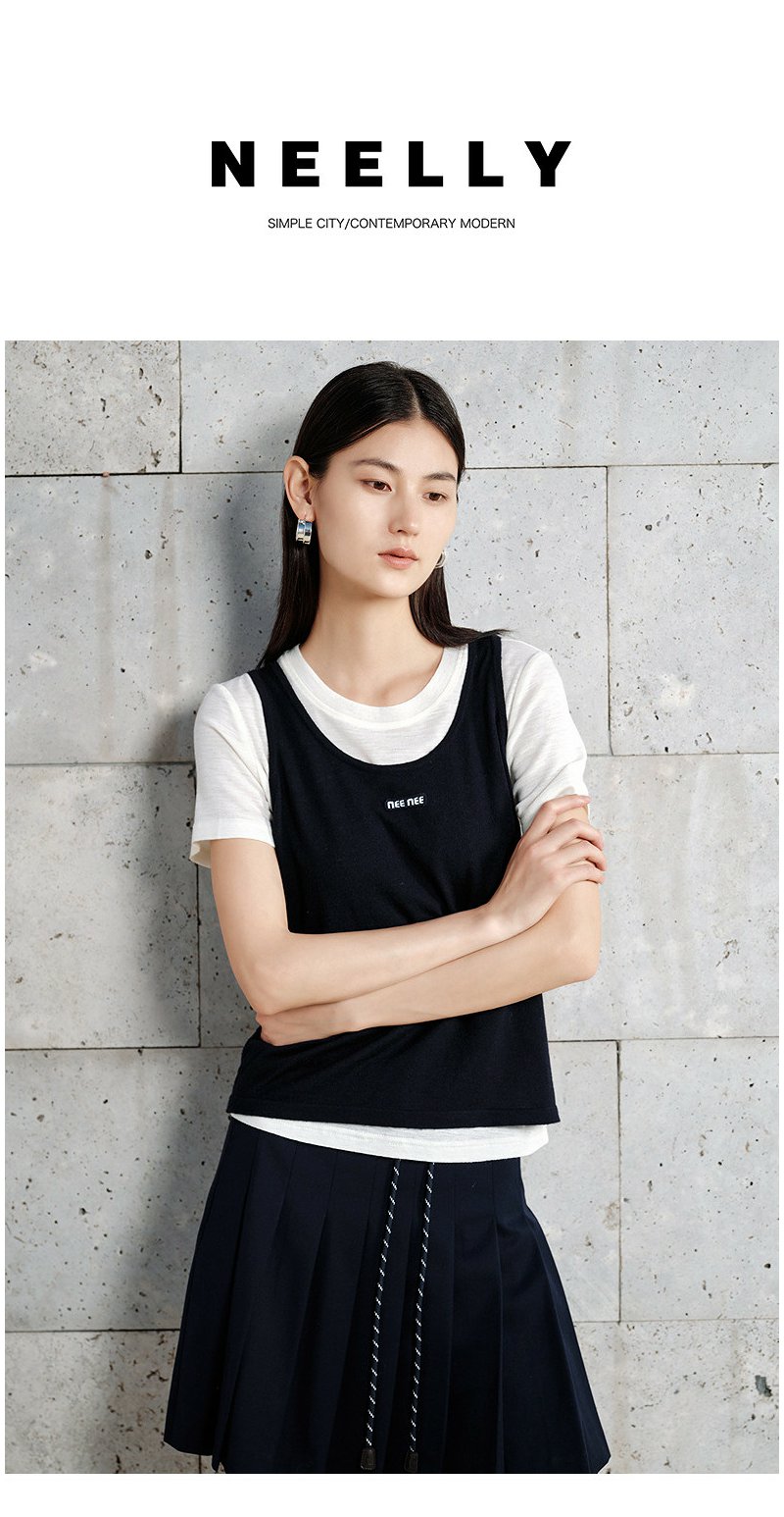NEELLY纳俪商场同款春季新款时尚假两件针织衫女撞色短袖气质上衣N26024A04511