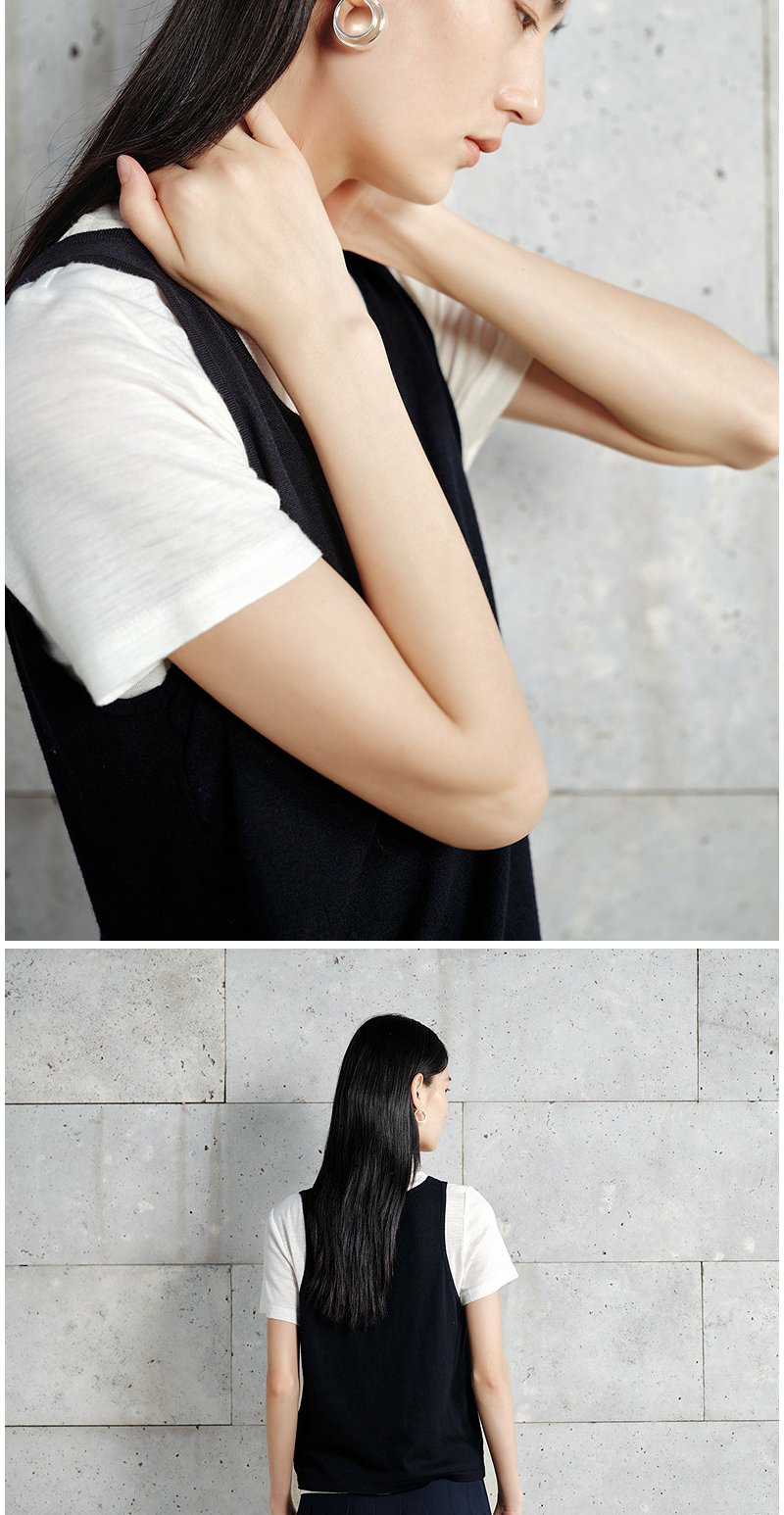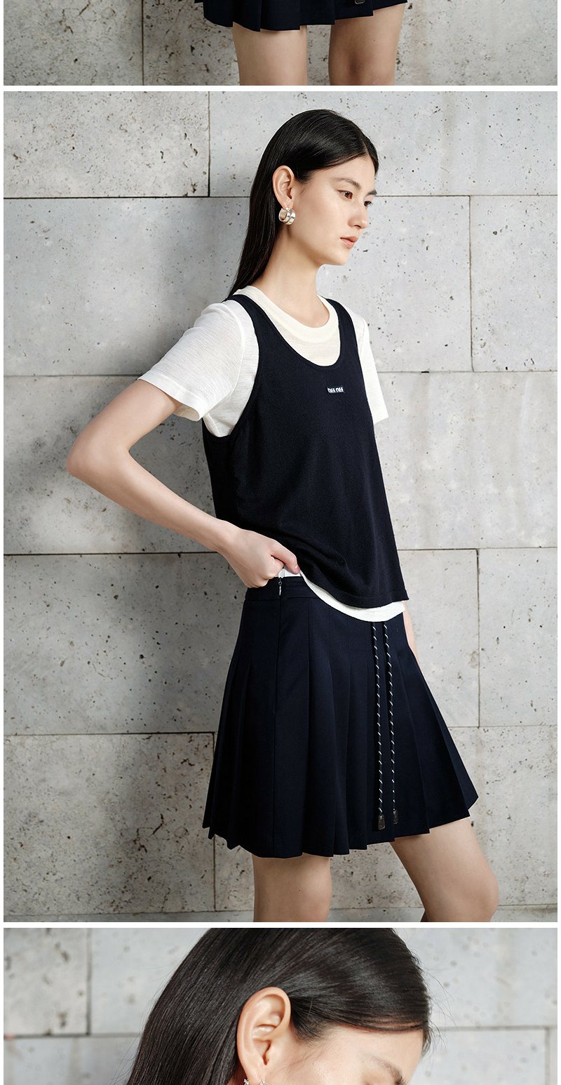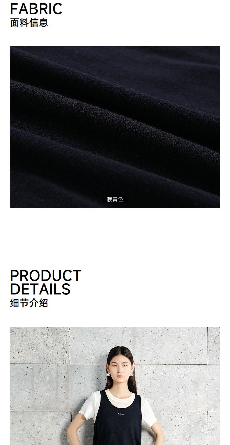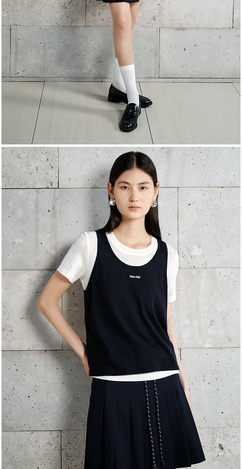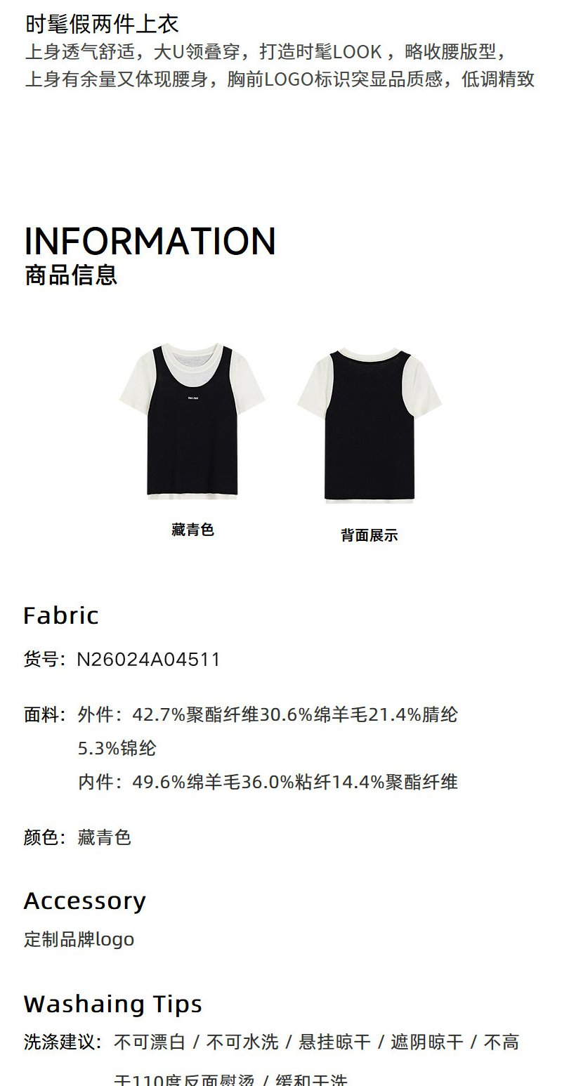 NEELLY纳俪商场同款春季新款时尚假两件针织衫女撞色短袖气质上衣N26024A04511