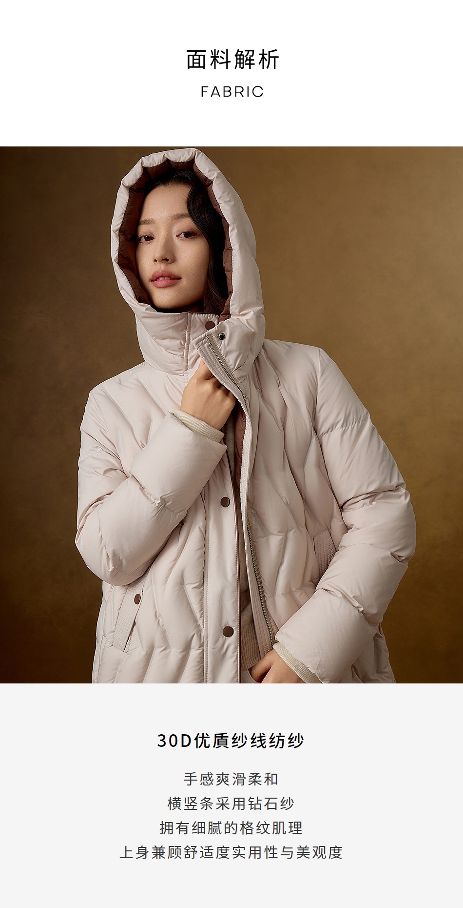 VGRASS维格娜丝24年冬季新款法国木拉鸭绒连帽牙胶外套