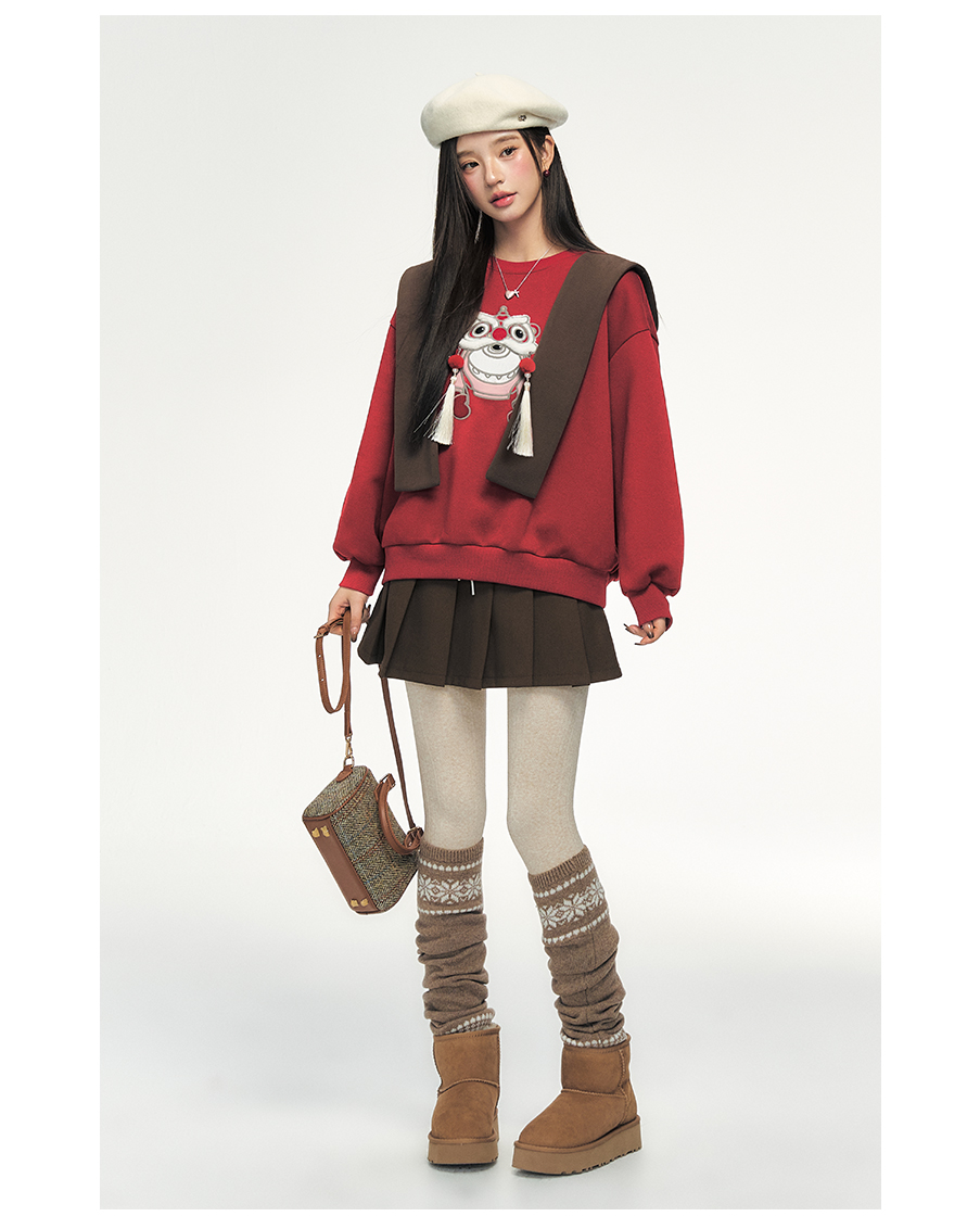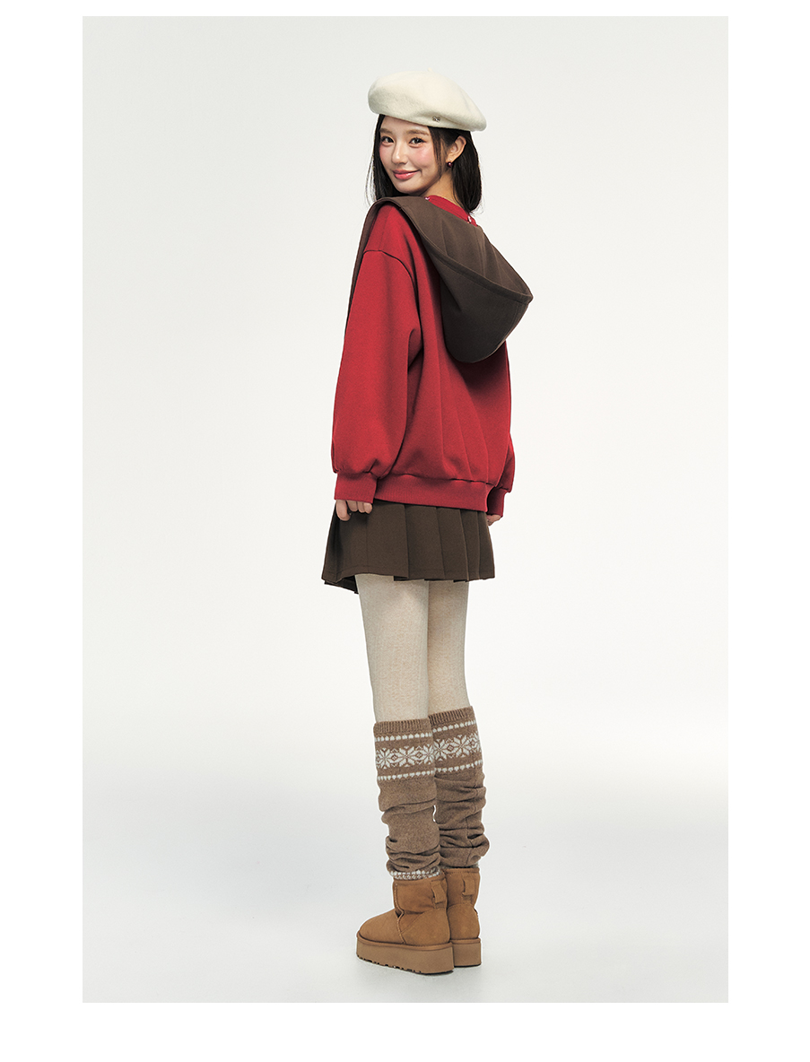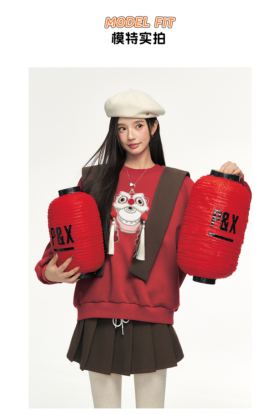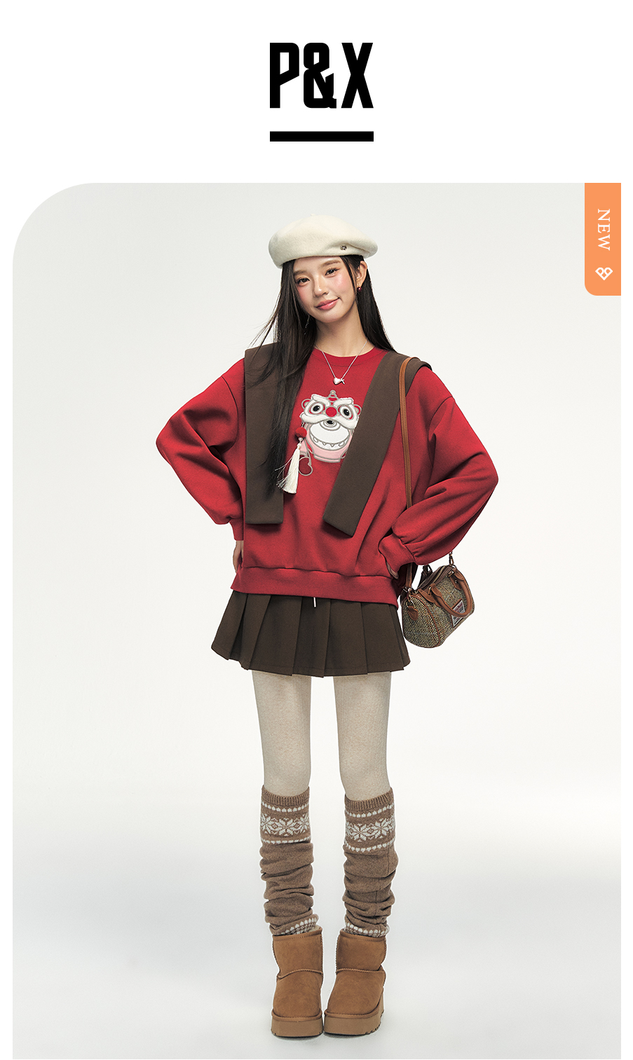 P&X设计师女装春季新款连帽短款卫衣825117177 红色