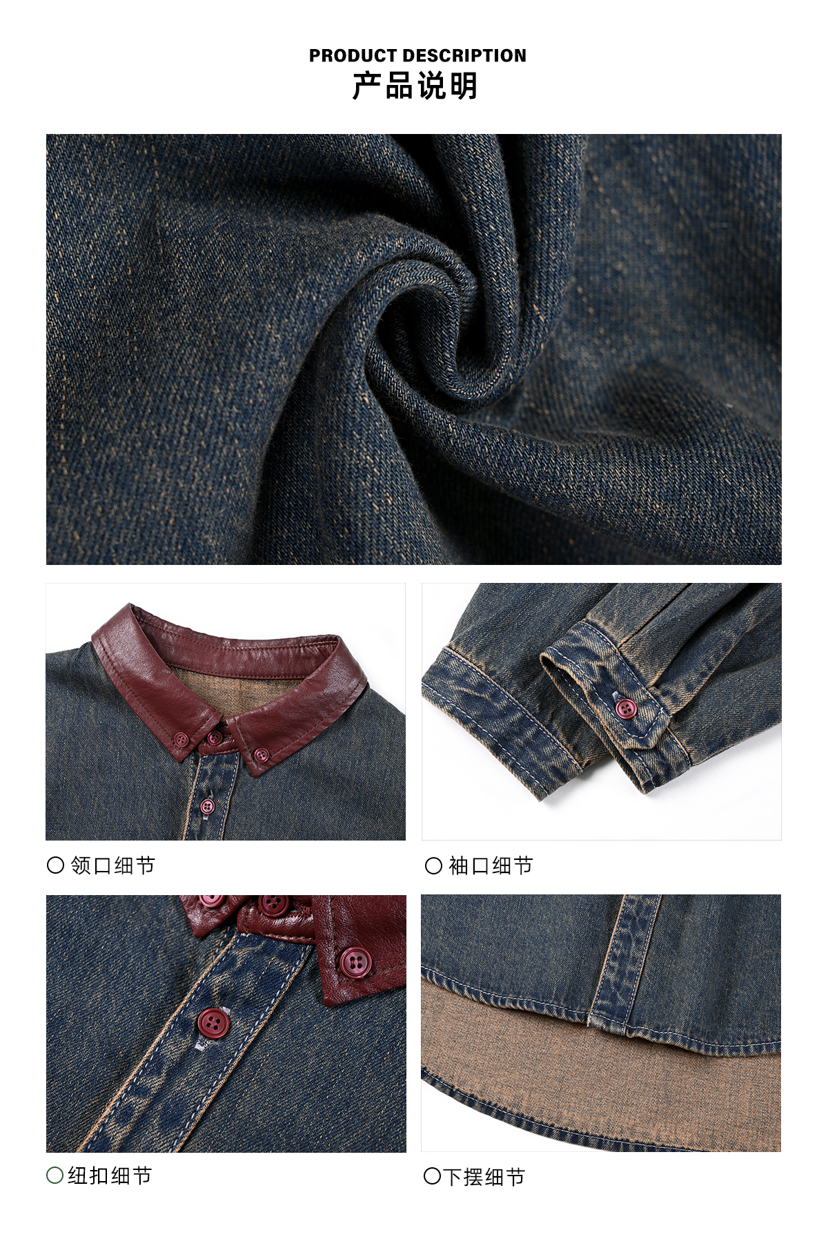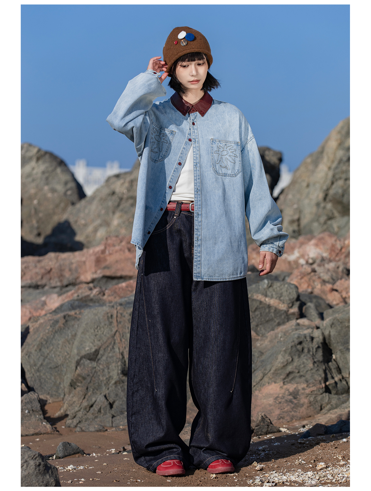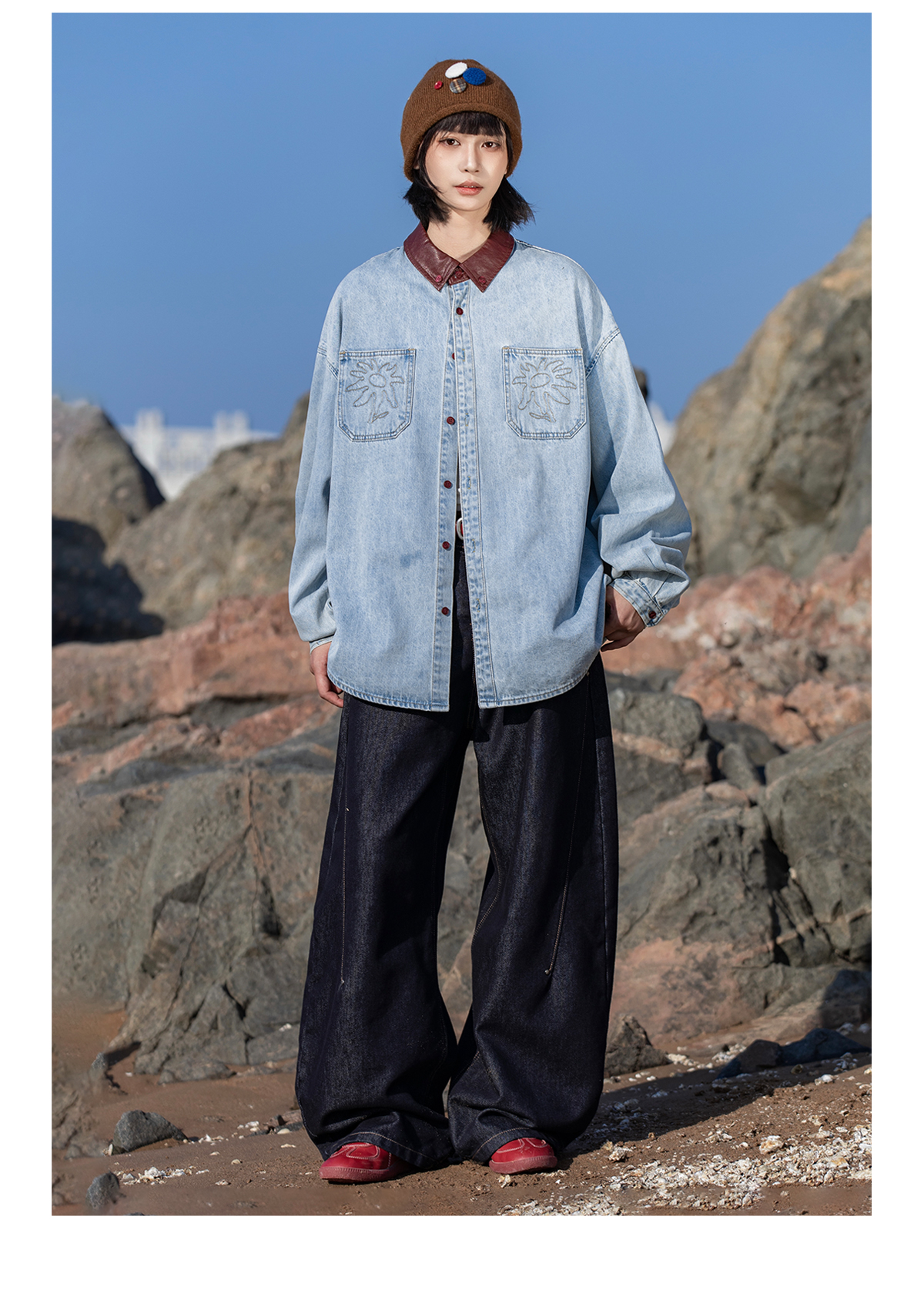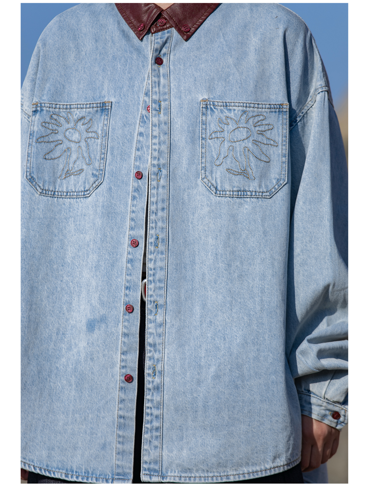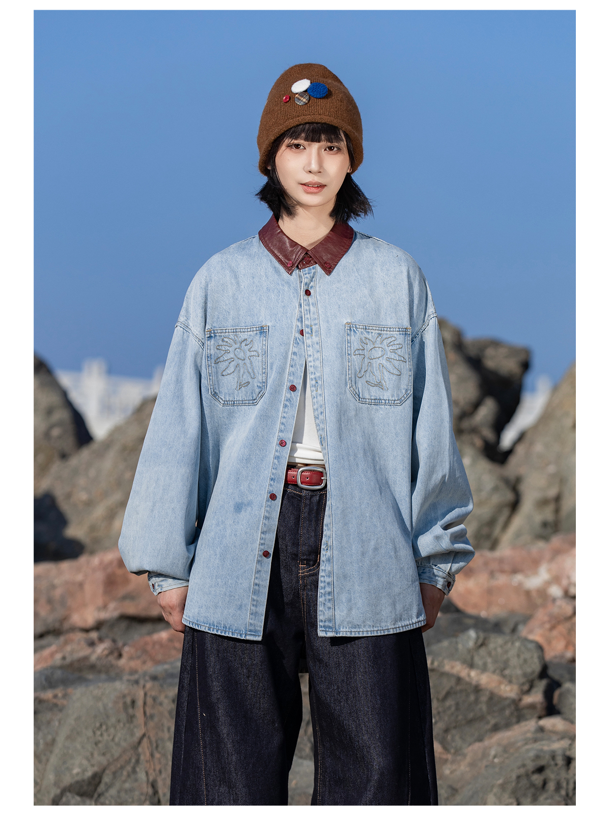 早乙女惠子saotome/STMCS252280/撞色皮领牛仔衬衫