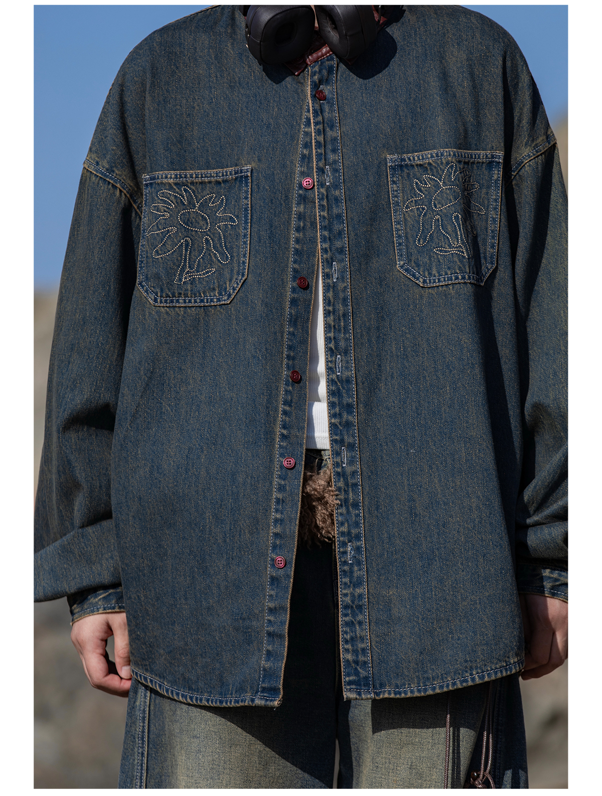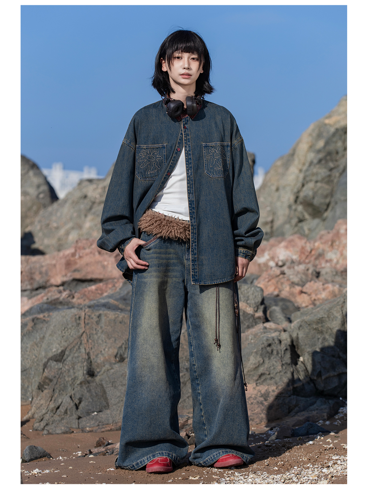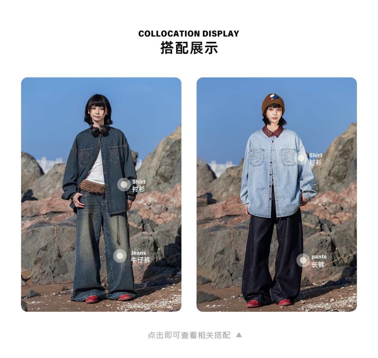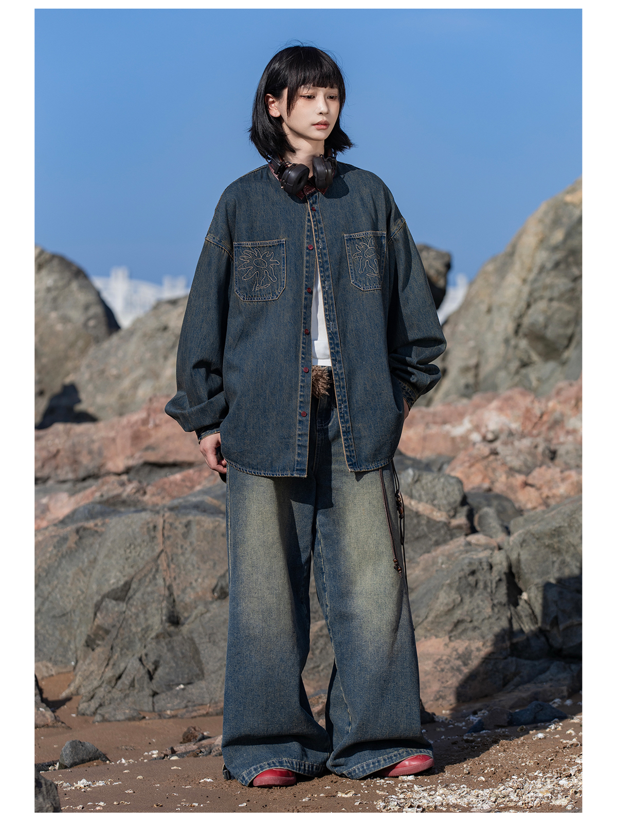 早乙女惠子saotome/STMCS252280/撞色皮领牛仔衬衫
