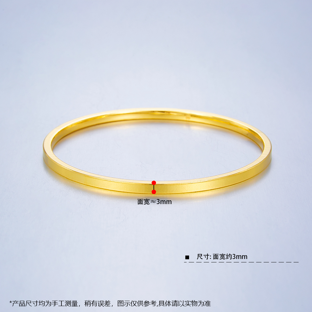 【限时克减150元】足金999.9 四方光圈手镯光面四方素圈手镯实心固口手镯(面宽约2.8-3.2mm)(SZ00349)(预售产品下单后不退款不退货不换货不补差价)