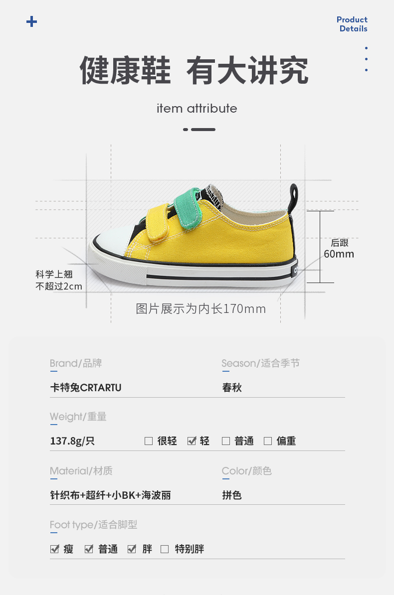 【春款上新】卡特兔春秋款宝宝帆布鞋休闲鞋 一色/二段三段