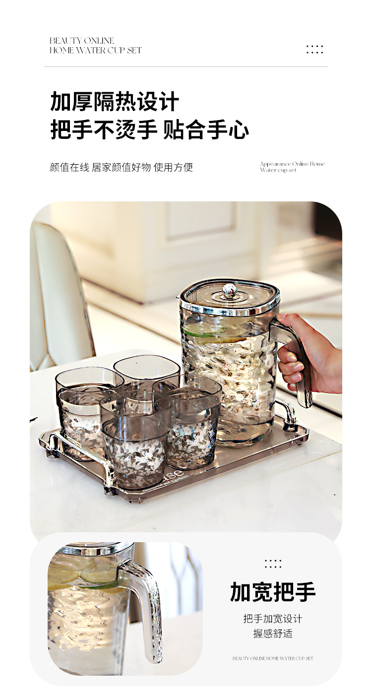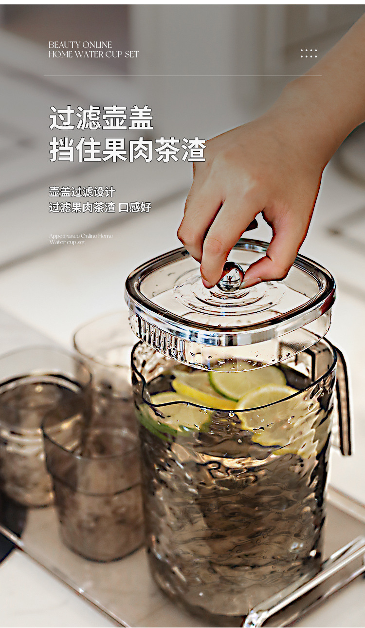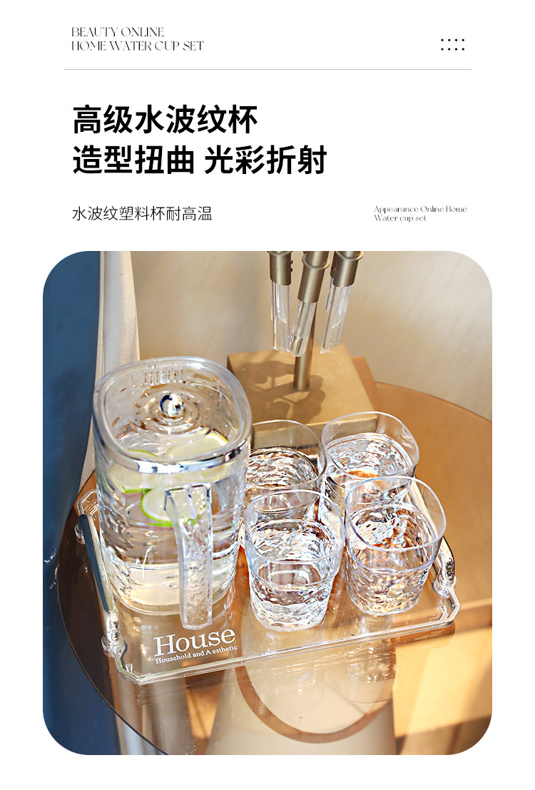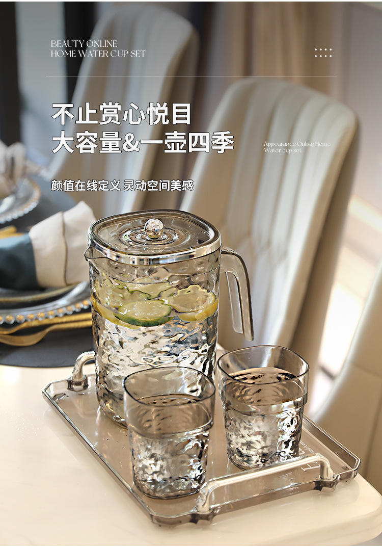 【轻奢波纹冷水壶】居家加厚隔热冷水壶 大容量塑料凉水壶凉水杯套装