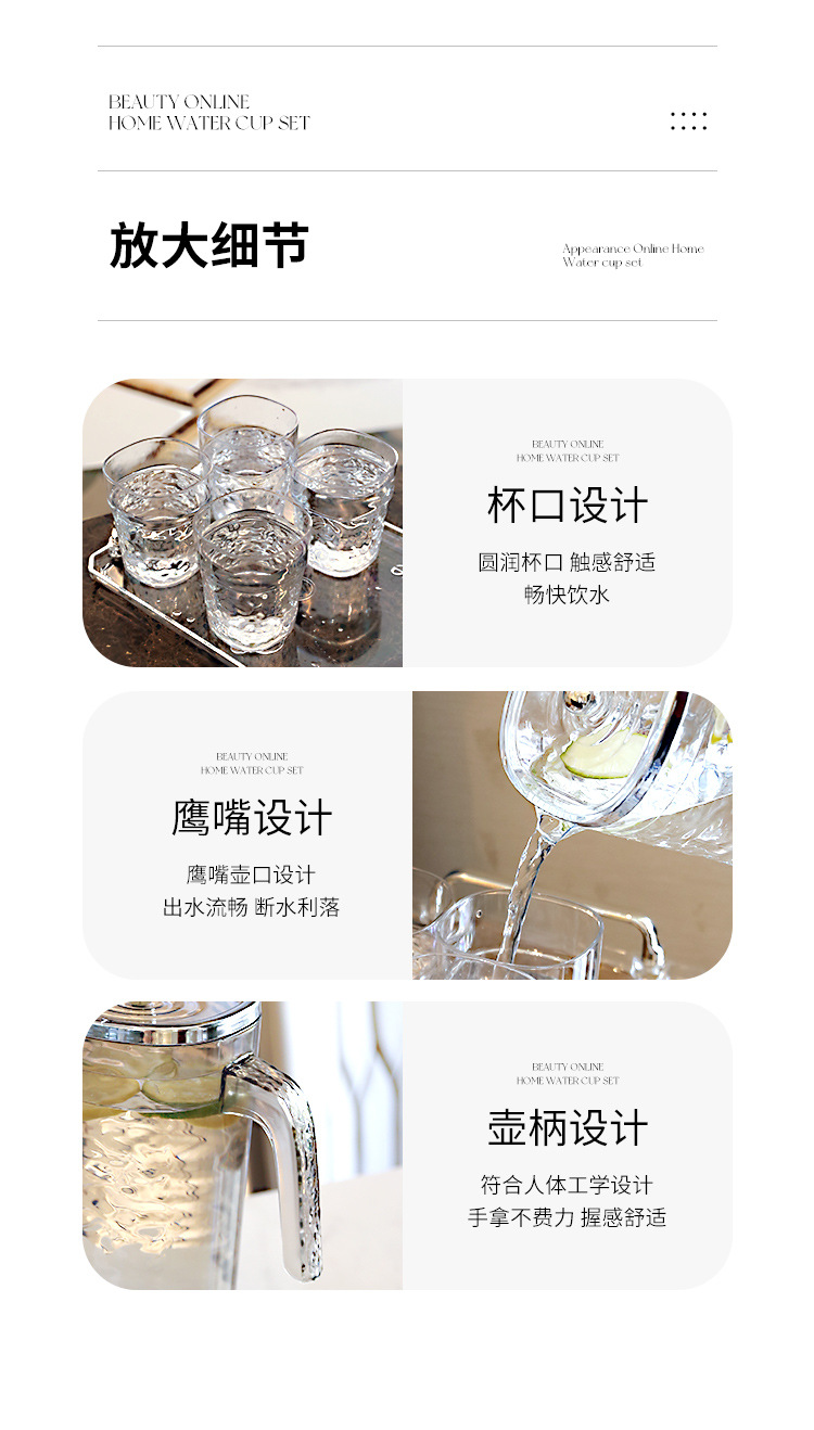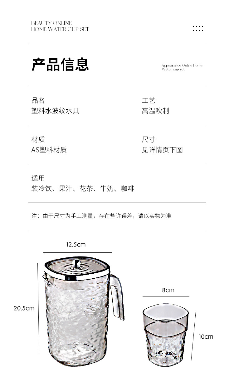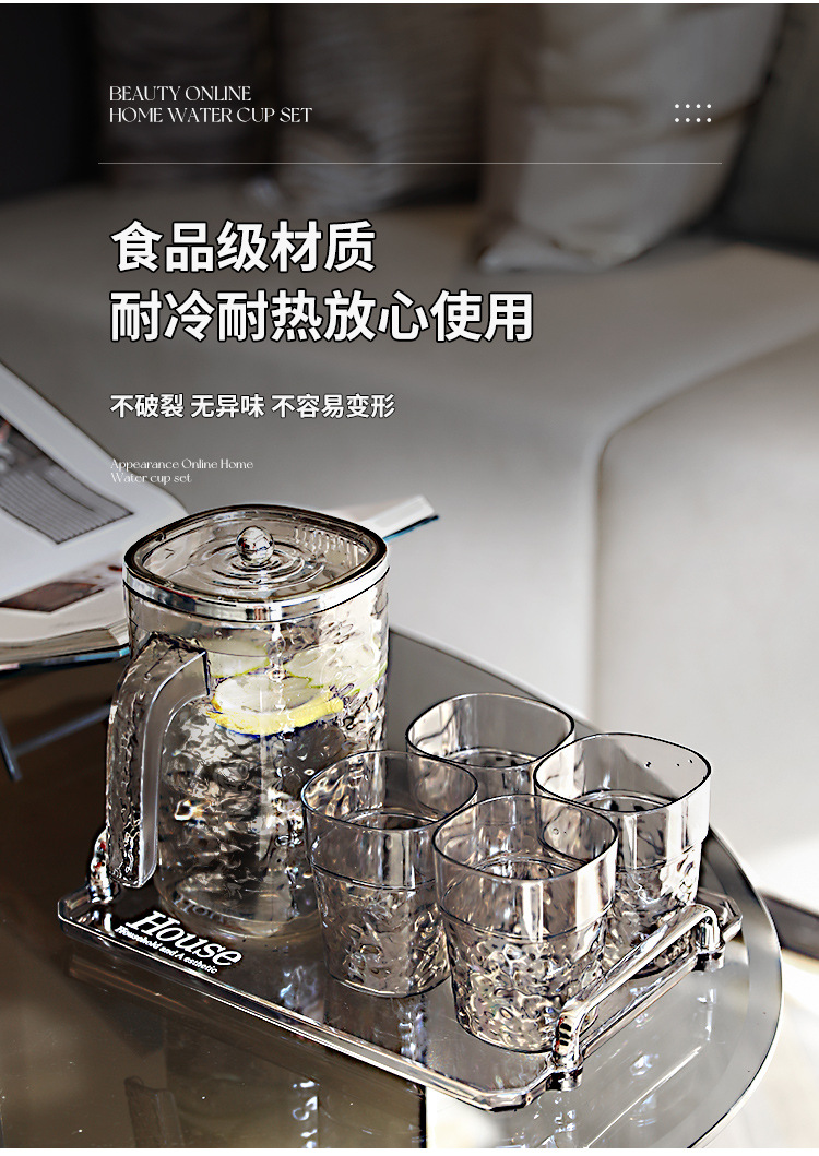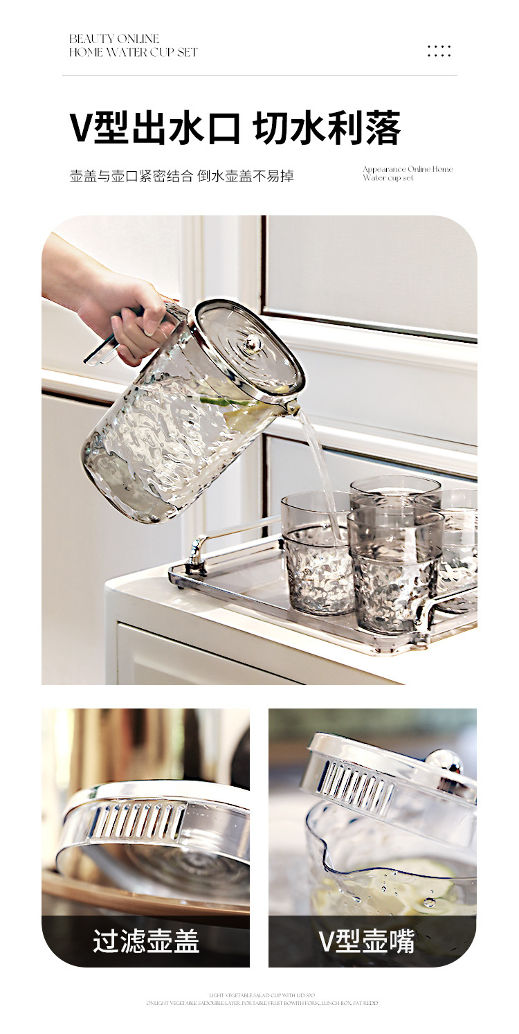 【轻奢波纹冷水壶】居家加厚隔热冷水壶 大容量塑料凉水壶凉水杯套装