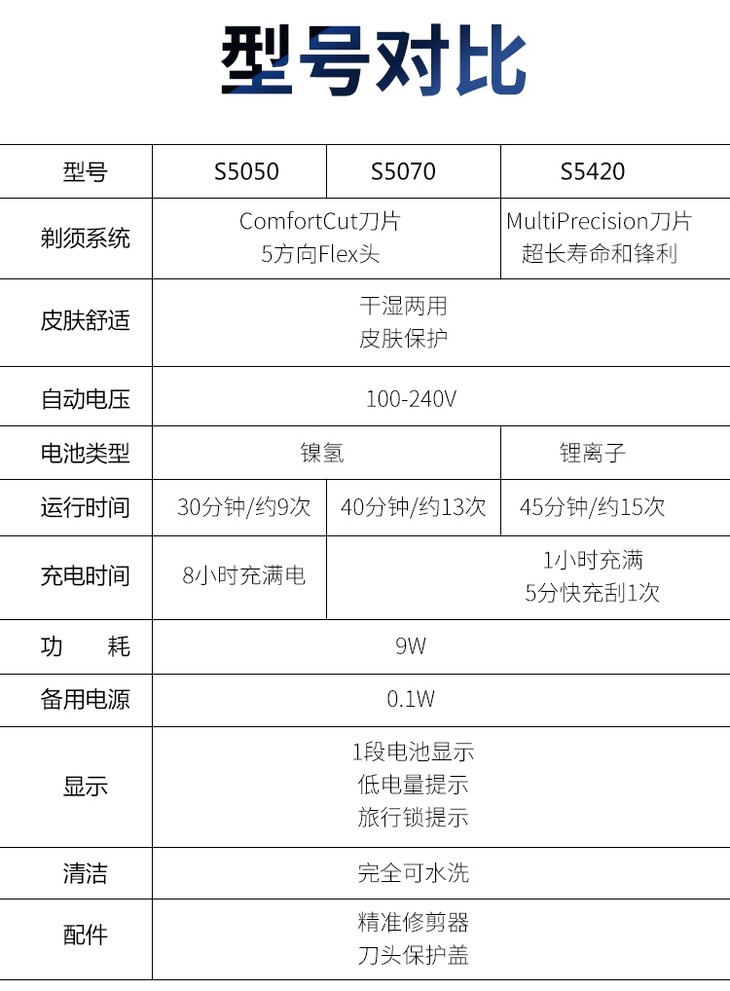 【现货】日版Philips/飞利浦男士电动剃须刀S5050/S5060 充电式三刀头全身水洗