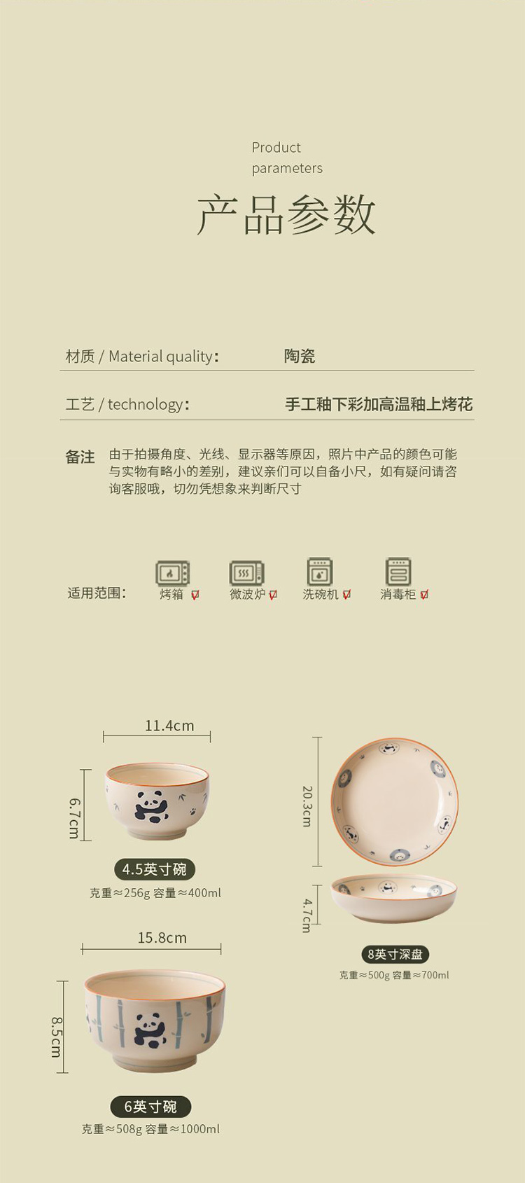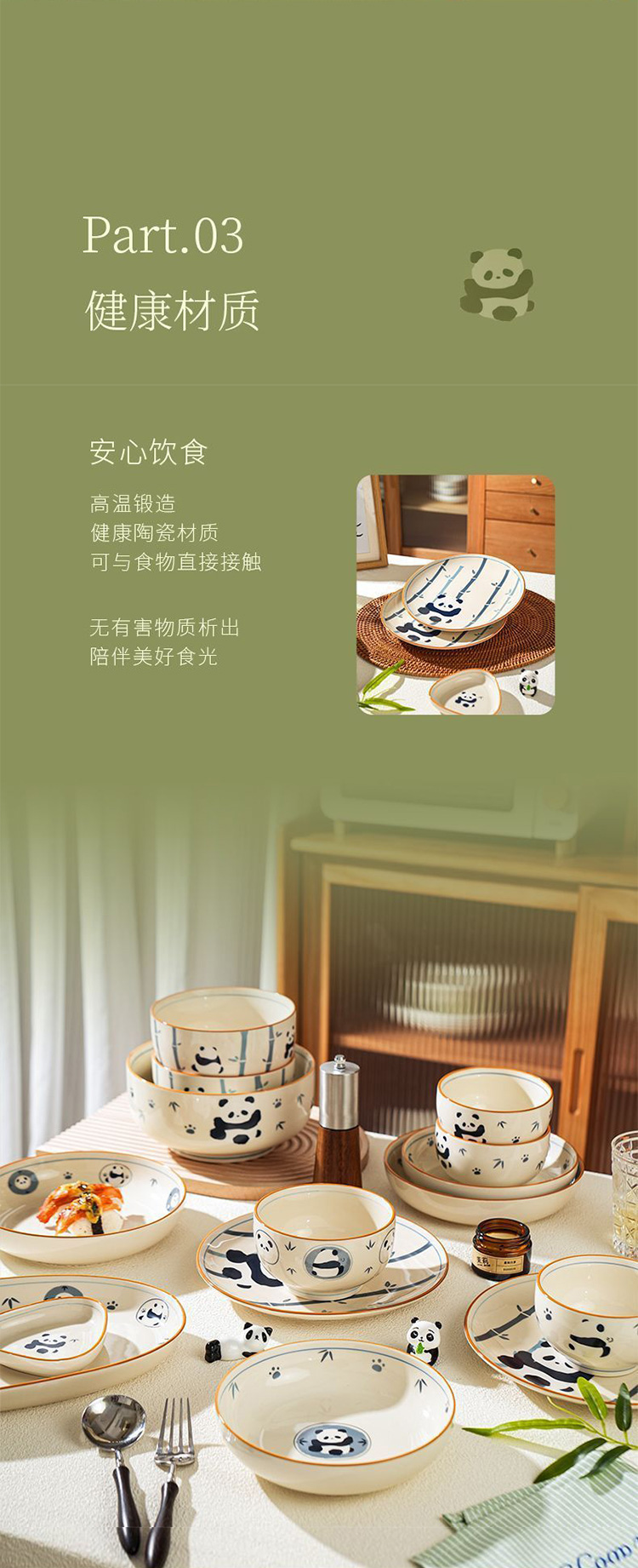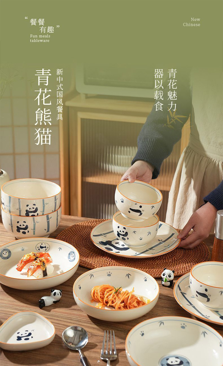 釉下彩陶瓷餐具(青花熊猫)