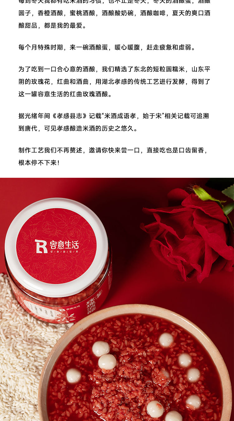 心选丨容意生活红曲玫瑰酒酿400g瓶装孝感醪糟月子米酒圆子酒酿鸡蛋包邮