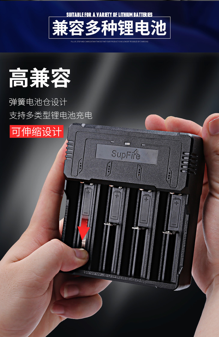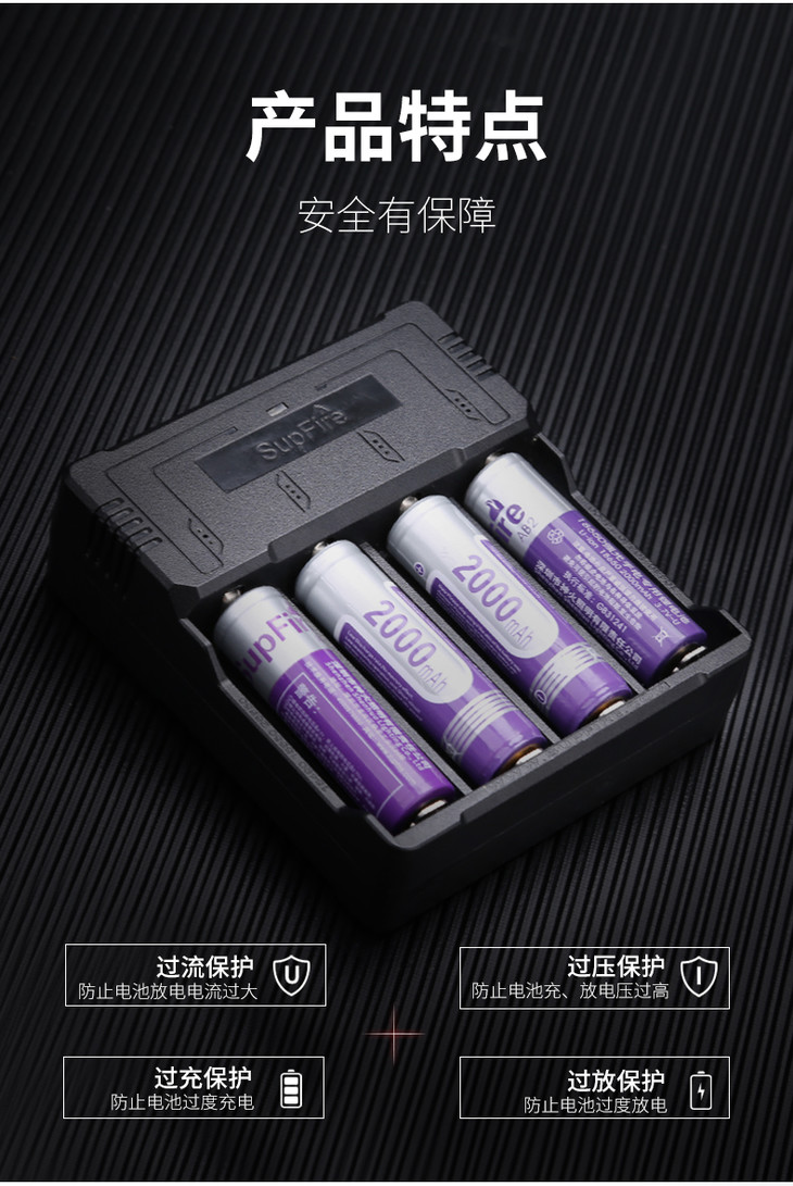 SUPERFIRE神火AC46充电器4槽原装正品 适用于18650/26650锂电池充电