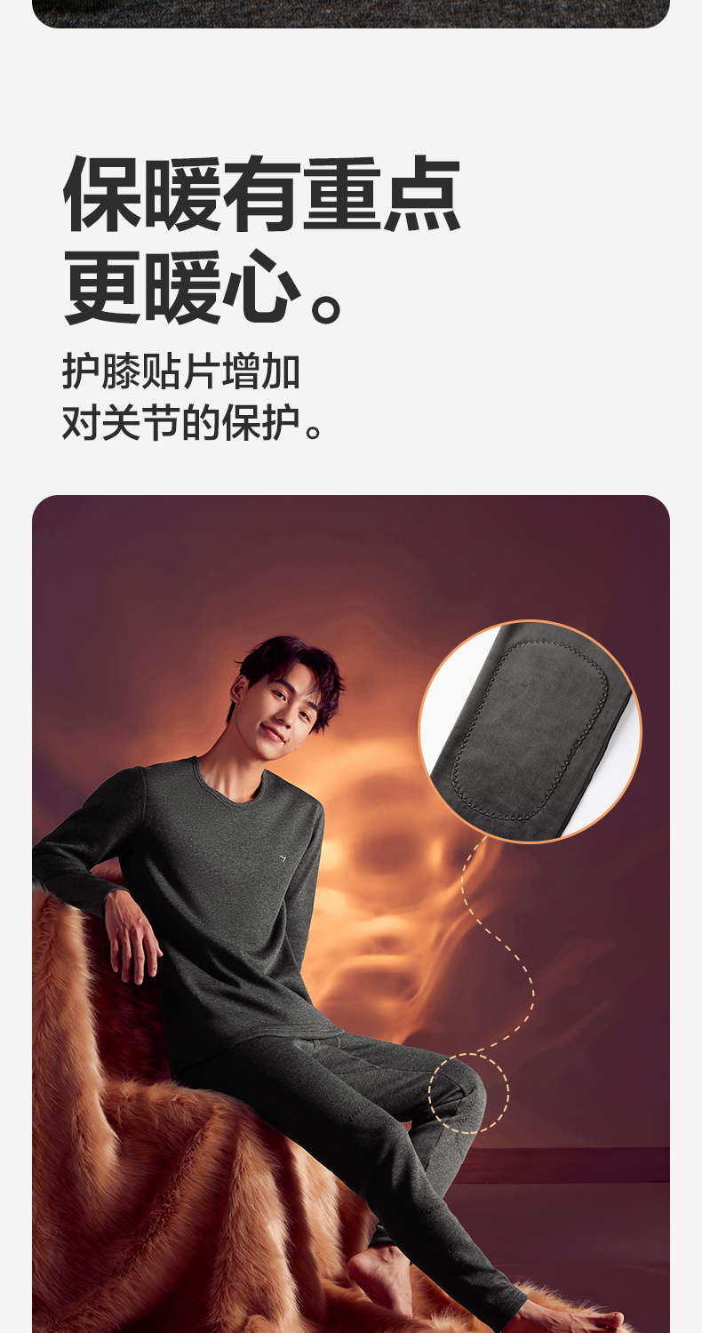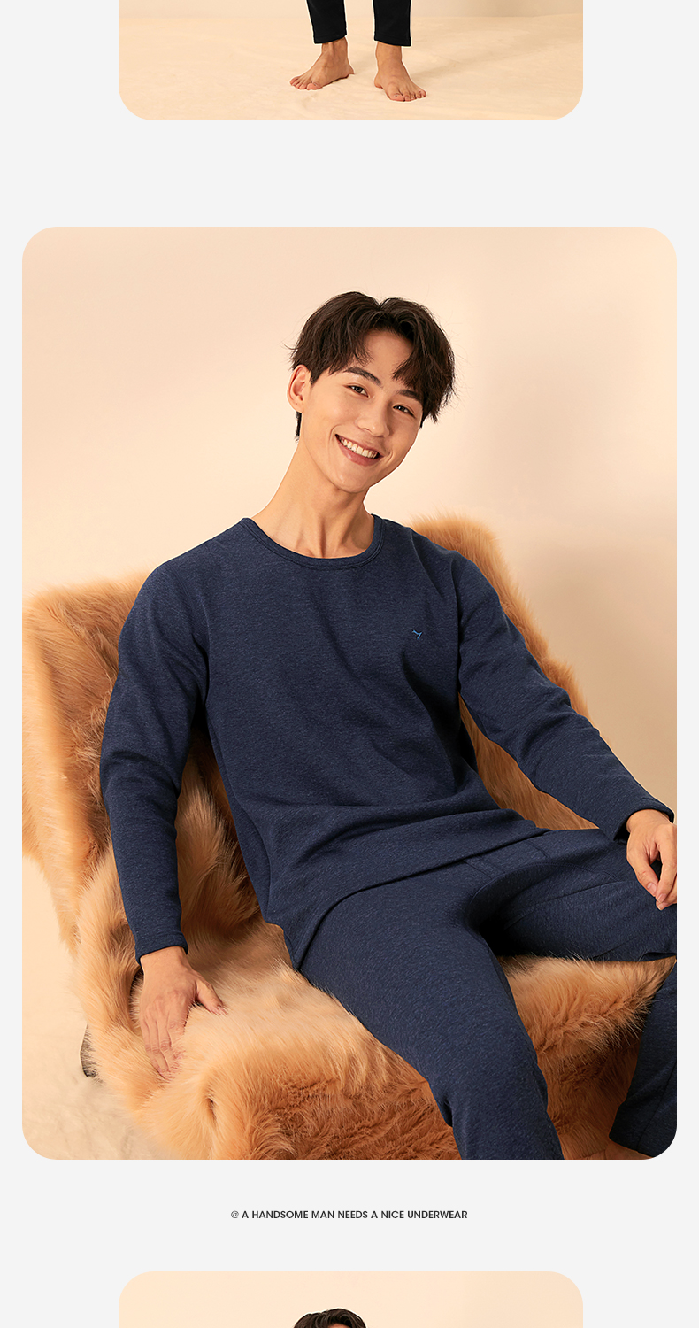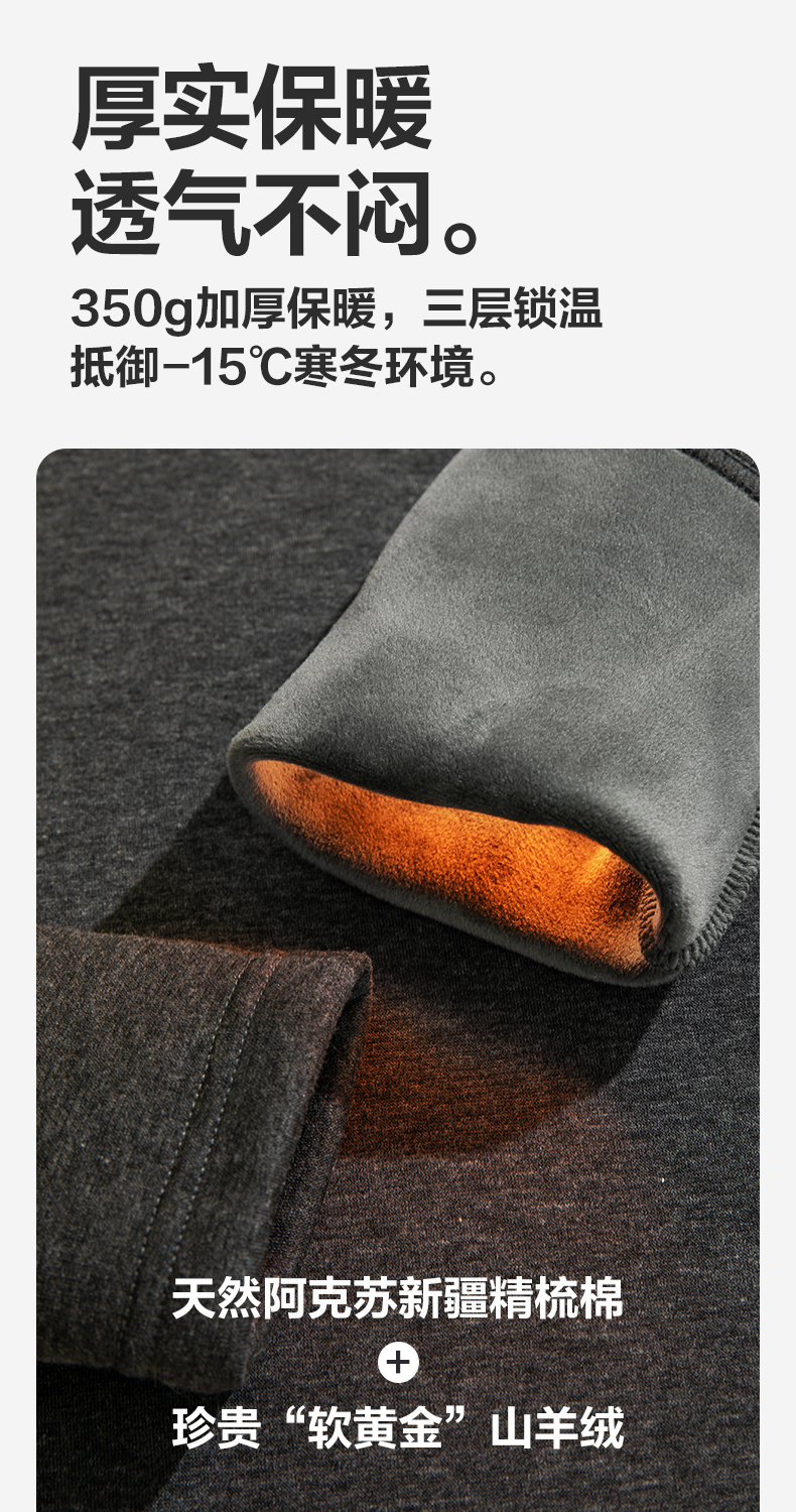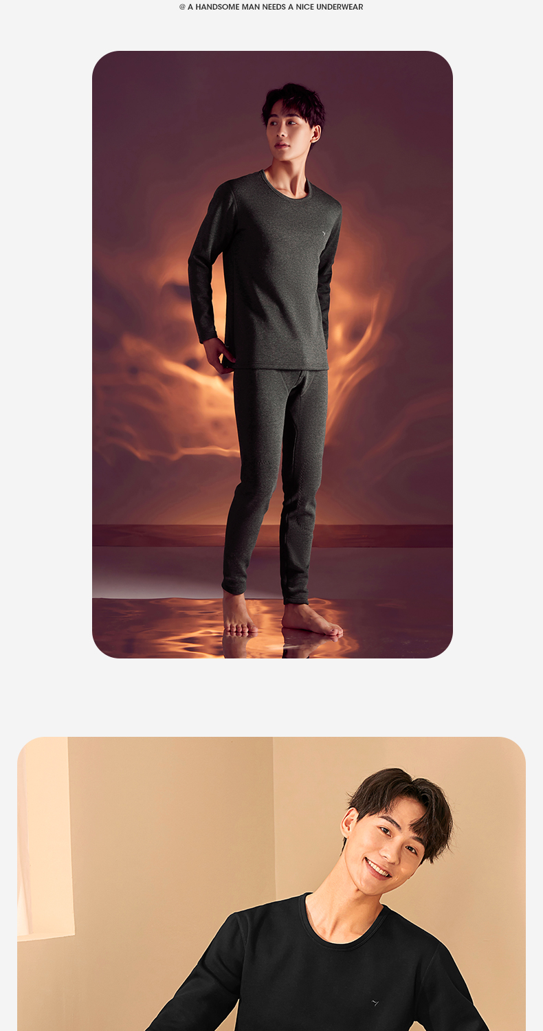 【套装】柒牌加绒加厚保暖内衣套装男士秋衣秋裤套装羊毛双面磨毛保暖打底 125F70070