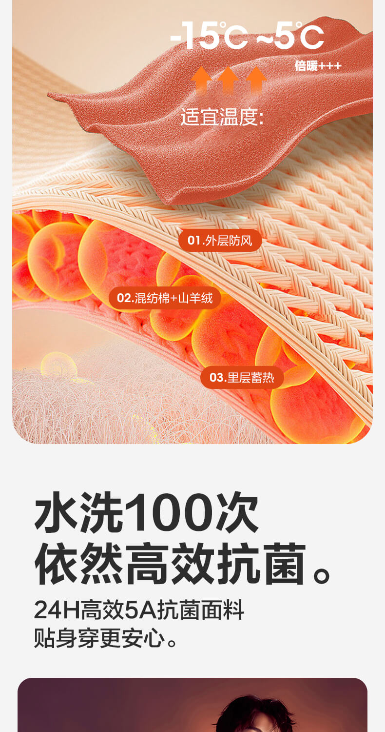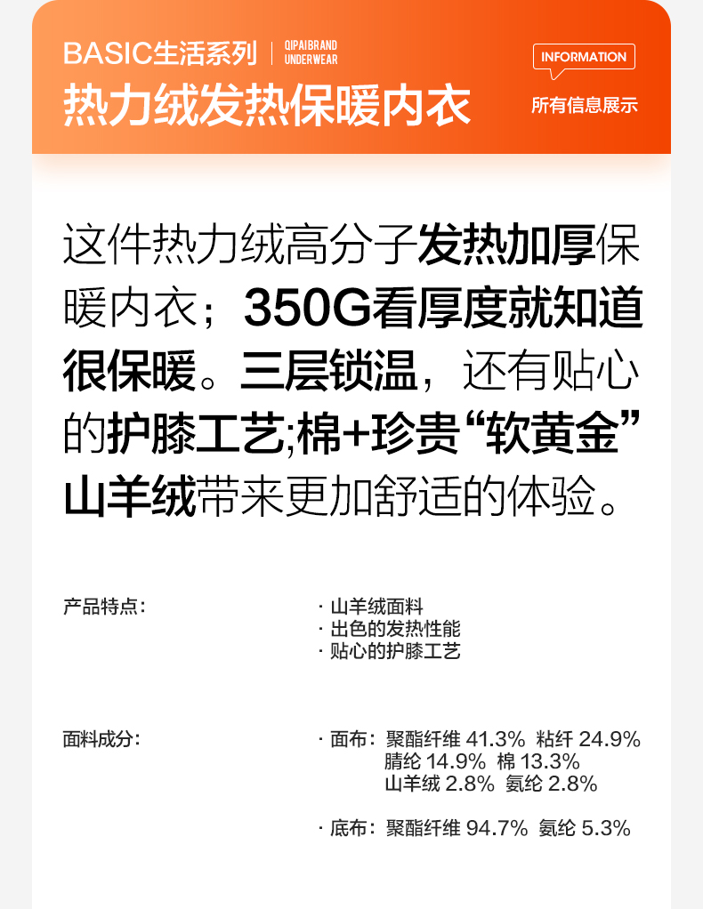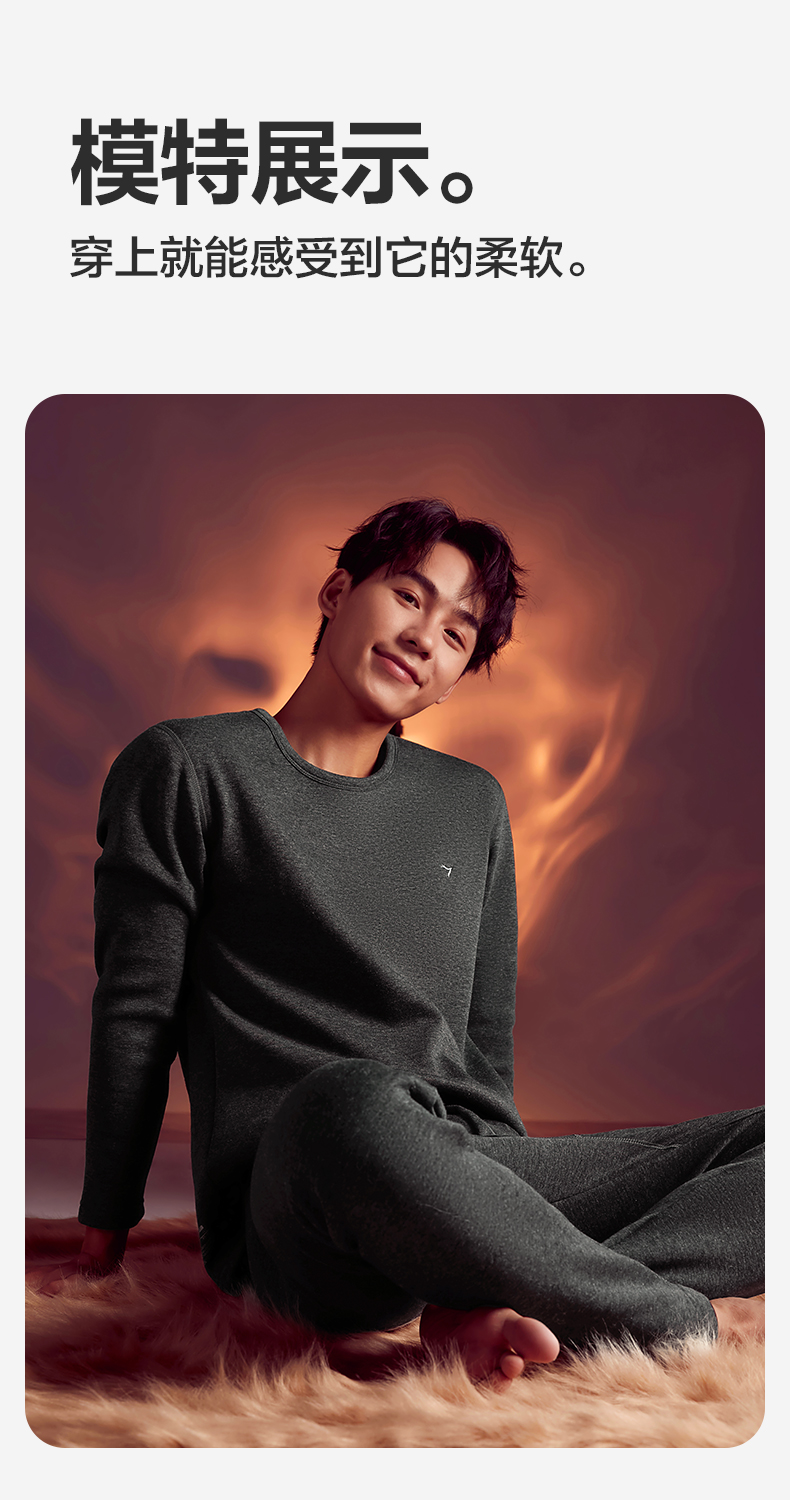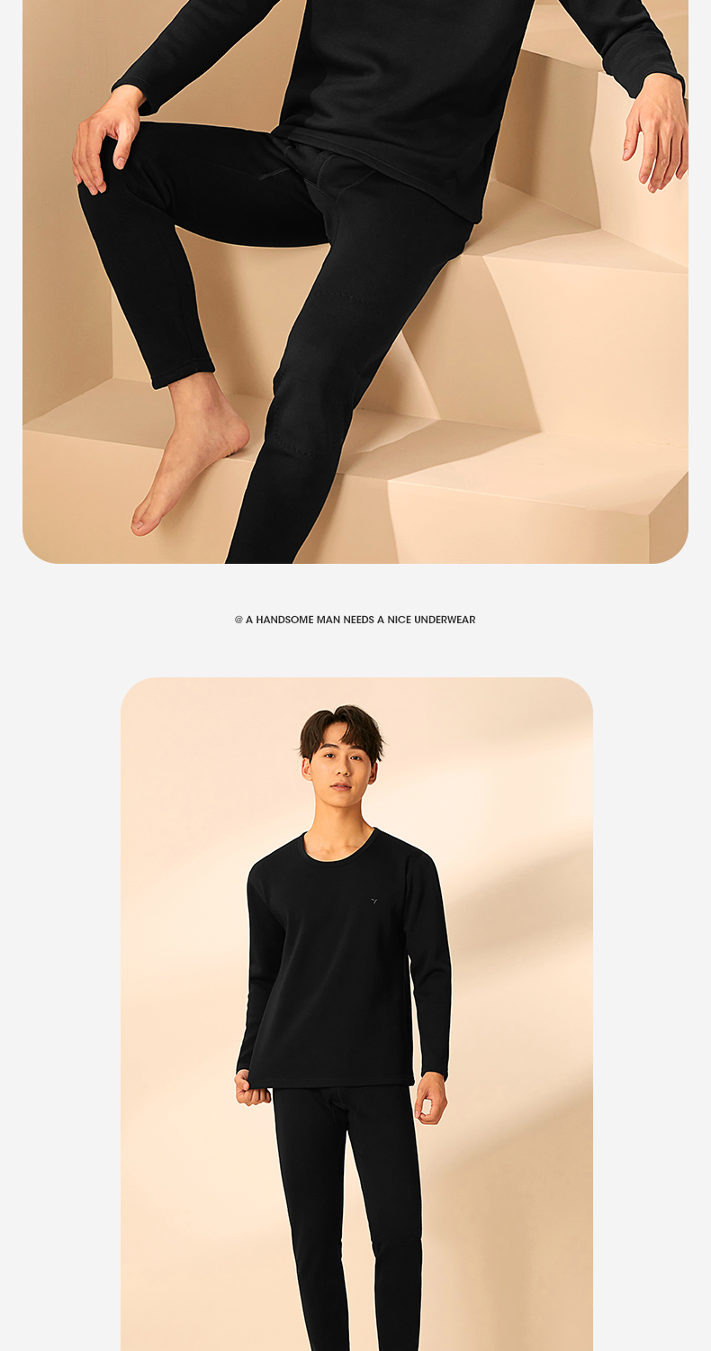 【套装】柒牌加绒加厚保暖内衣套装男士秋衣秋裤套装羊毛双面磨毛保暖打底 125F70070