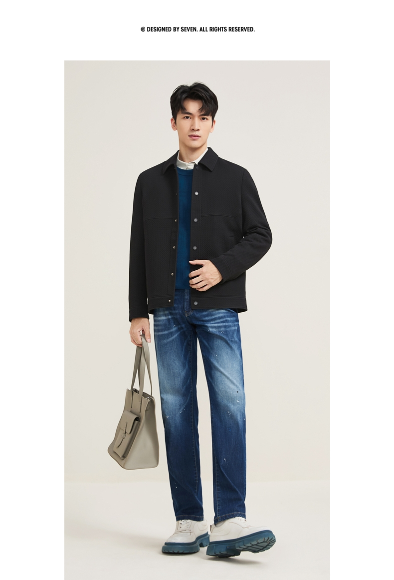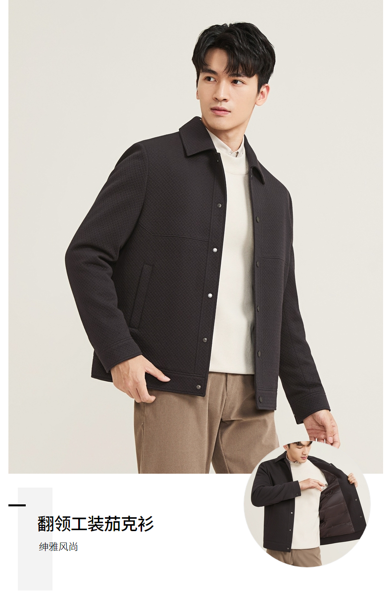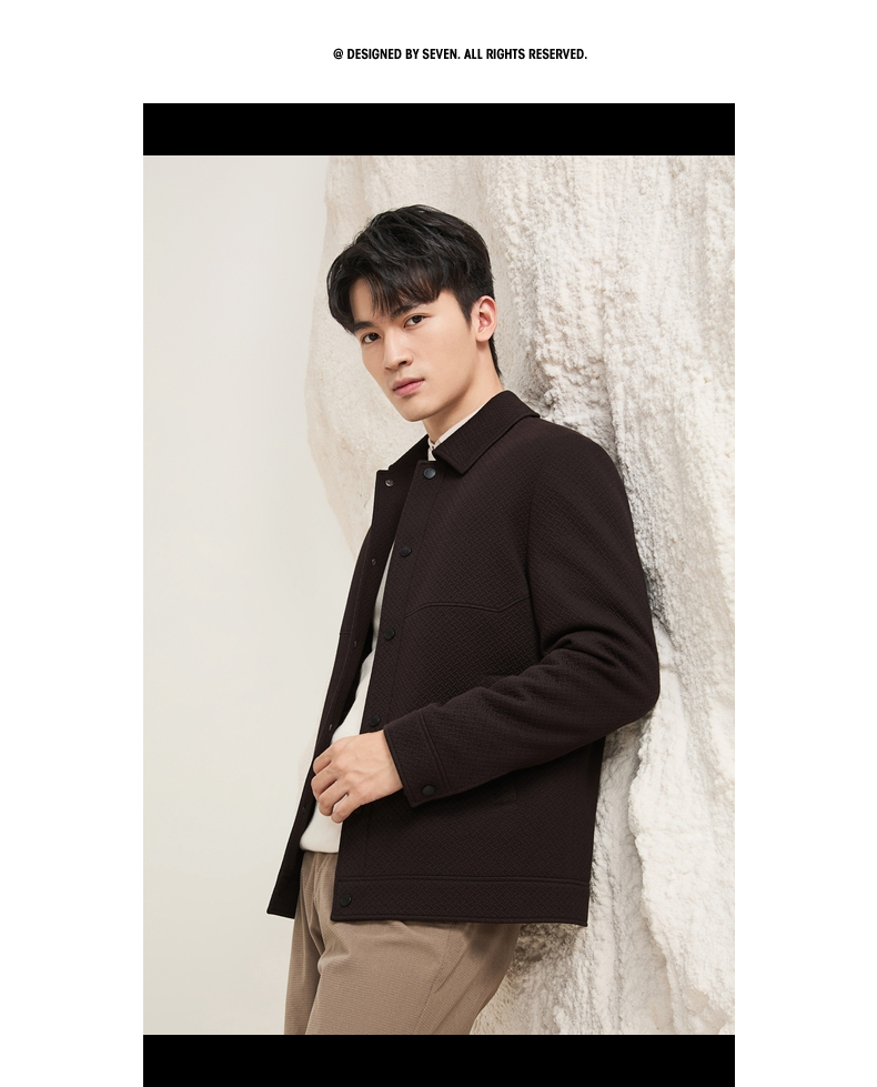 【莫代尔满身肌理茄克】柒牌男士2025秋冬新品翻领休闲青年茄克衫129K70750