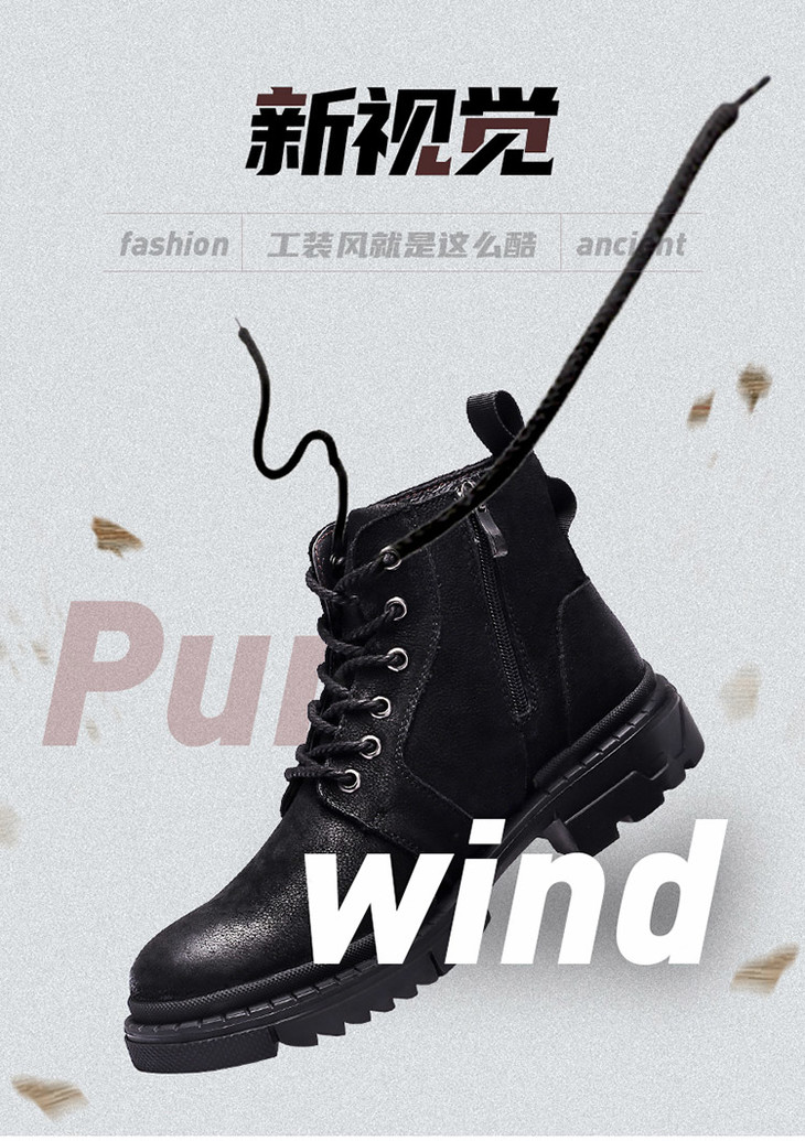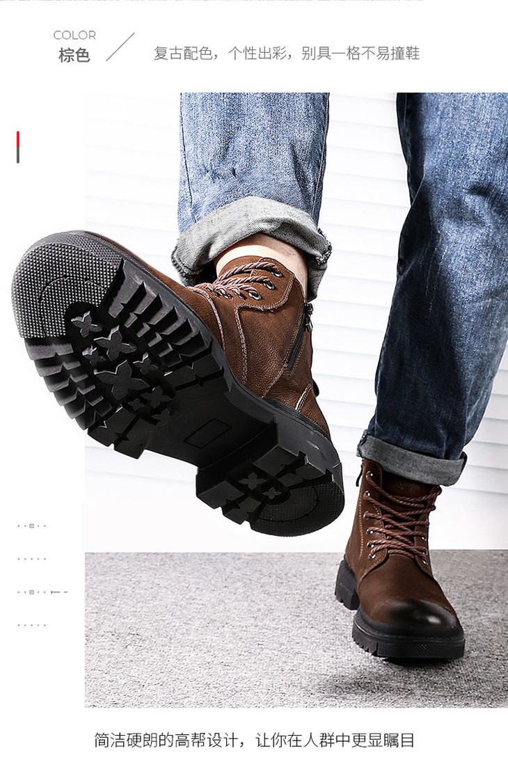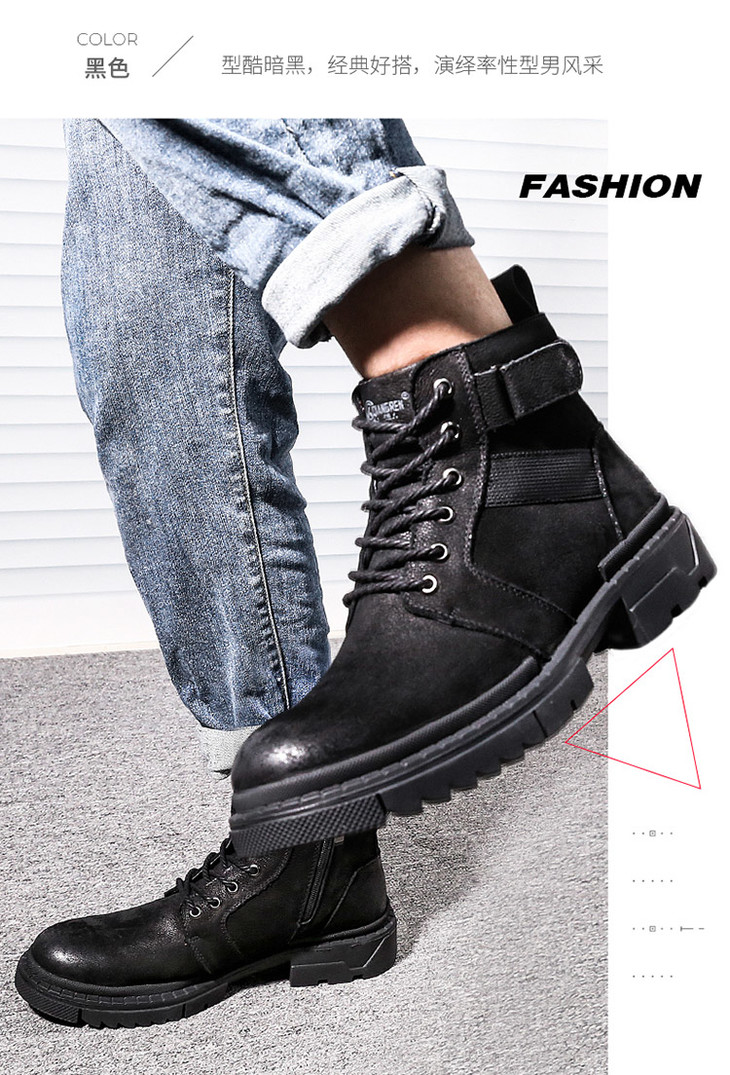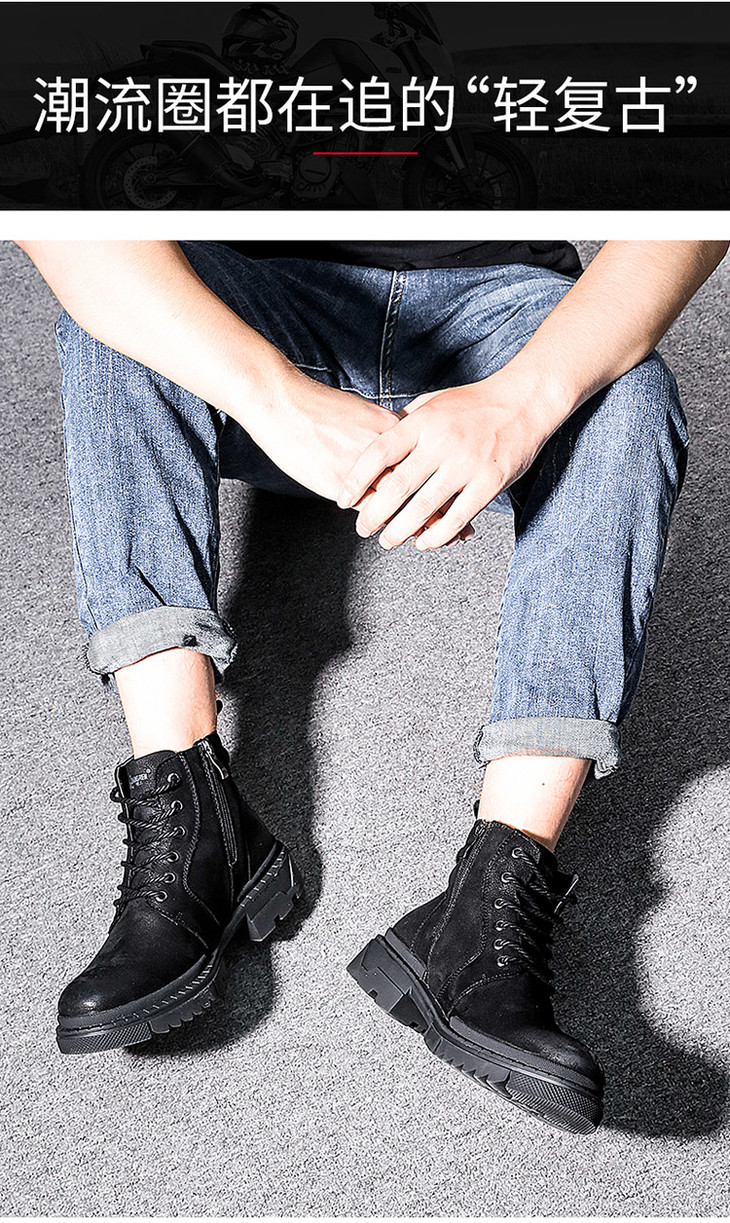 强人马丁靴男头层牛皮透气耐磨复古户外靴子便捷侧拉链有型百搭男靴 Q3DXA218031