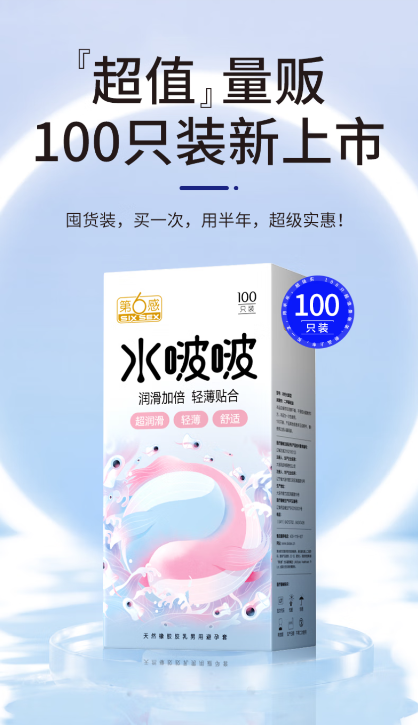 第六感避孕套超薄 安全套 水润加倍超值100只水多多润滑 套套 成人用品