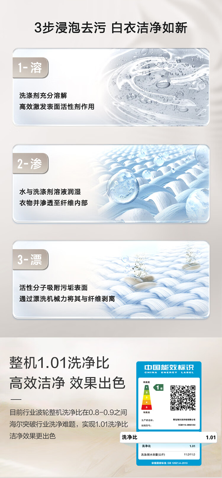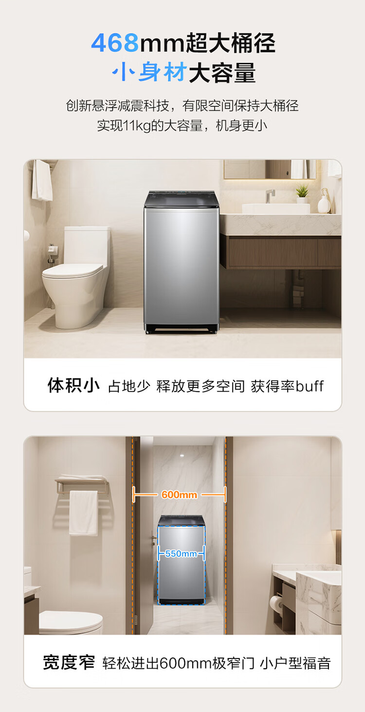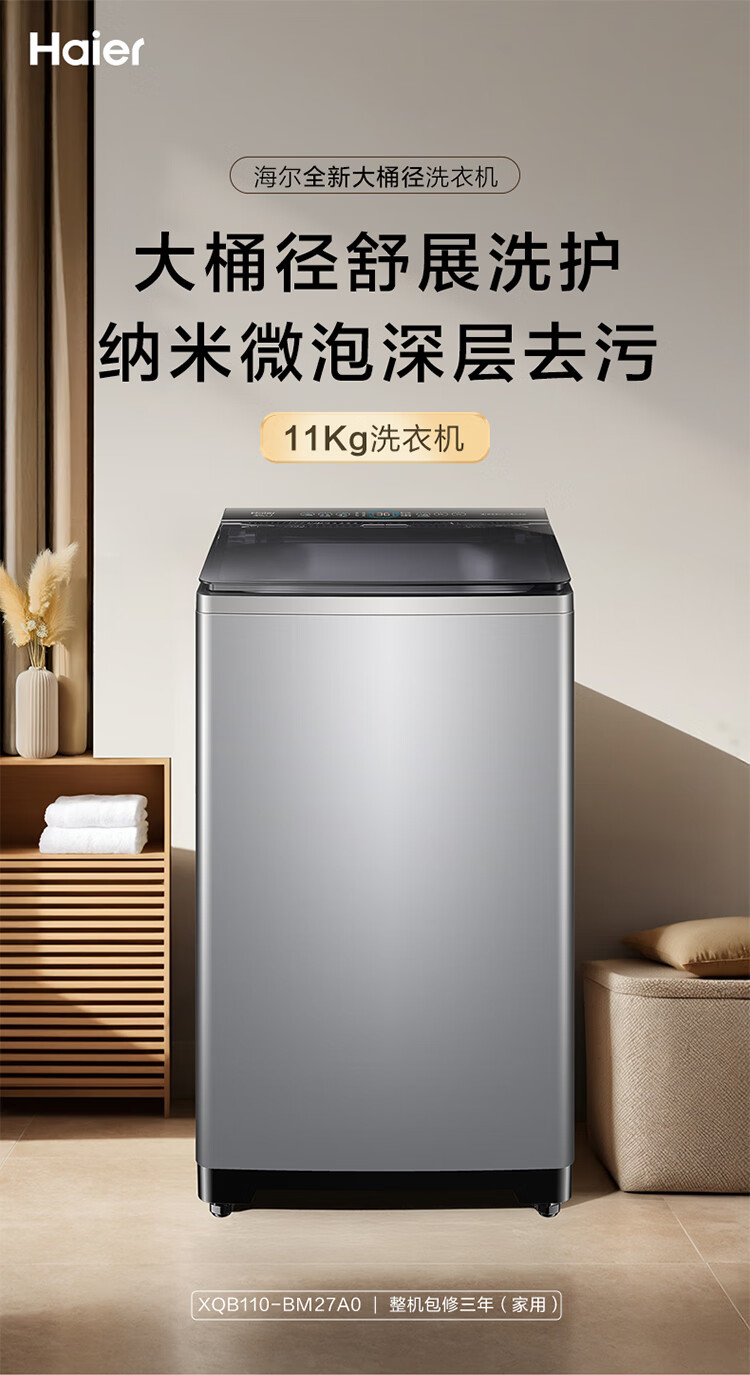海尔洗衣机全自动家用大容量11公斤纳米微泡净波轮洗衣机 HP电离除菌冷水除螨 468mm大筒波轮洗衣 11公斤大容量+微泡净+HP+直驱+BM27A0