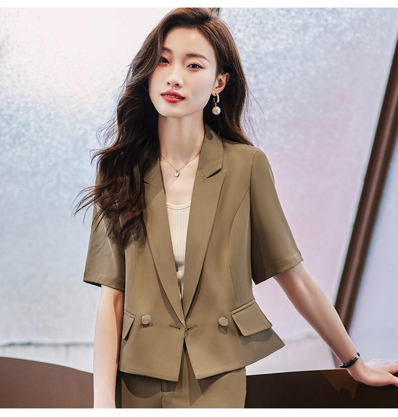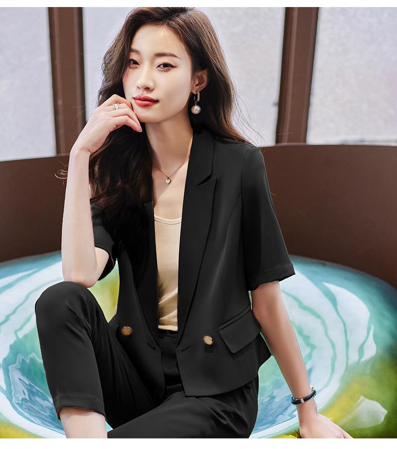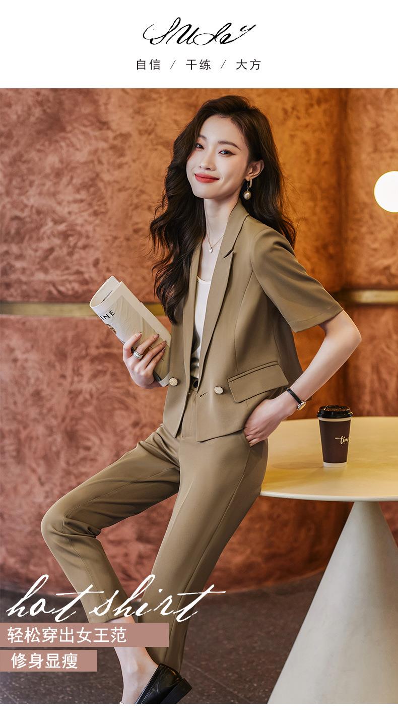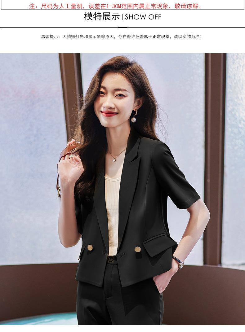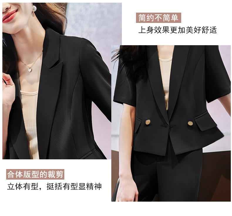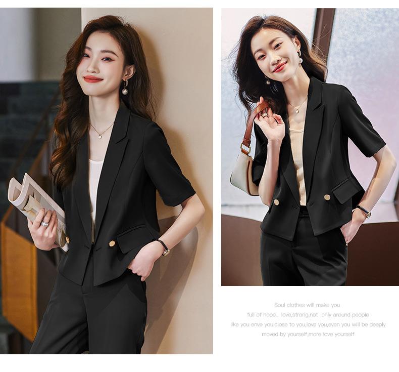 娜璐多 小个子短款外套女夏季薄款短袖通勤气质女神范时尚减龄长裤两件套