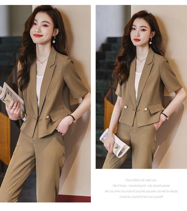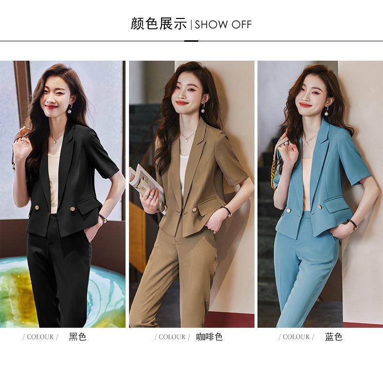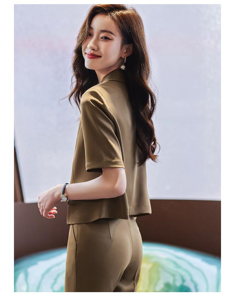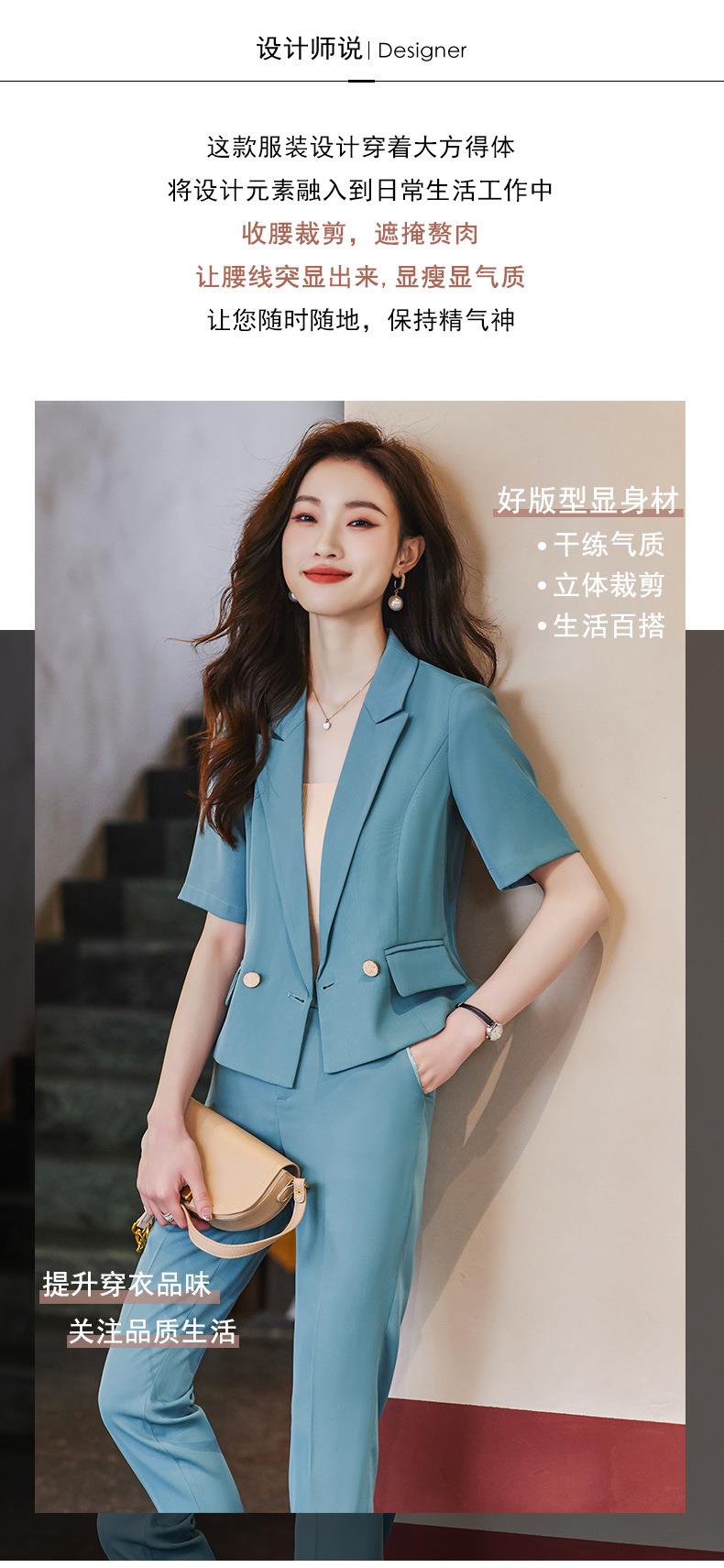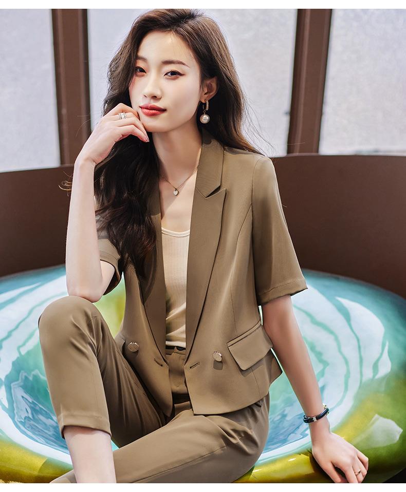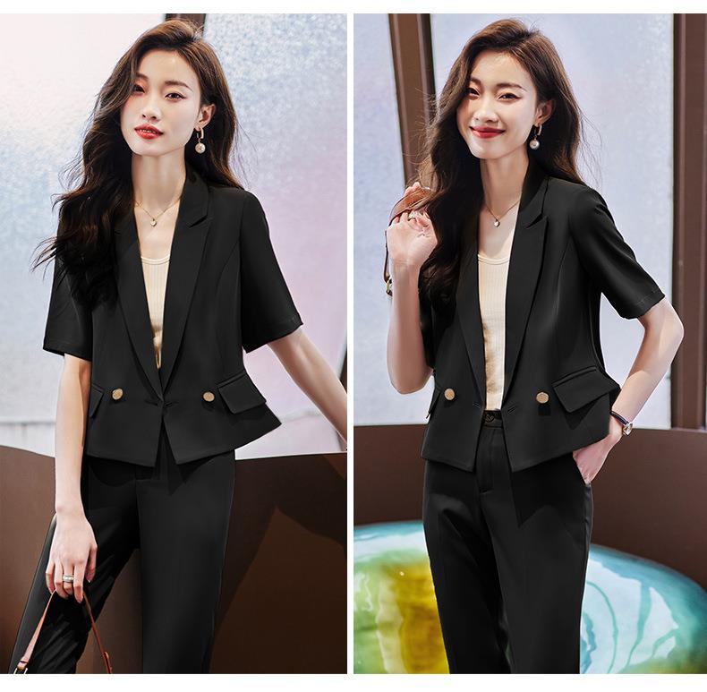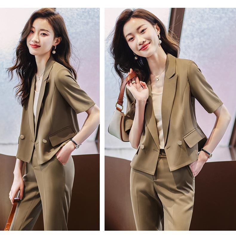 娜璐多 小个子短款外套女夏季薄款短袖通勤气质女神范时尚减龄长裤两件套