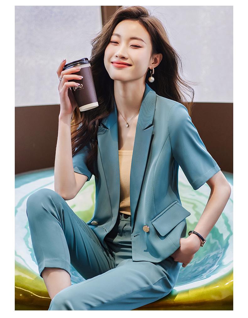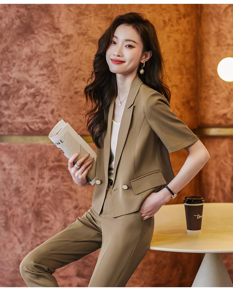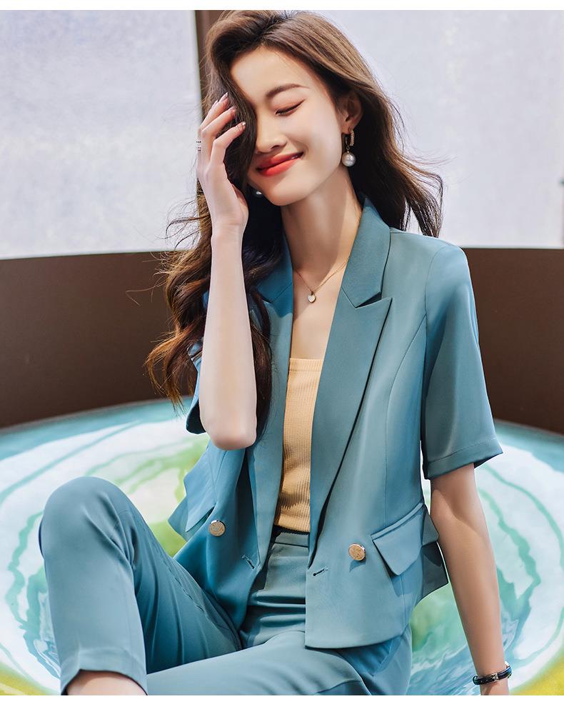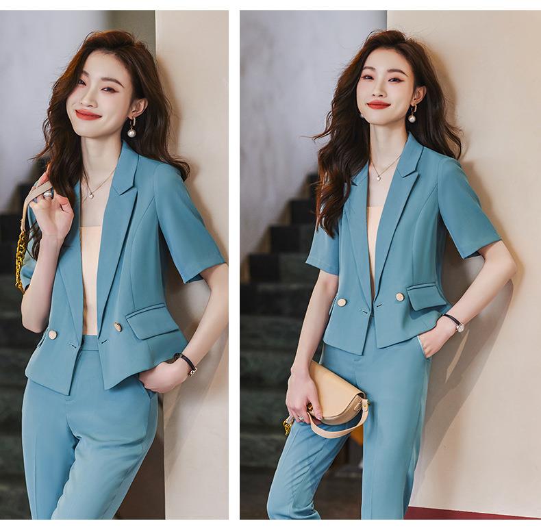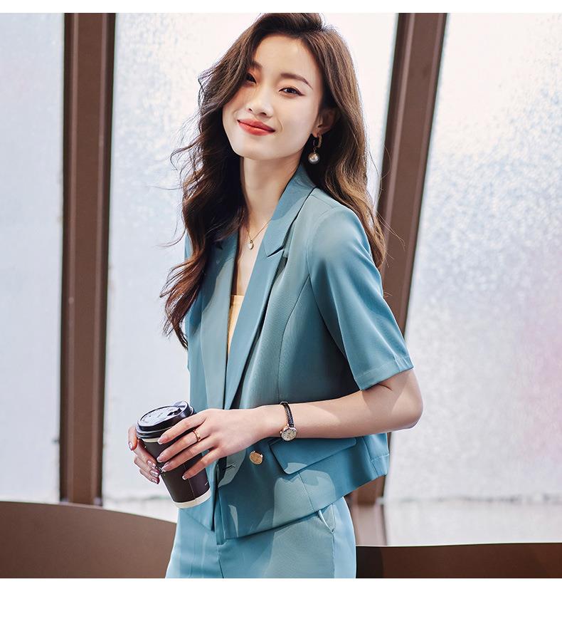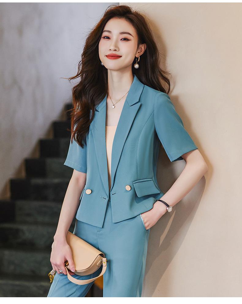 娜璐多 小个子短款外套女夏季薄款短袖通勤气质女神范时尚减龄长裤两件套