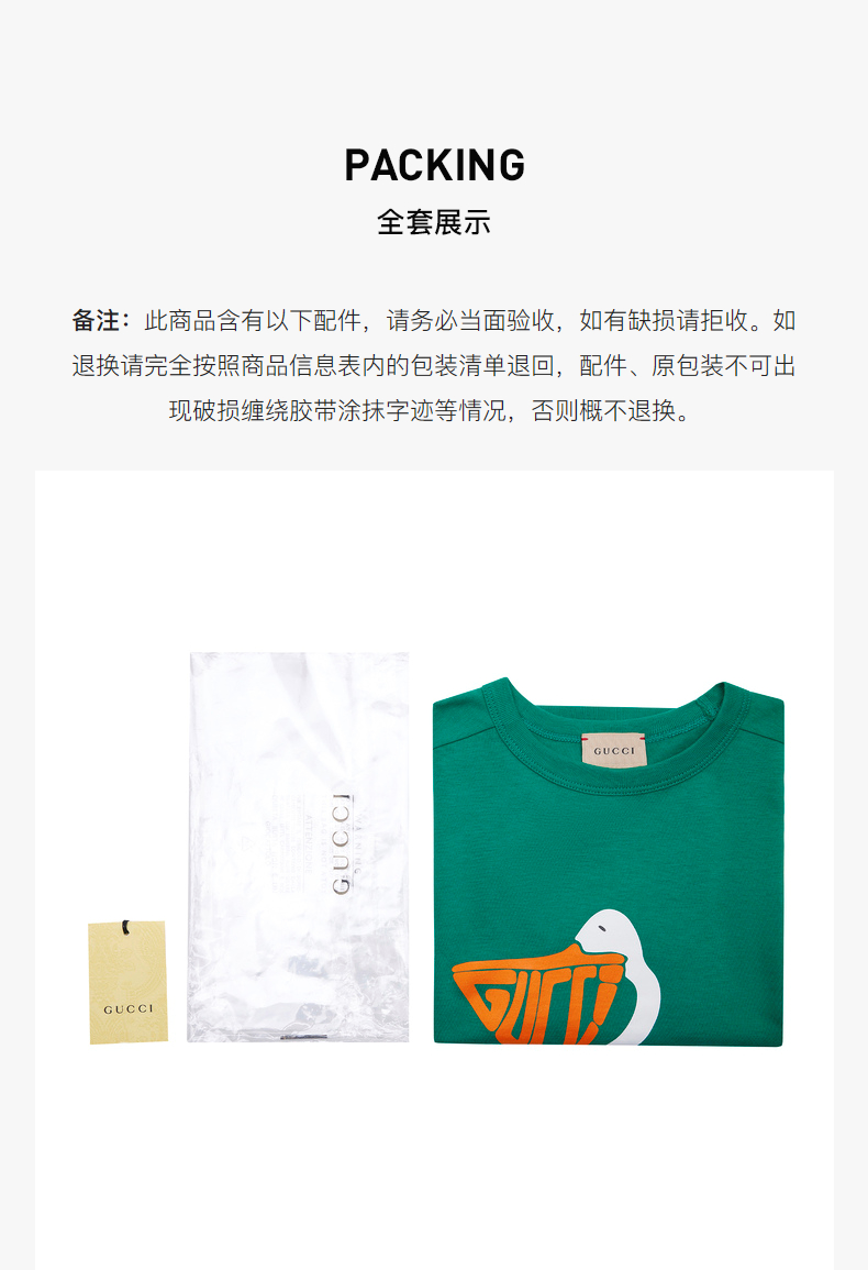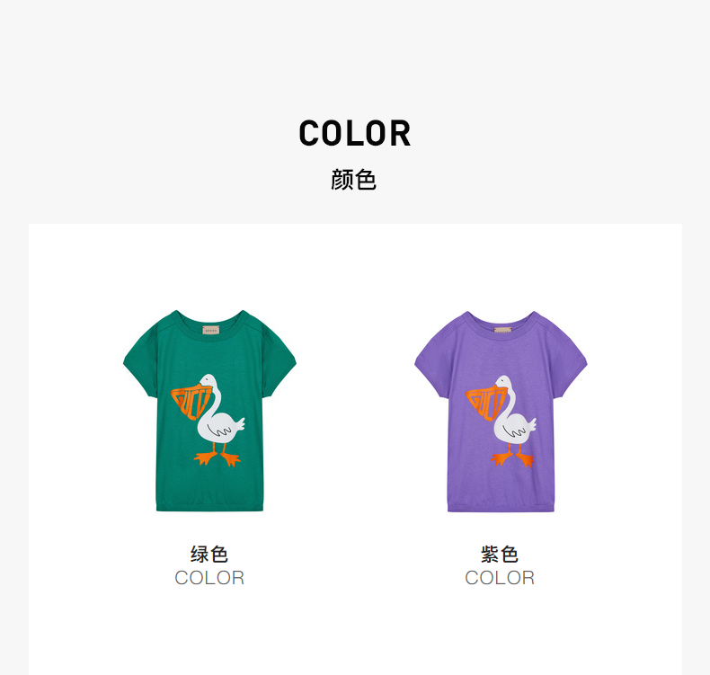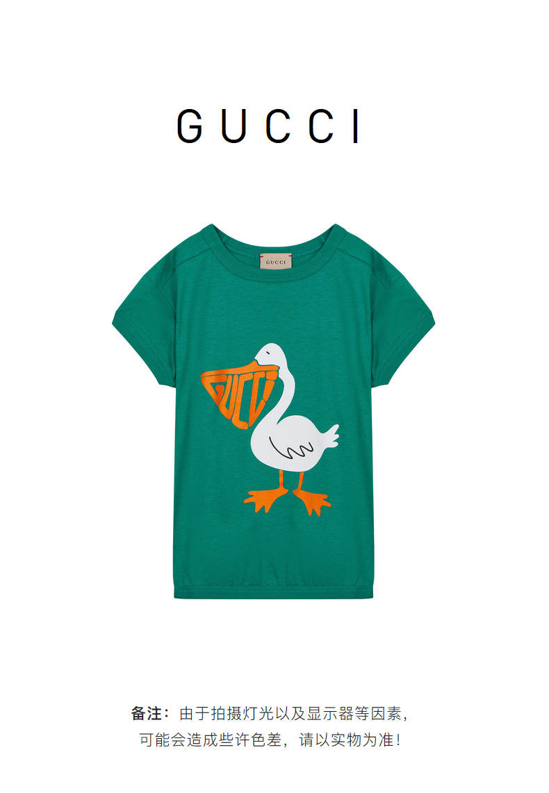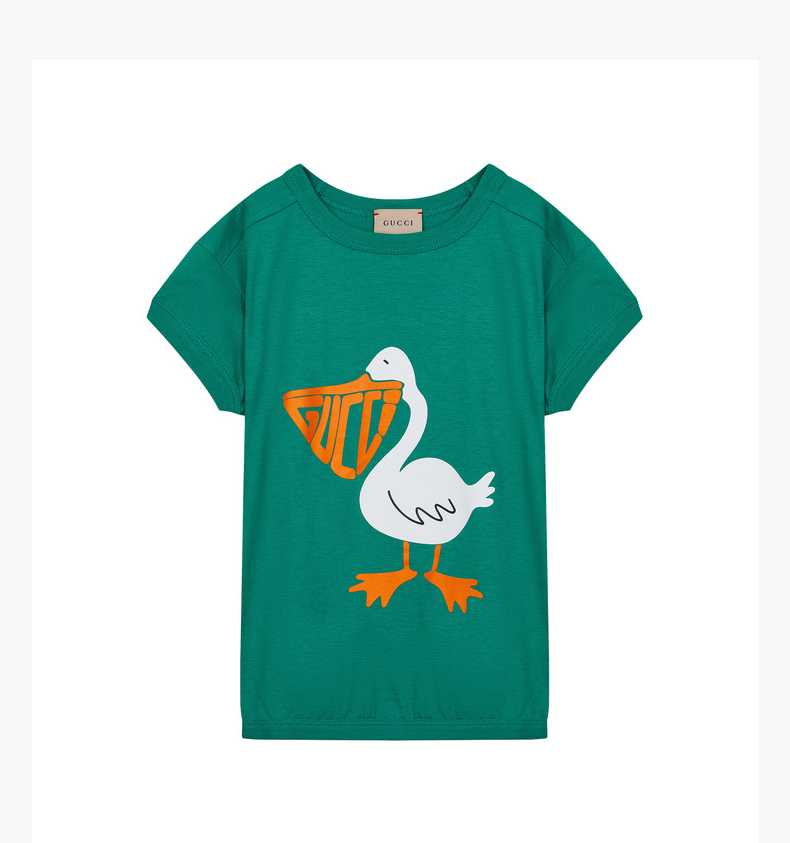GUCCI 古驰 潮流童装胸前卡通鸭子印花圆领儿童中小童款短袖T恤 718008XJE37