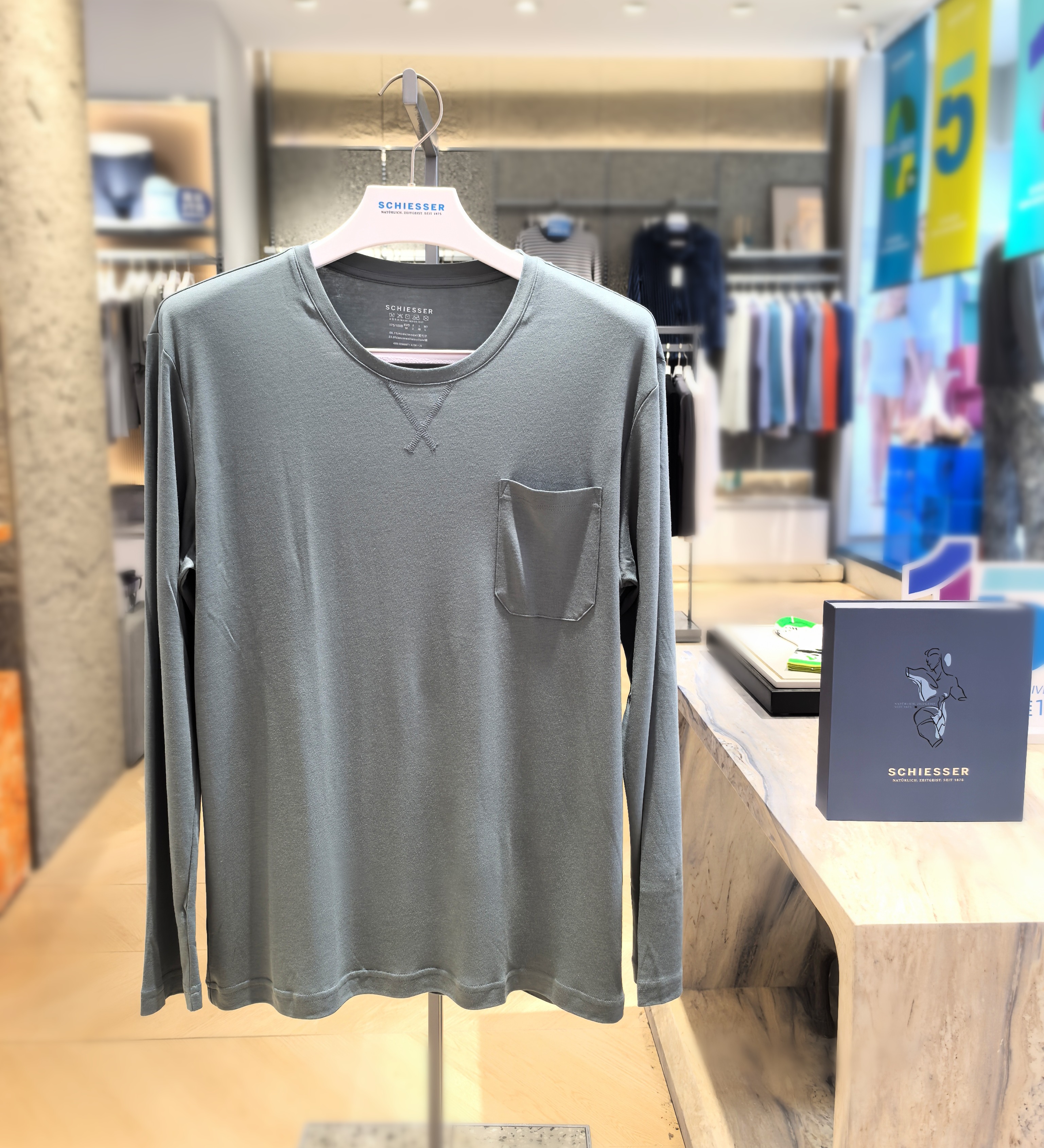 【棉莫经典 高性价比】SCHIESSER德国舒雅男士棉+莫代尔V领春秋款家居单上衣(版型偏大)39/26948U
