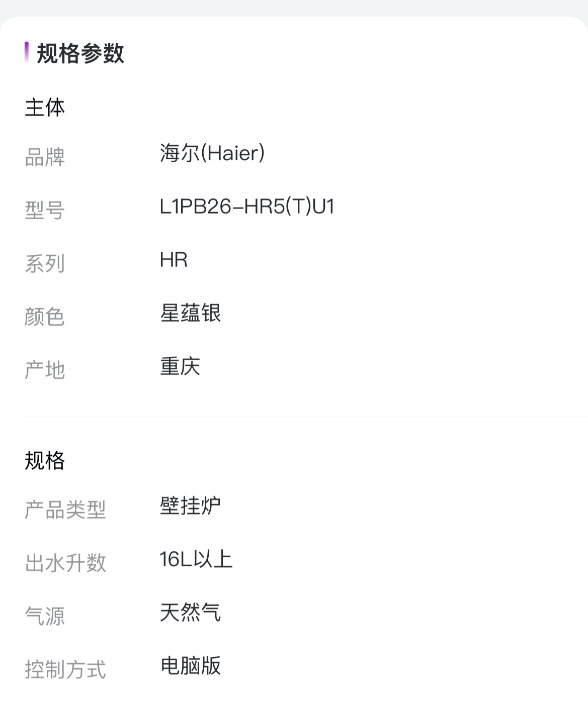 海尔(Haier)采暖炉 L1PB26-HR5(T)U1