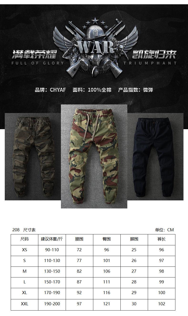 CHYAF男士迷彩休闲裤春季2023新款九分裤男运动工装裤子