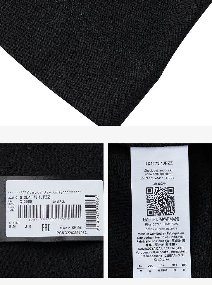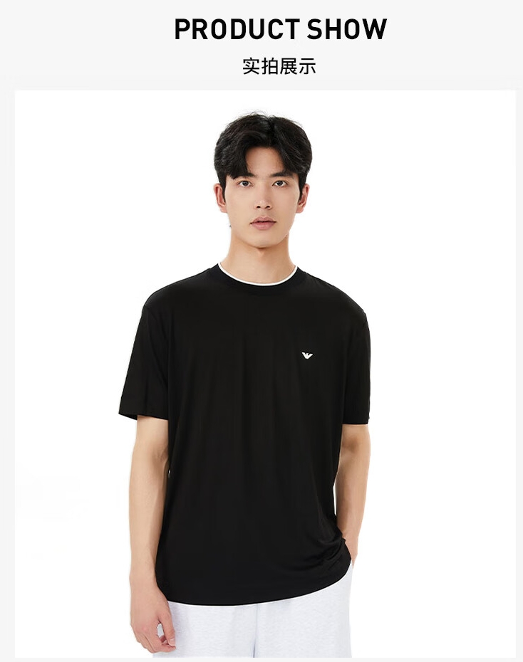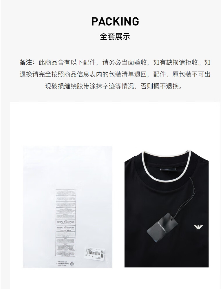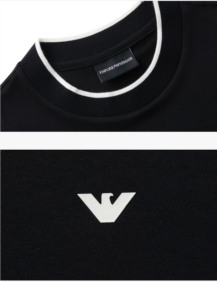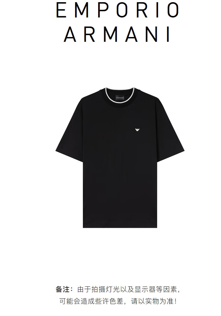 ARMANI 阿玛尼 春夏新品 男士LOGO字母印花休闲圆领短袖T恤 520礼物 黑色 3D1T73 1JPZZ 0060 XXL