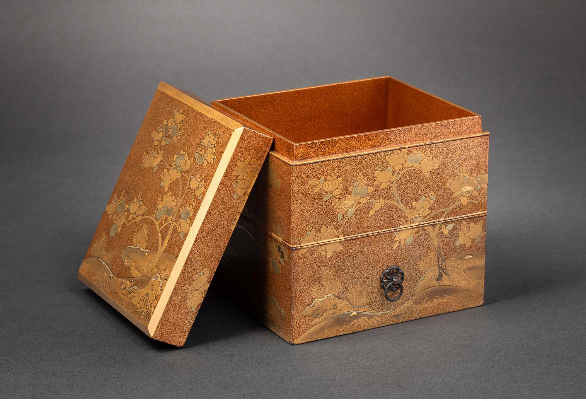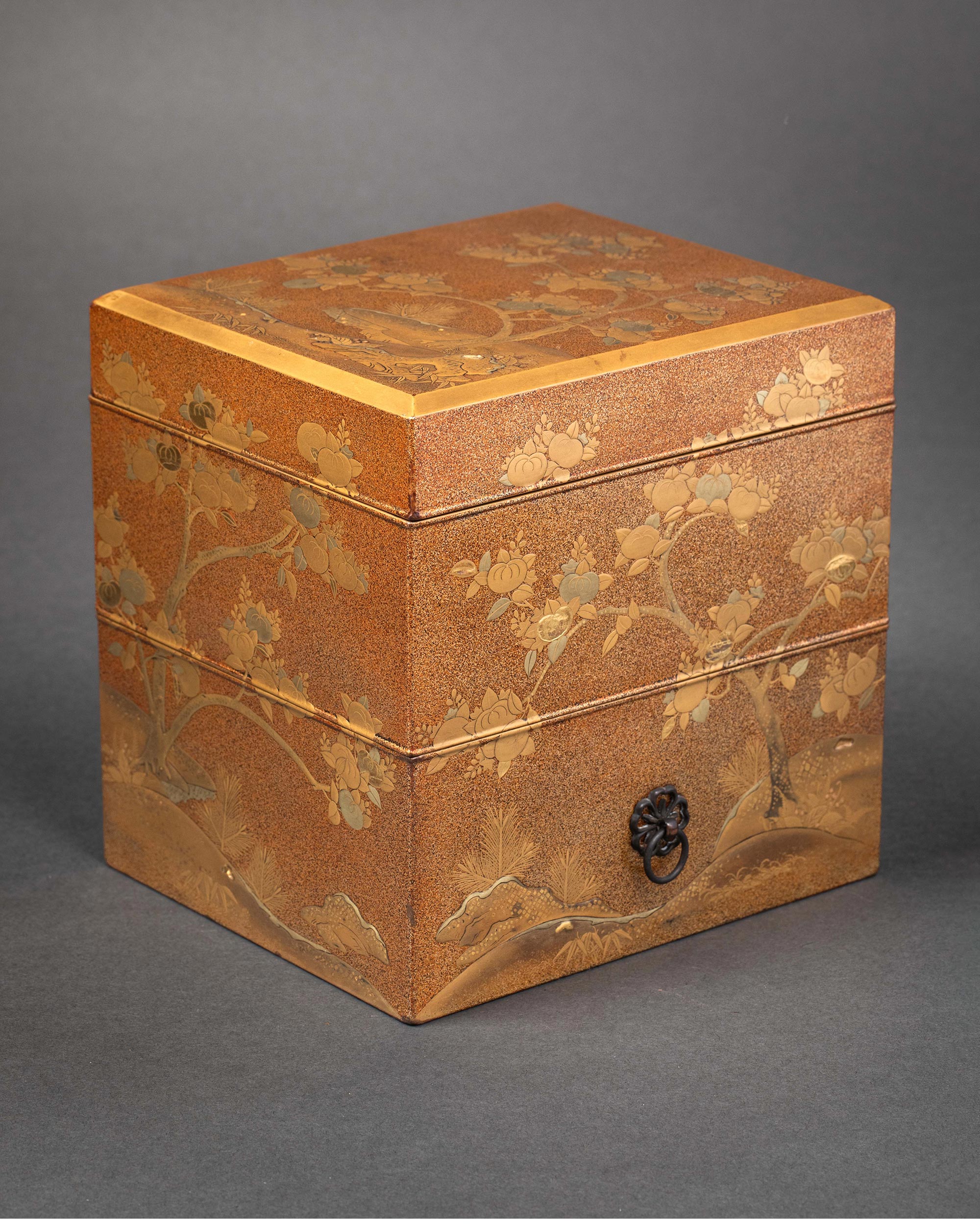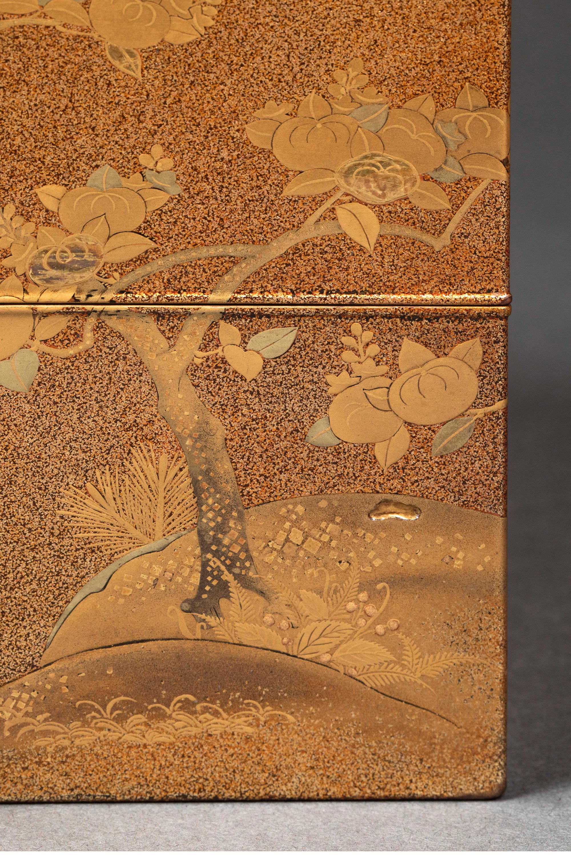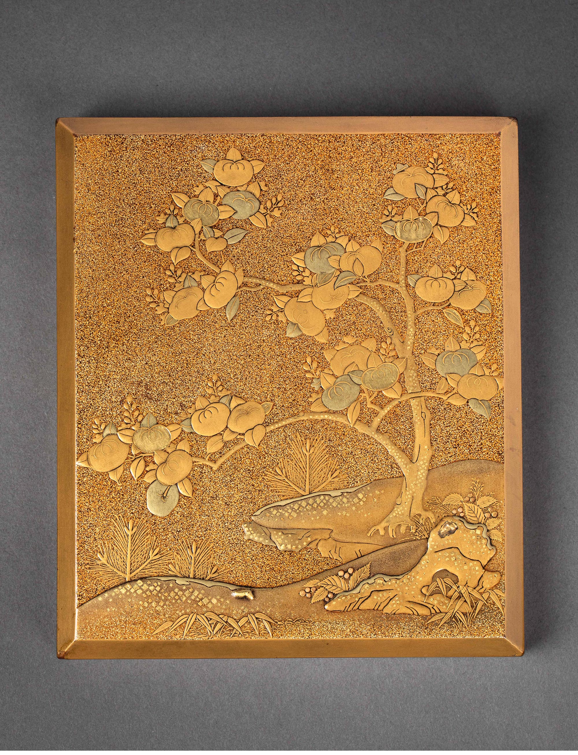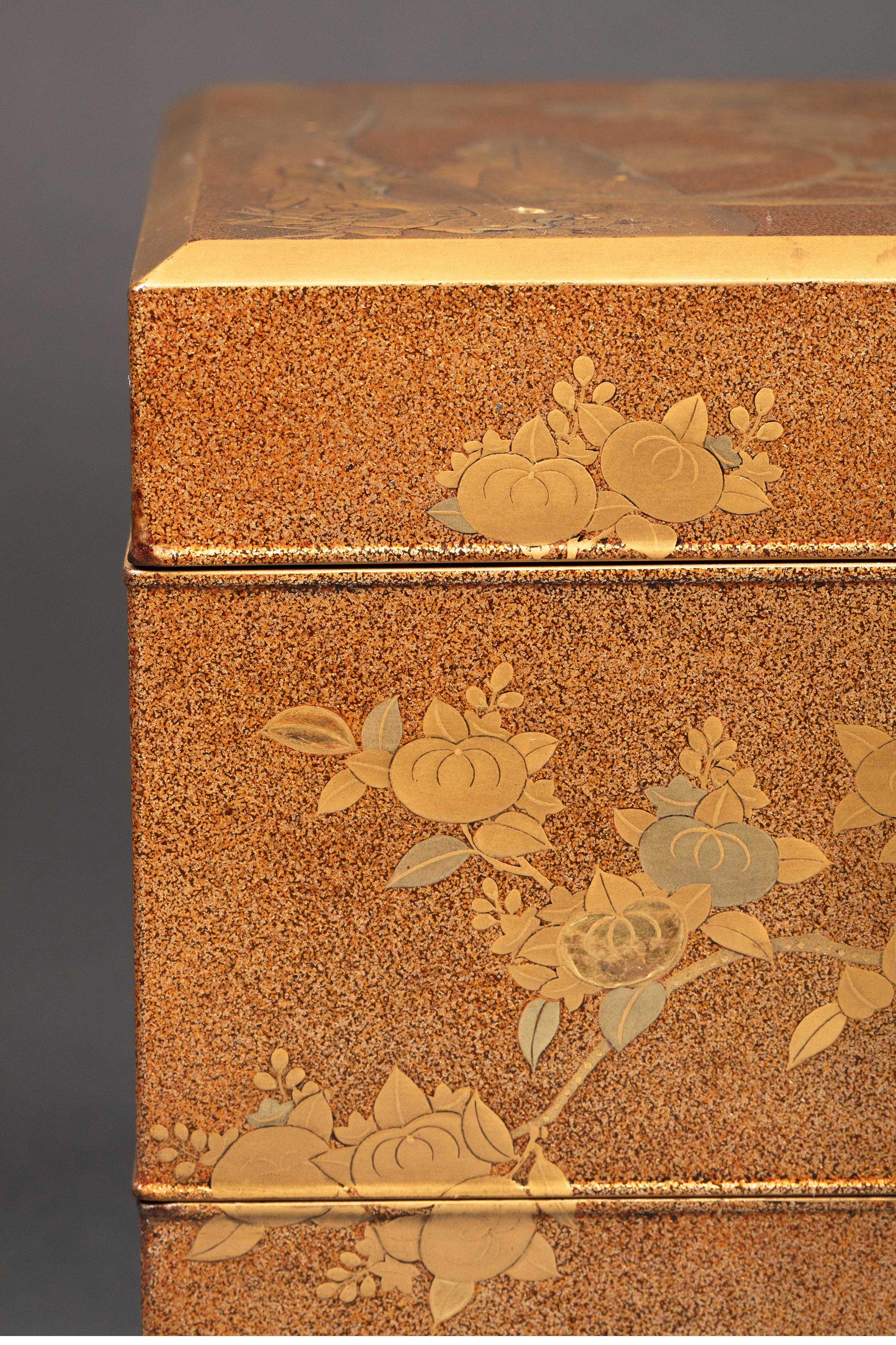 19世纪日本明治时期出品浓秋金柿主题金漆莳绘重箱