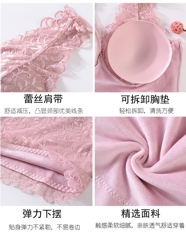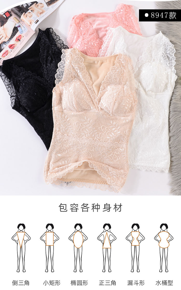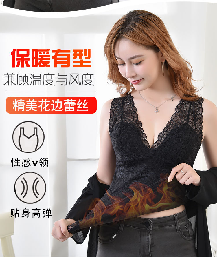 一件就很暖和! 爆款保暖内衣 女免穿文胸 冬季打底蕾丝 美体塑身