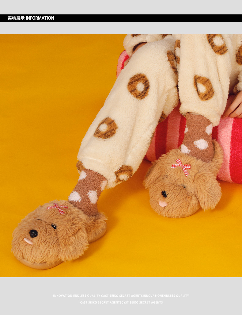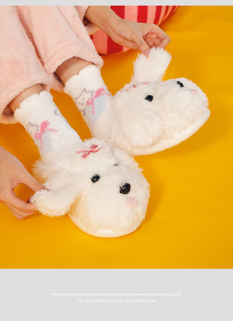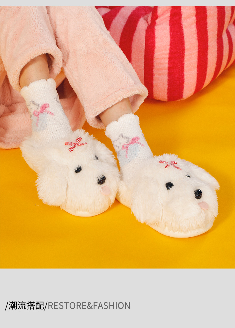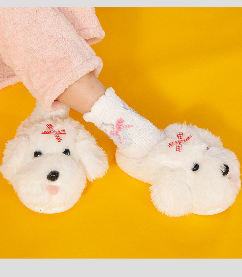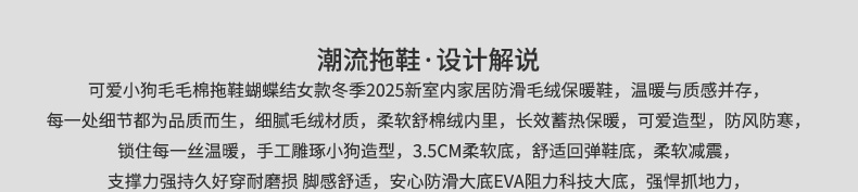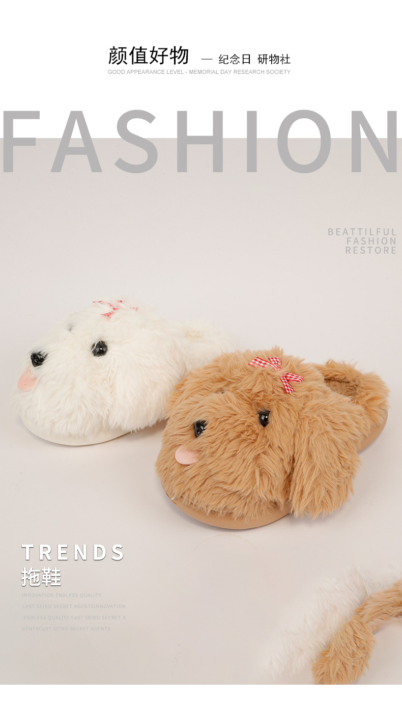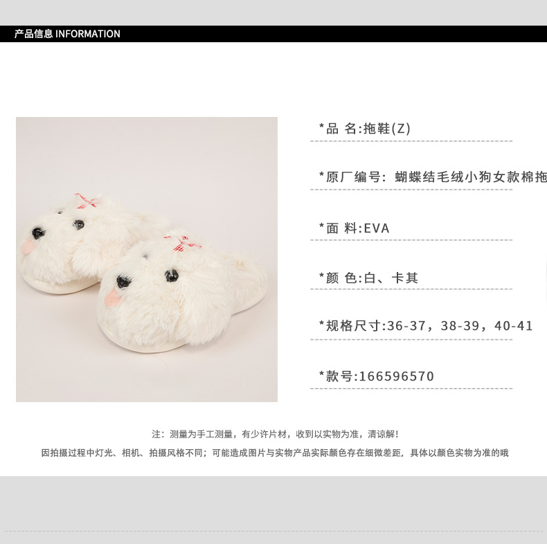 蝴蝶结毛绒小狗女款棉拖 拖鞋-纪念日百货门店同款166596570
