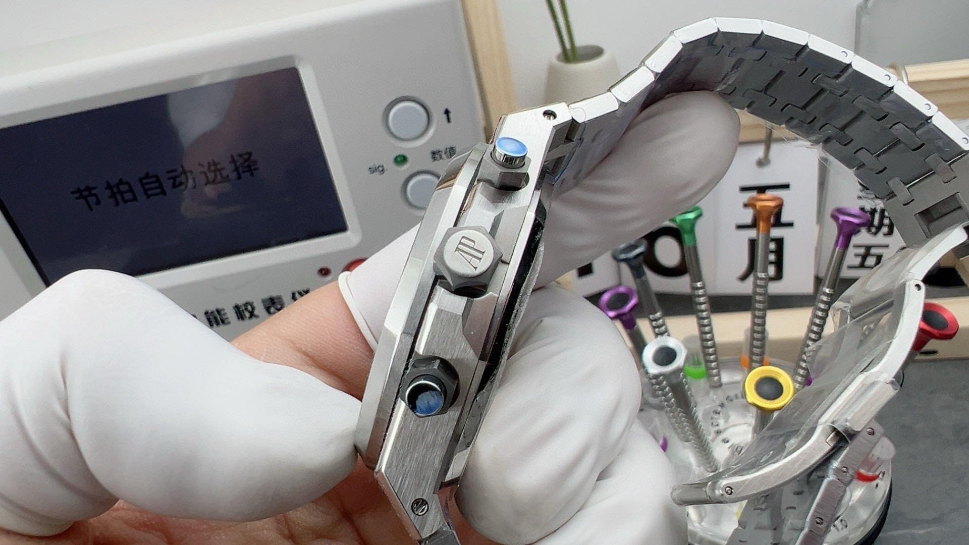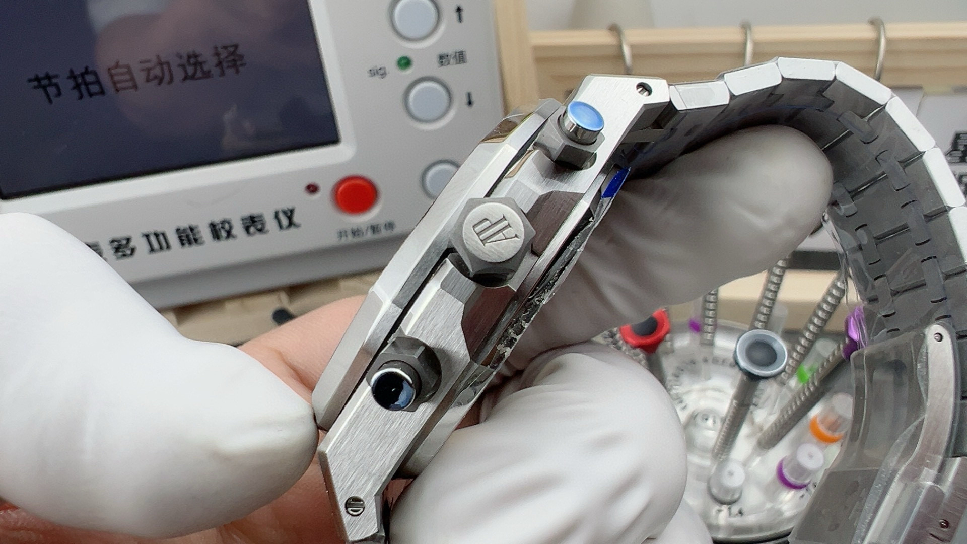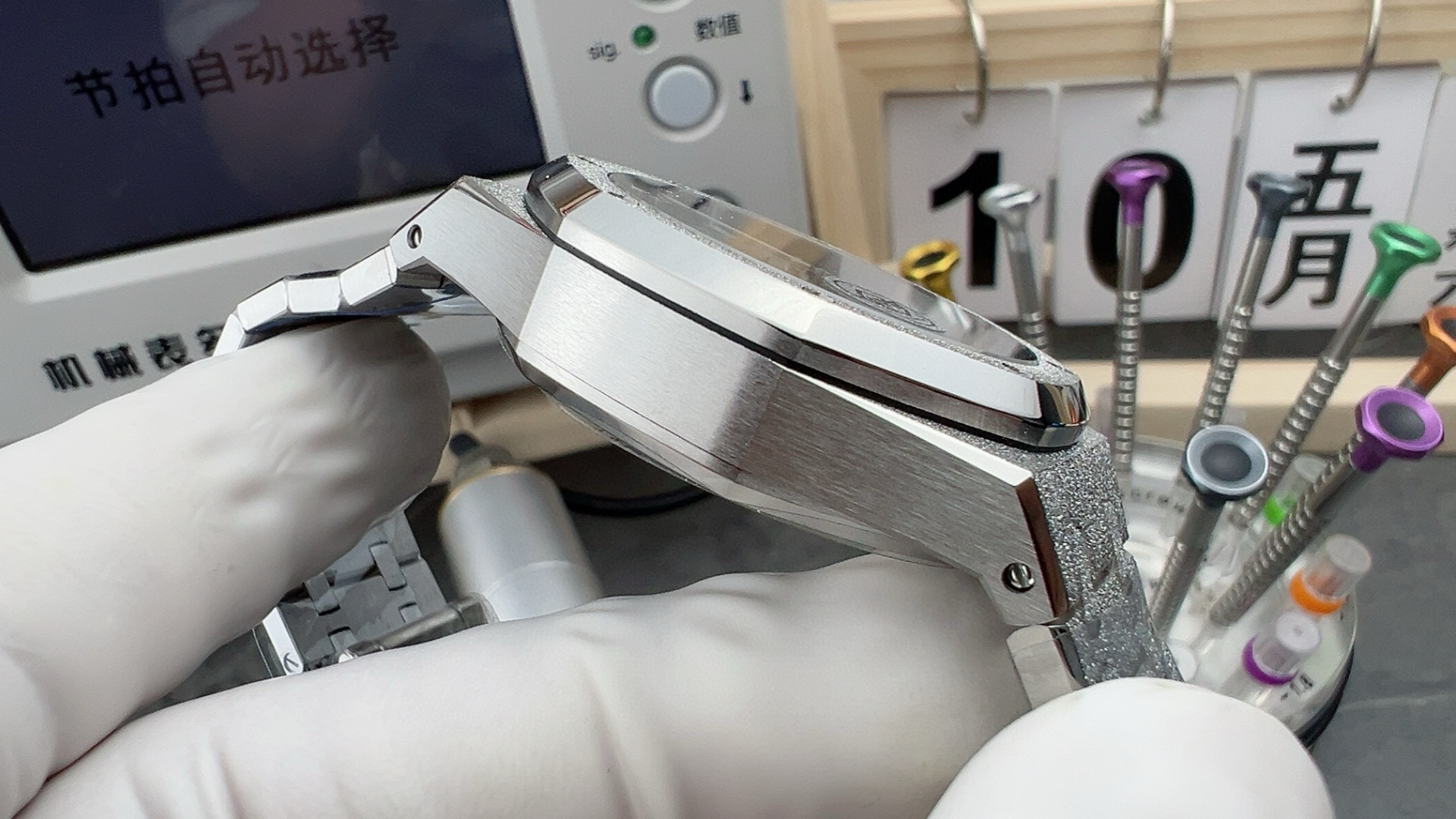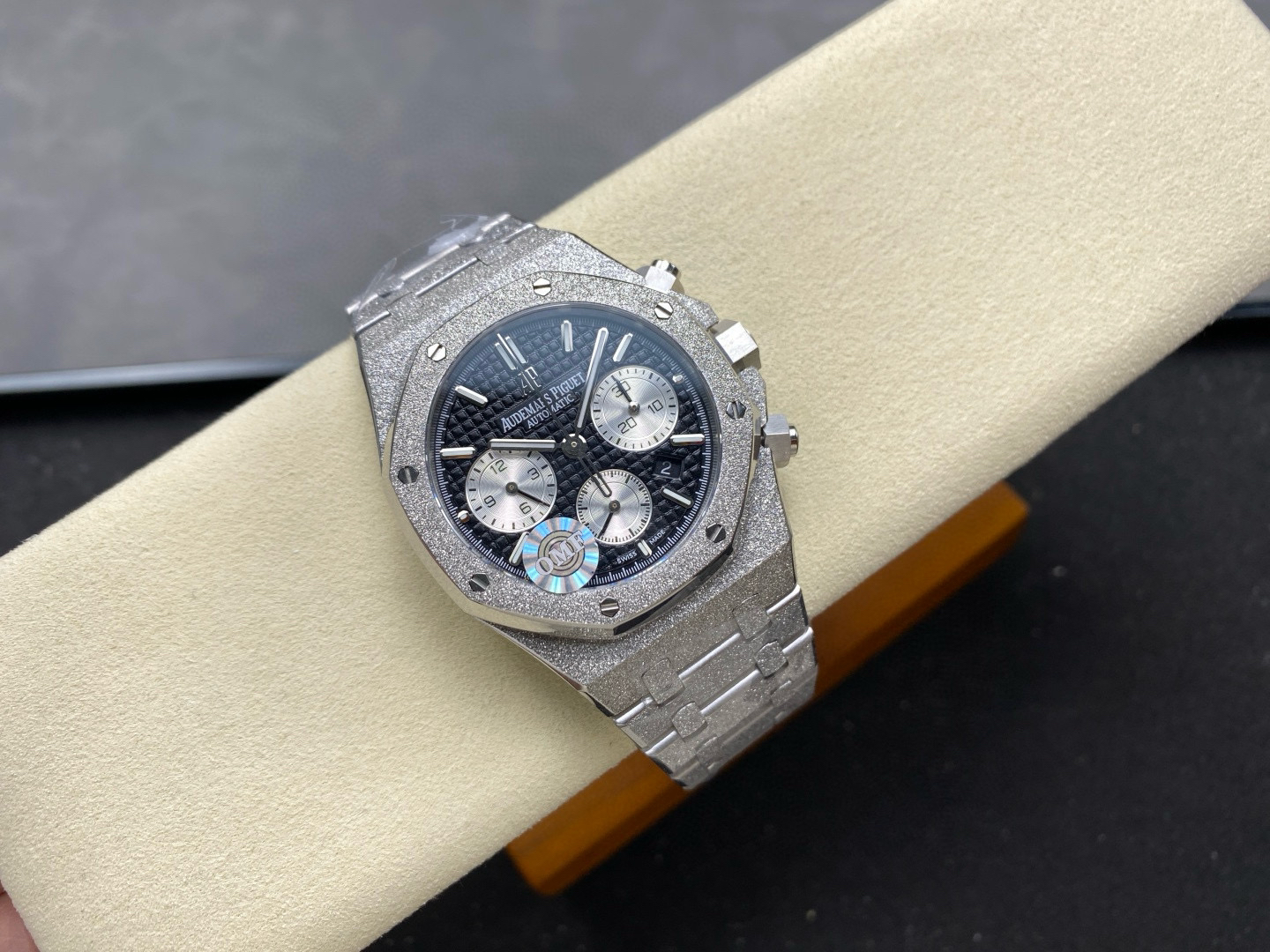 APS皇家橡树26240,霜金款渐变蓝,搭载4401飞返一体机,刻字机芯,顶级工艺,至于正品original原版开模的super copy版本 做工精良 打磨精细 每一个细节处都尽显匠心精神❕❕❕APS Royal Oak 26240, Frost Gold Gradient Blue, equipped with 4401 Flyback integrated machine, engraved movement, top-notch craftsmanship. As for the super copy version of the original original mold, the workmanship is exquisite and finely polished, showing the spirit of craftsmanship in every detail ❕❕❕