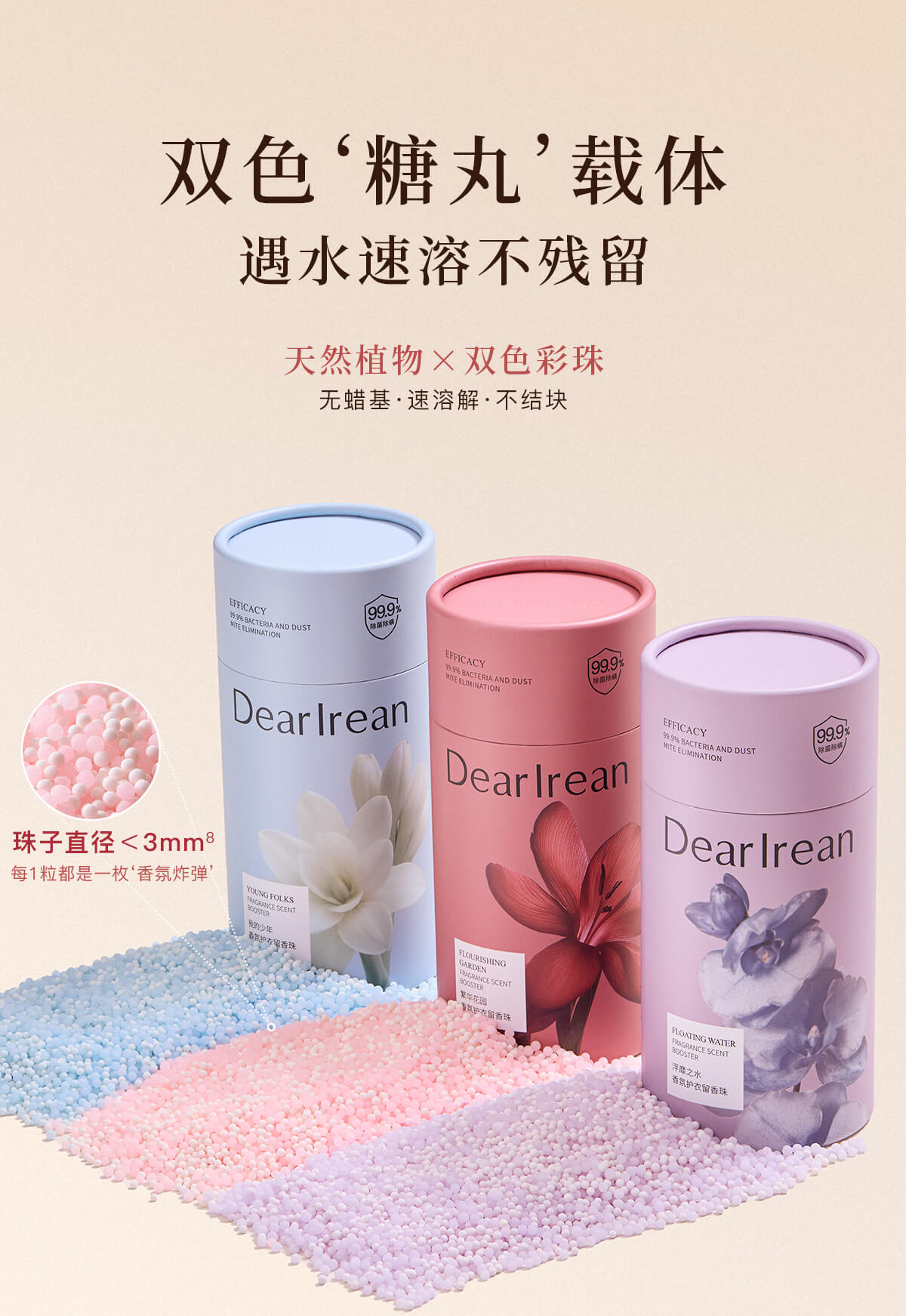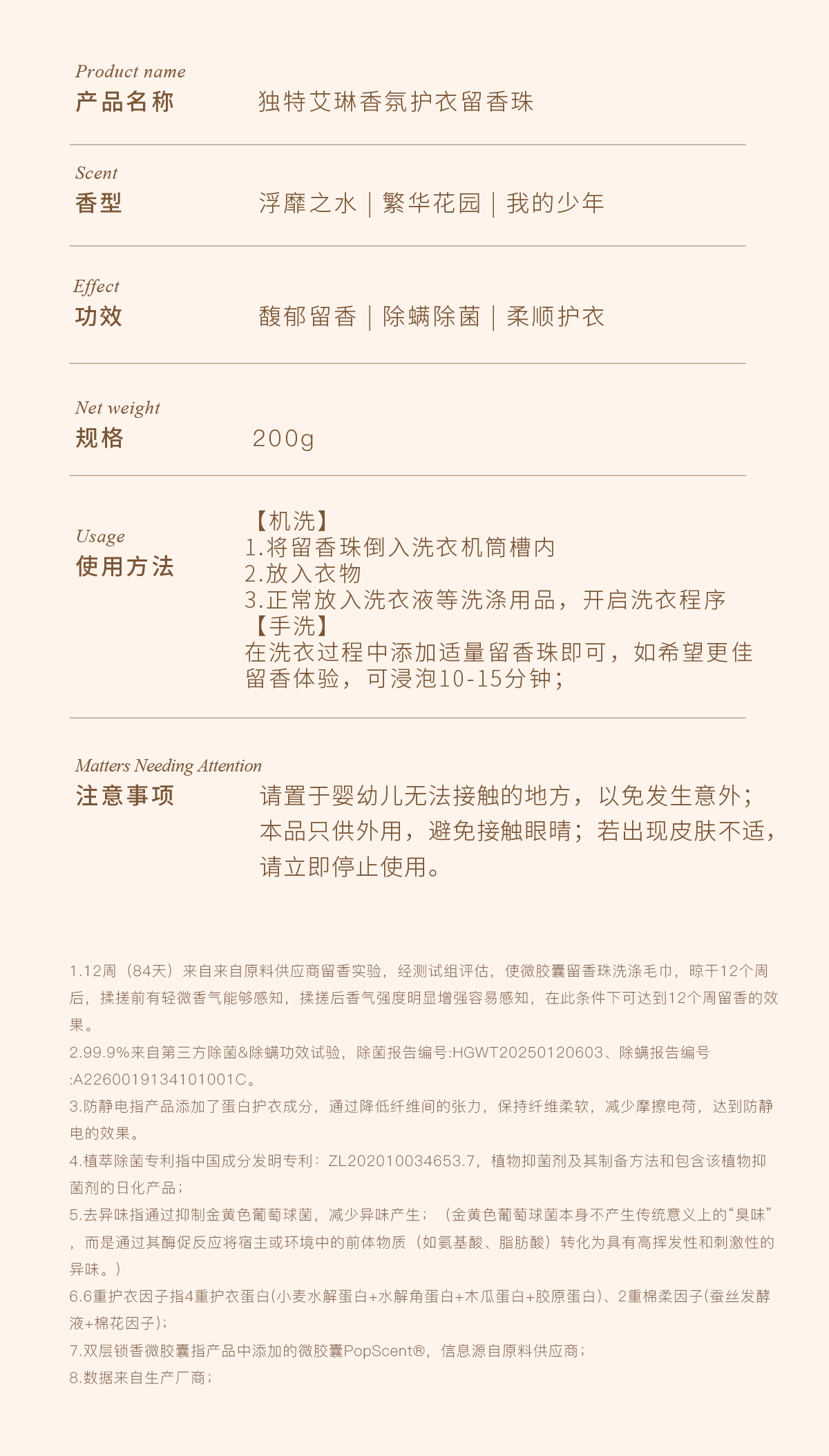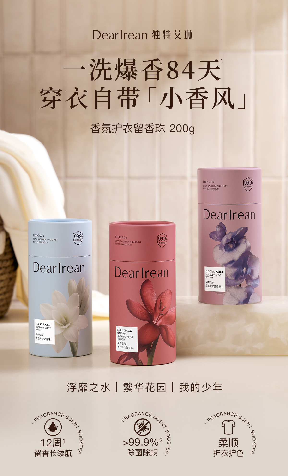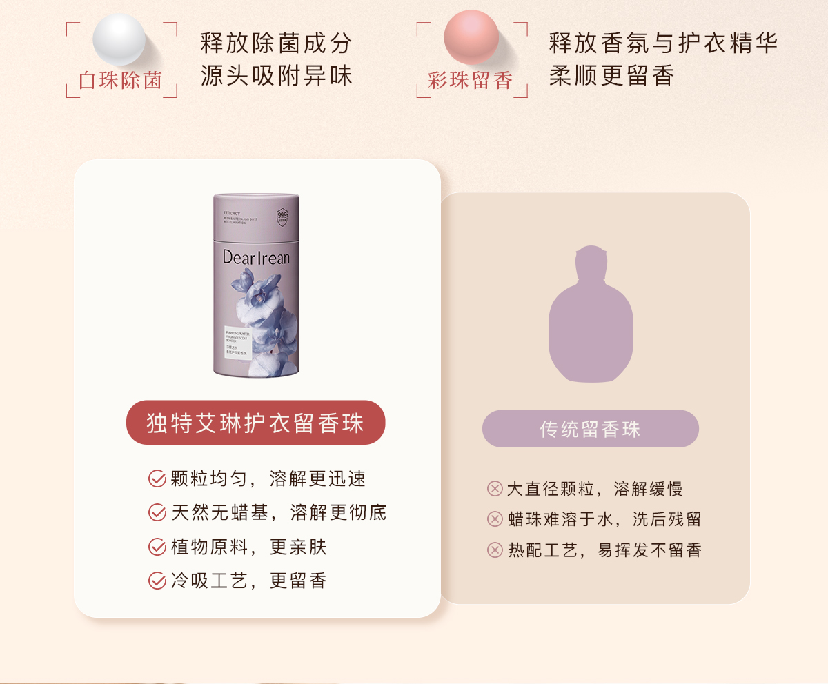 【新品】独特艾琳 衣物留香珠 持久香味护衣抑菌除螨去异味颗粒,高效去除异味、细菌与尘螨,除菌率高达99.9%。天然精油调香,香味自然不刺鼻,衣物穿上身如沐春风
