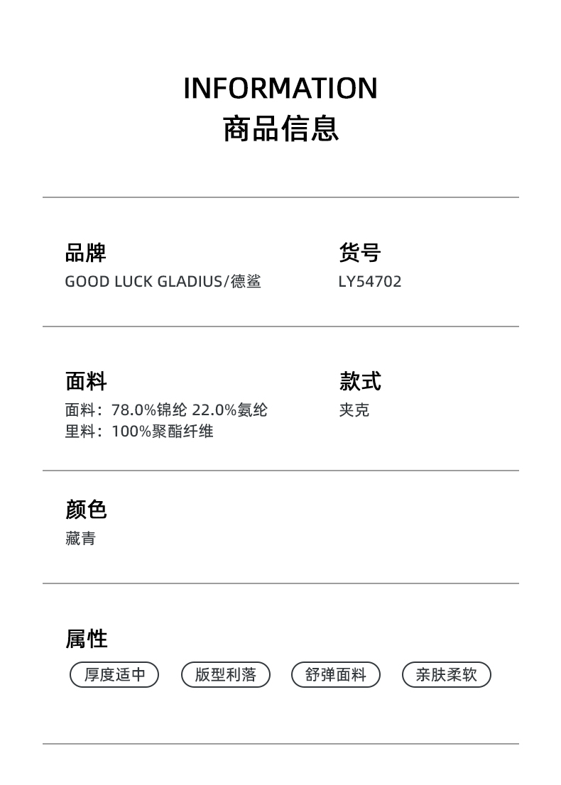 - GOOD LUCK GLADIUS品牌由“浙江德鲨服饰有限公司”引进中国市场,经过多年发展,凭借完善的终端形象,规范化的销售管理,迅速赢得消费者的认可,引领国内消费流行,是成功人士首选男装品牌。