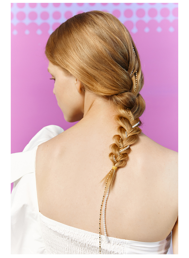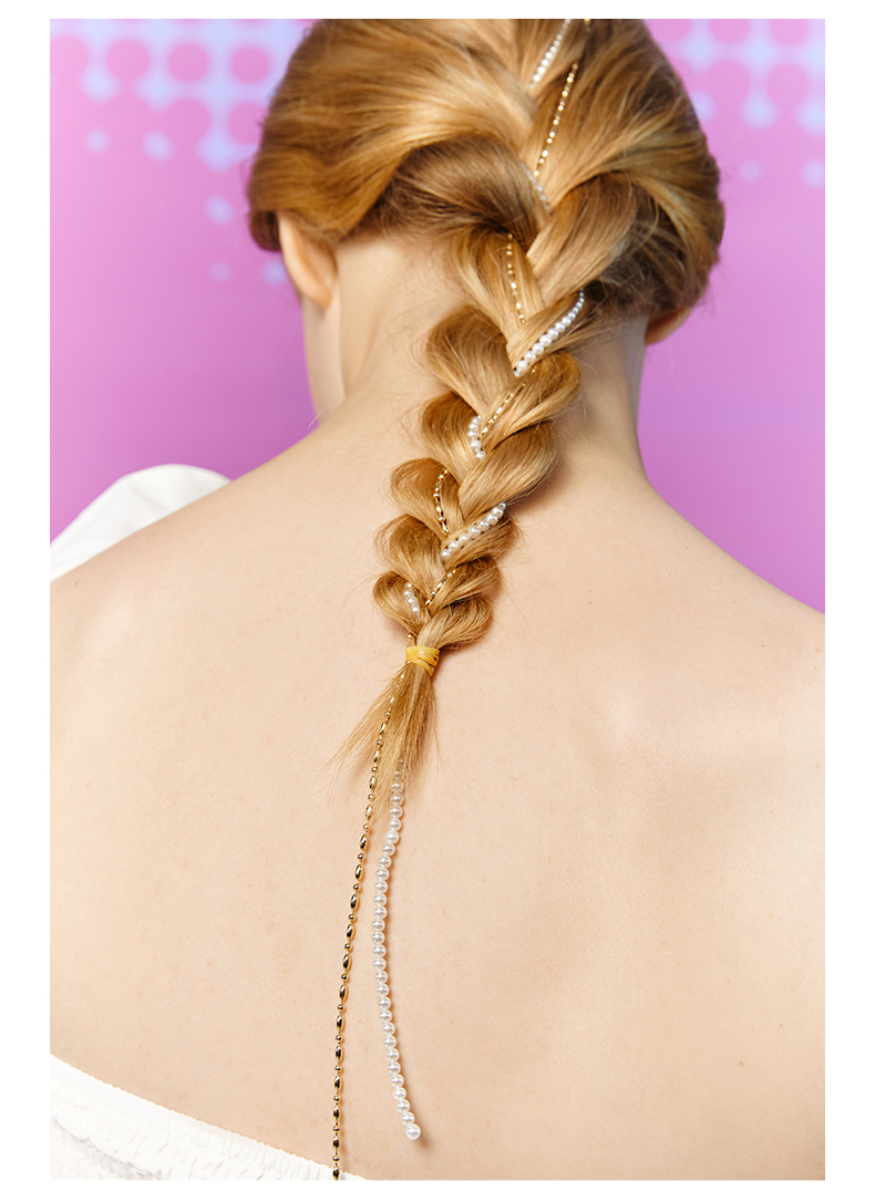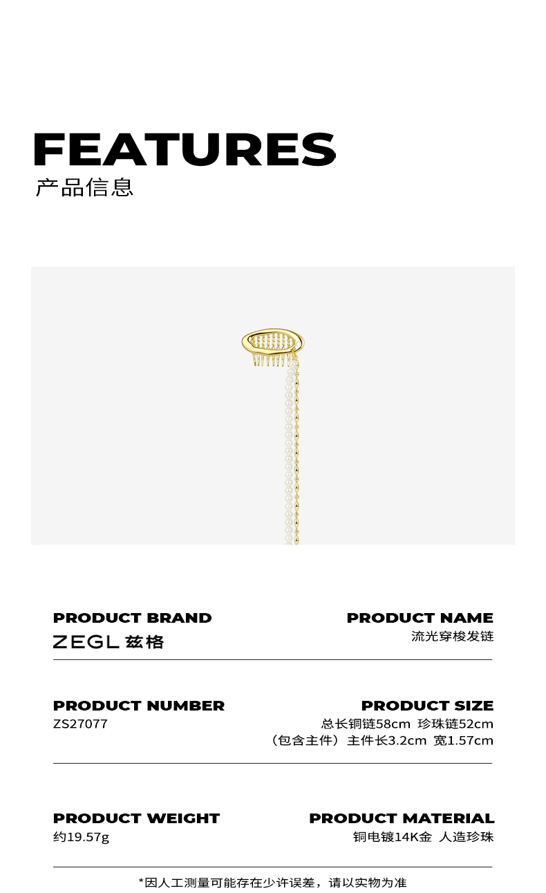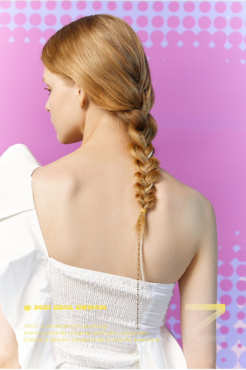 ZEGL设计师人造珍珠发链流苏发饰女ins小众顶夹网红编发链头饰品