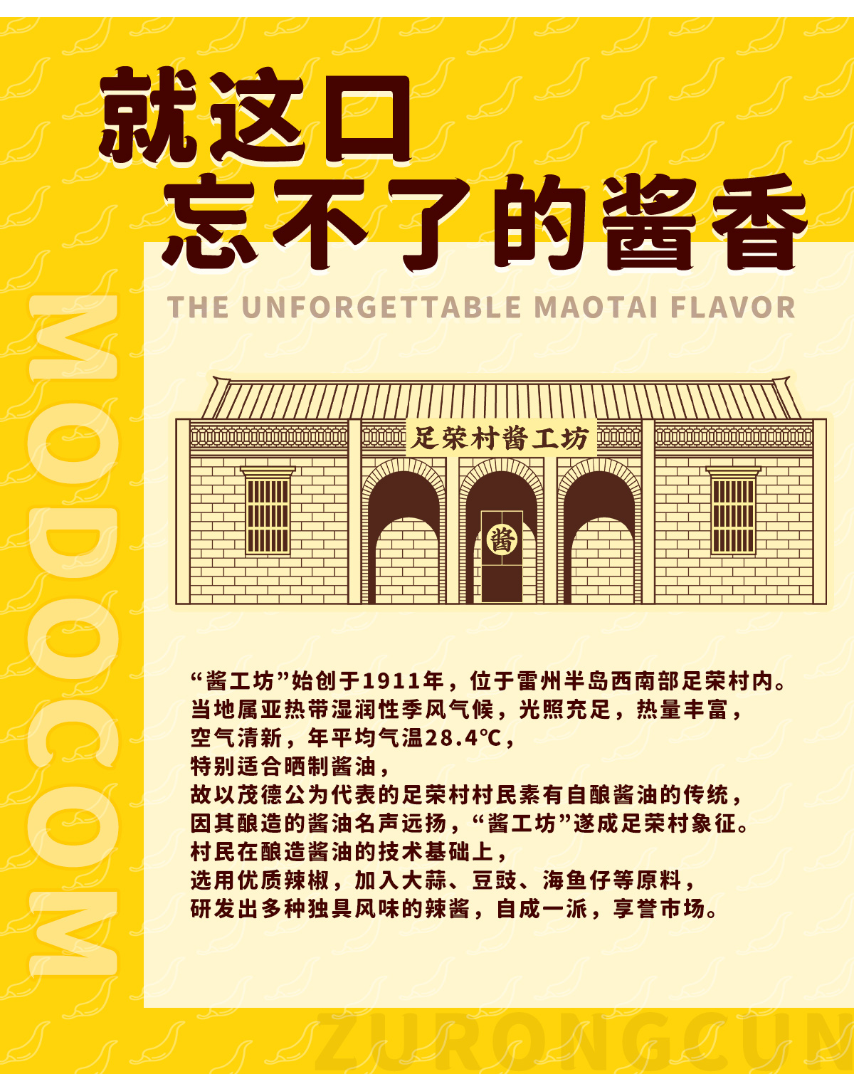 茂德公华南知名品牌,匠心之精心制作,保证产品品质及用户口碑;经营有:香辣酱、白酒、休闲零食、当地特产。