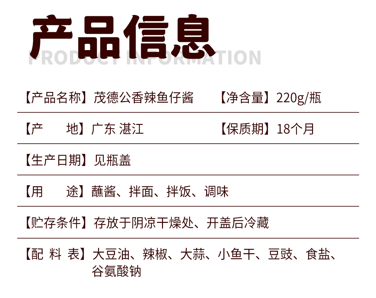 茂德公香辣鱼仔酱辣椒酱下饭菜拌饭酱拌面酱厨房调味酱220g