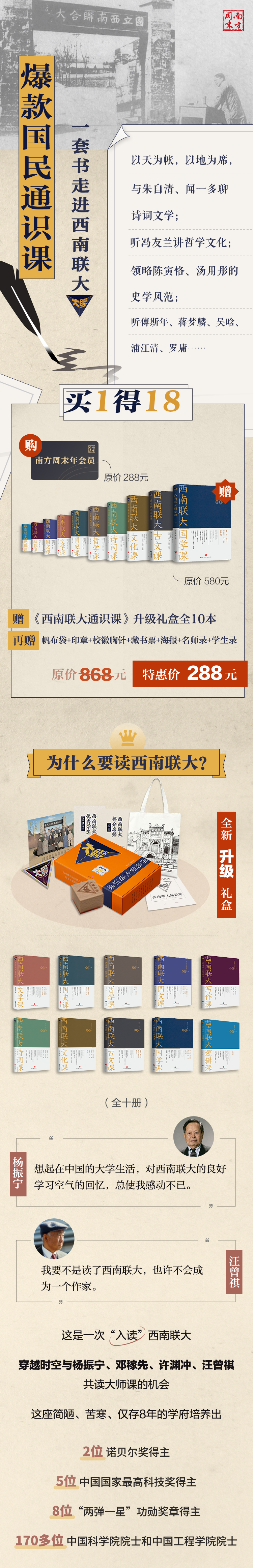 【买1得18】订阅南周年会员 赠:《西南联大通识课》礼盒装全10册+7大赠品