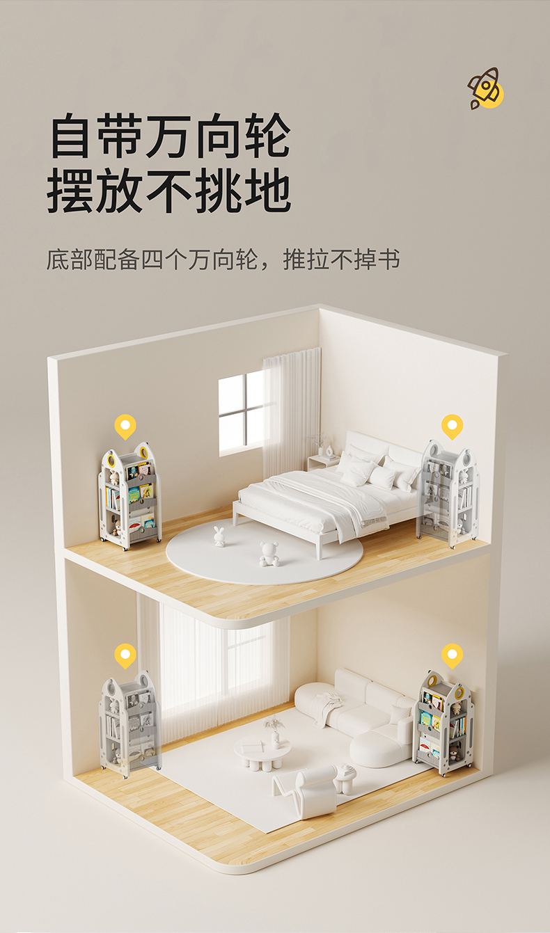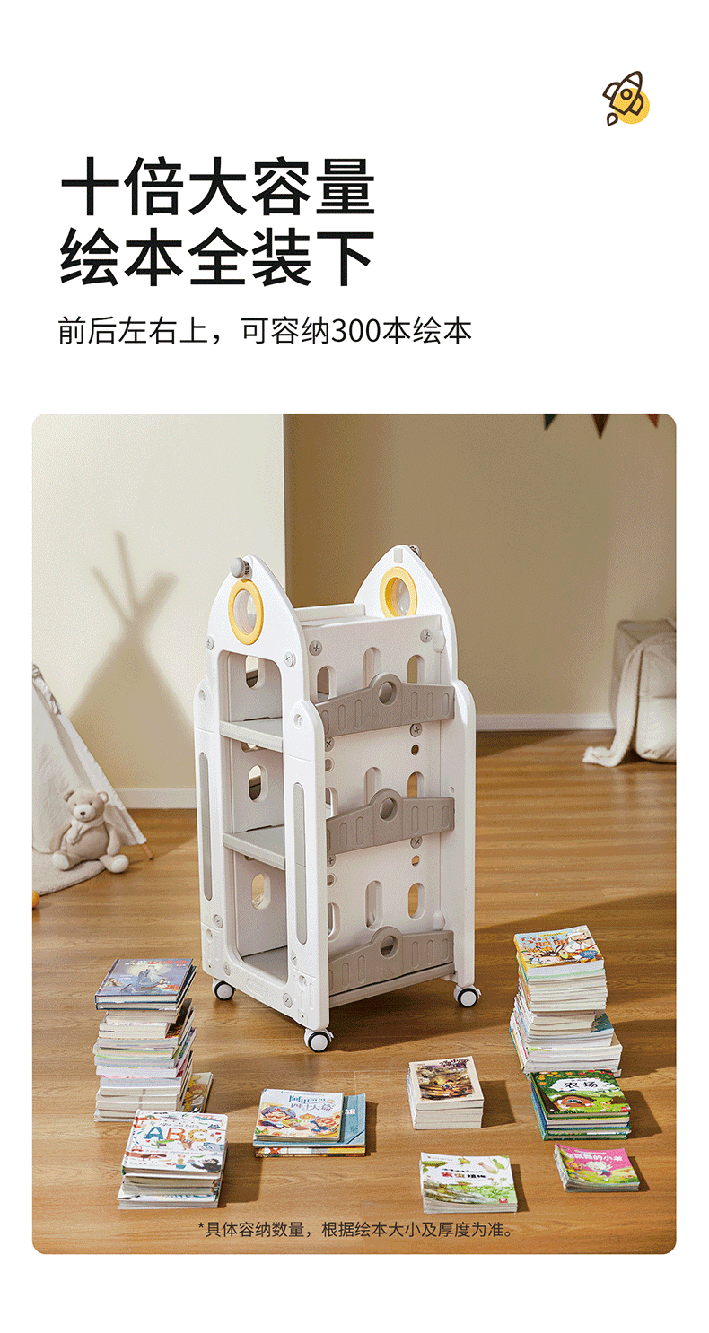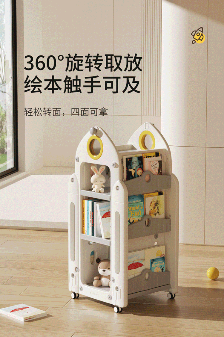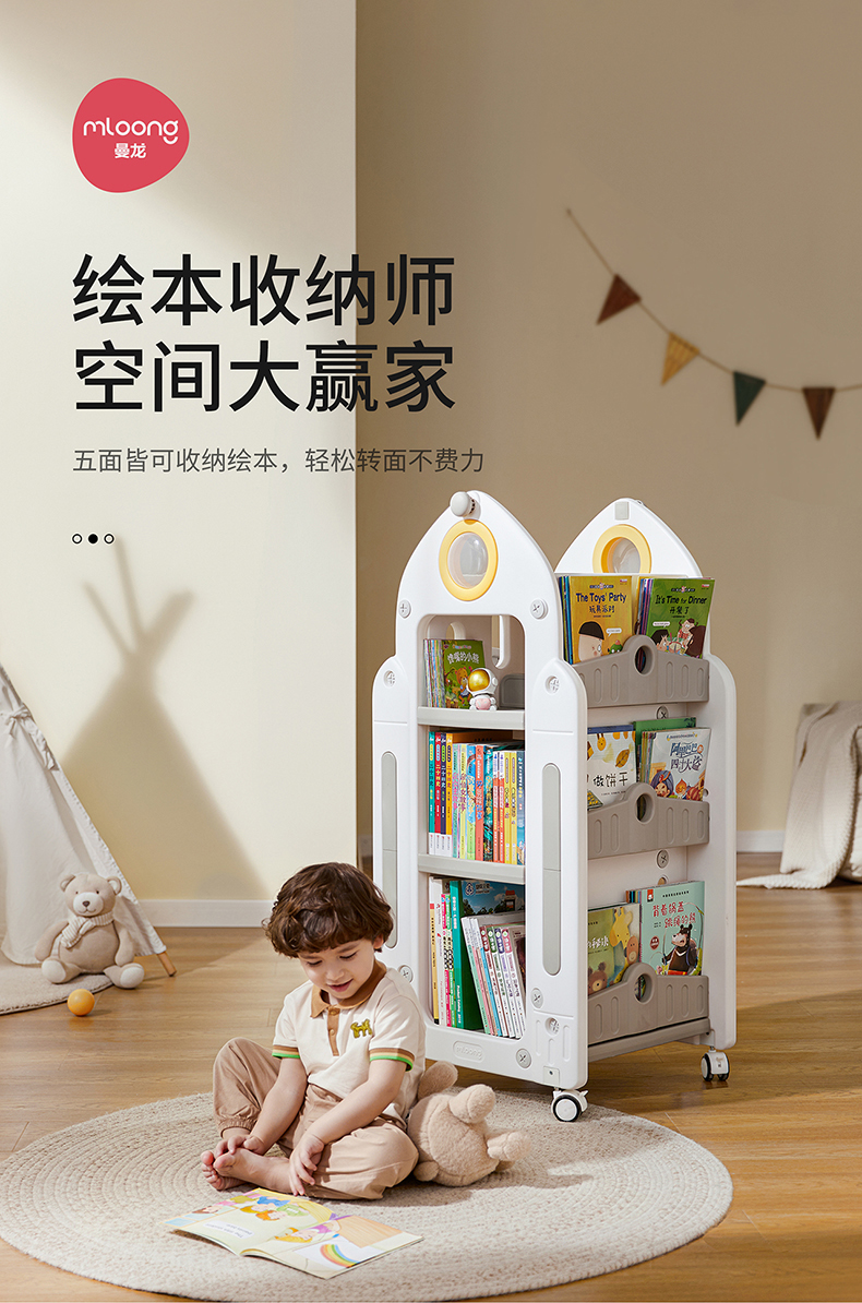 *曼龙mloong心愿屋绘本架 心愿屋儿童书架 家用收纳架 旋转一体落地书柜置物架玩具盒宝宝