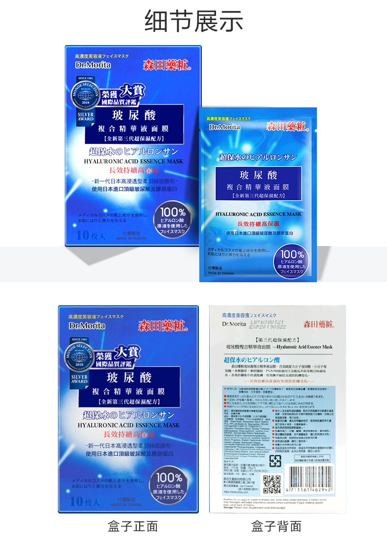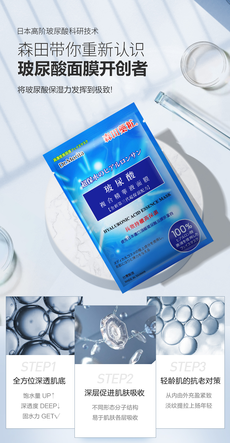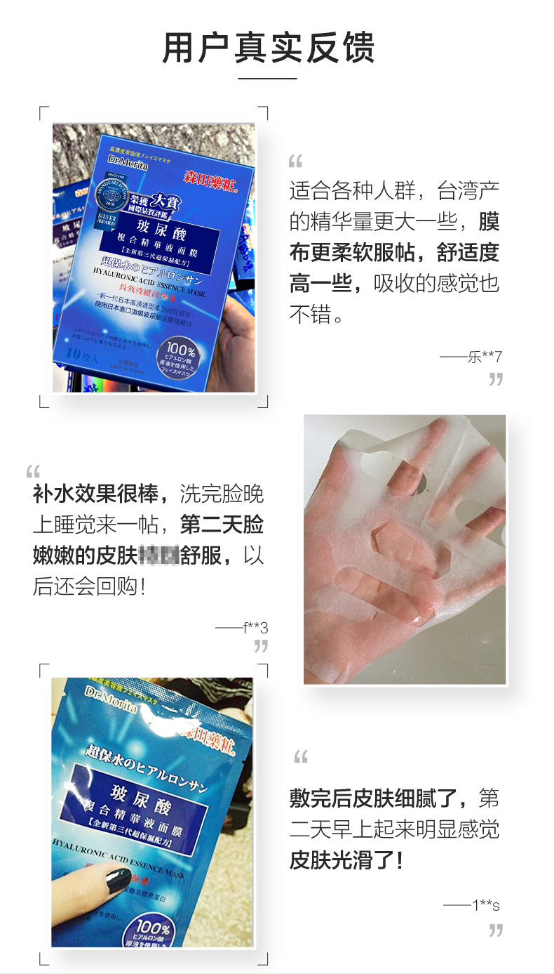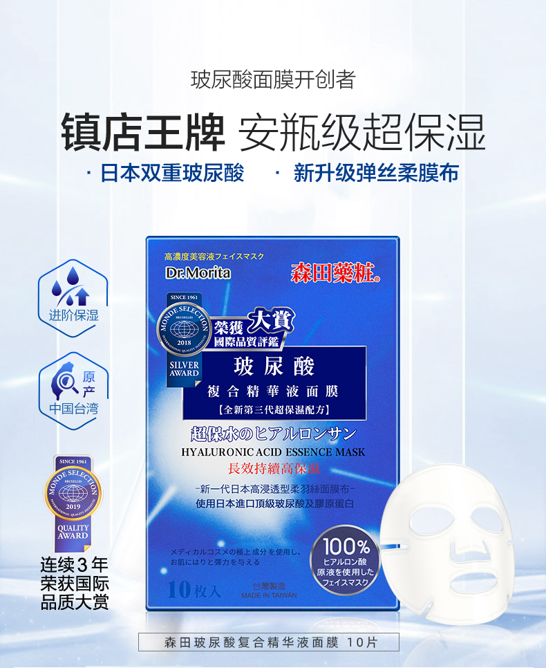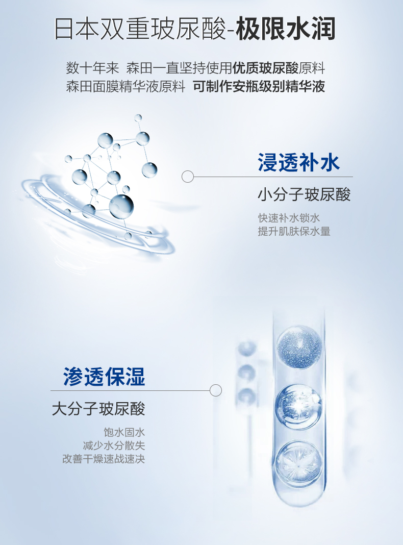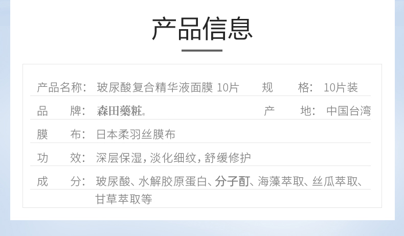 森田面膜女补水保湿玻尿酸原液10片新老包装随机发