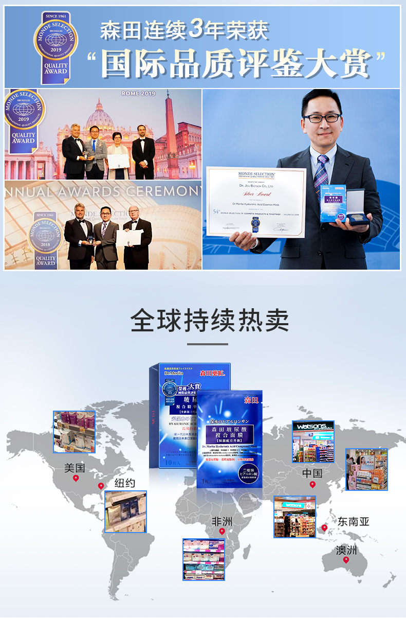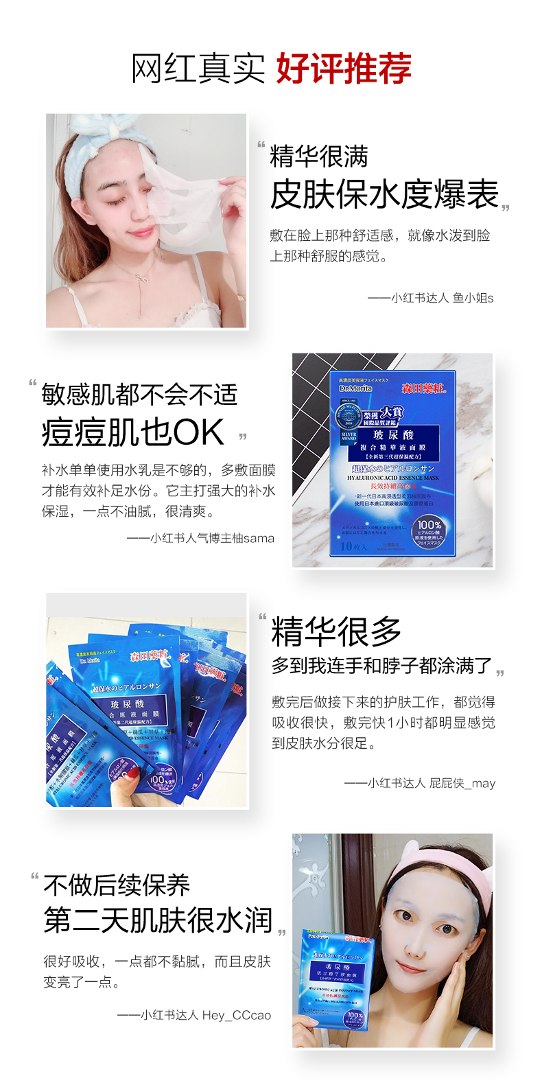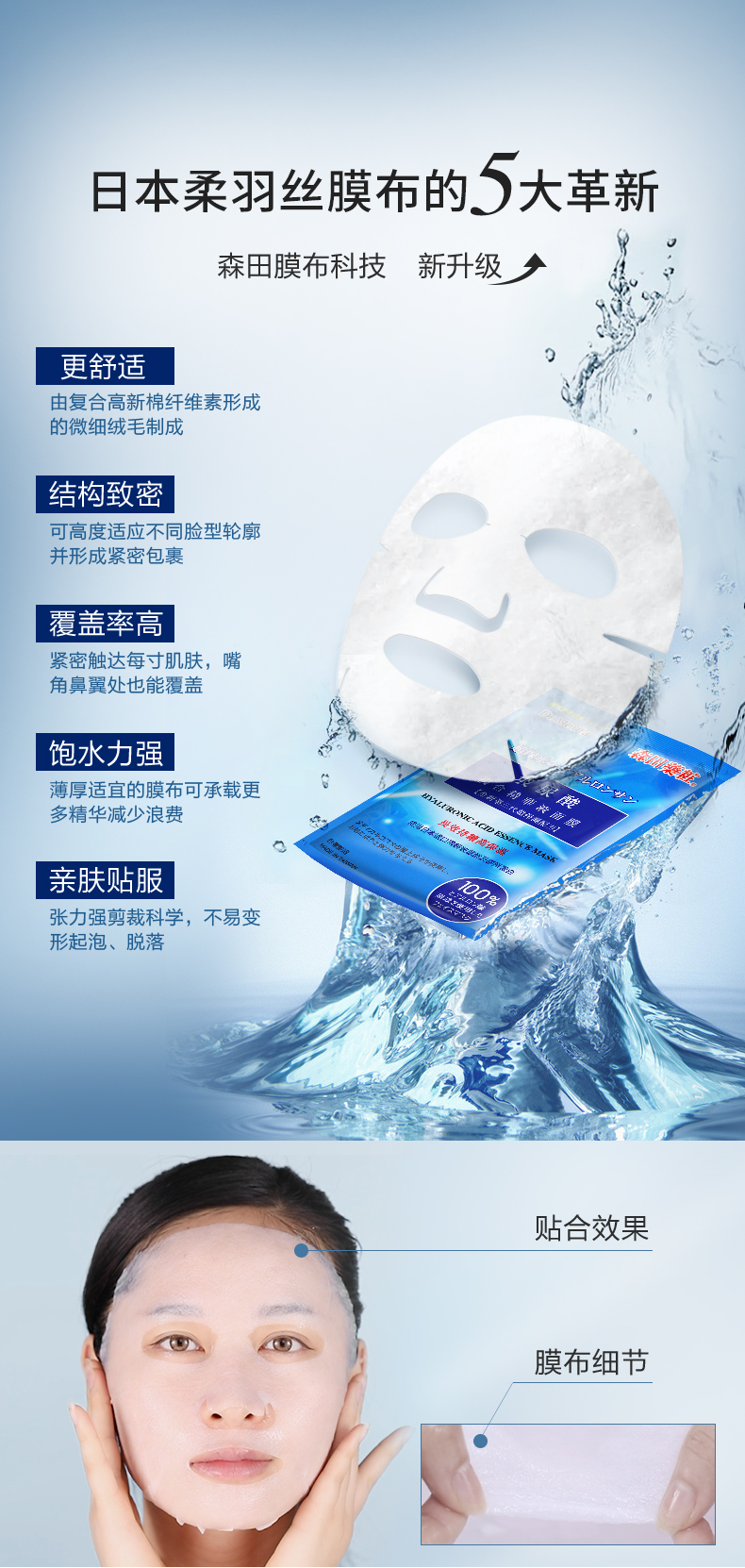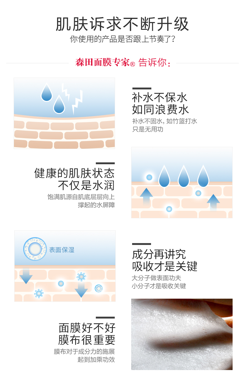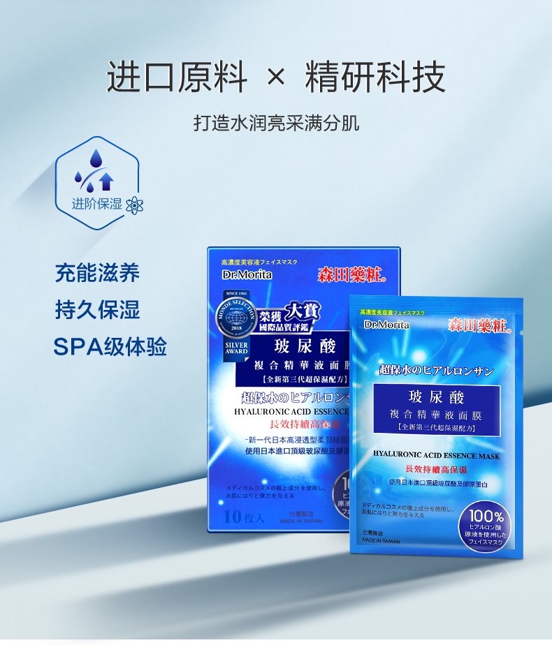 森田面膜女补水保湿玻尿酸原液10片新老包装随机发