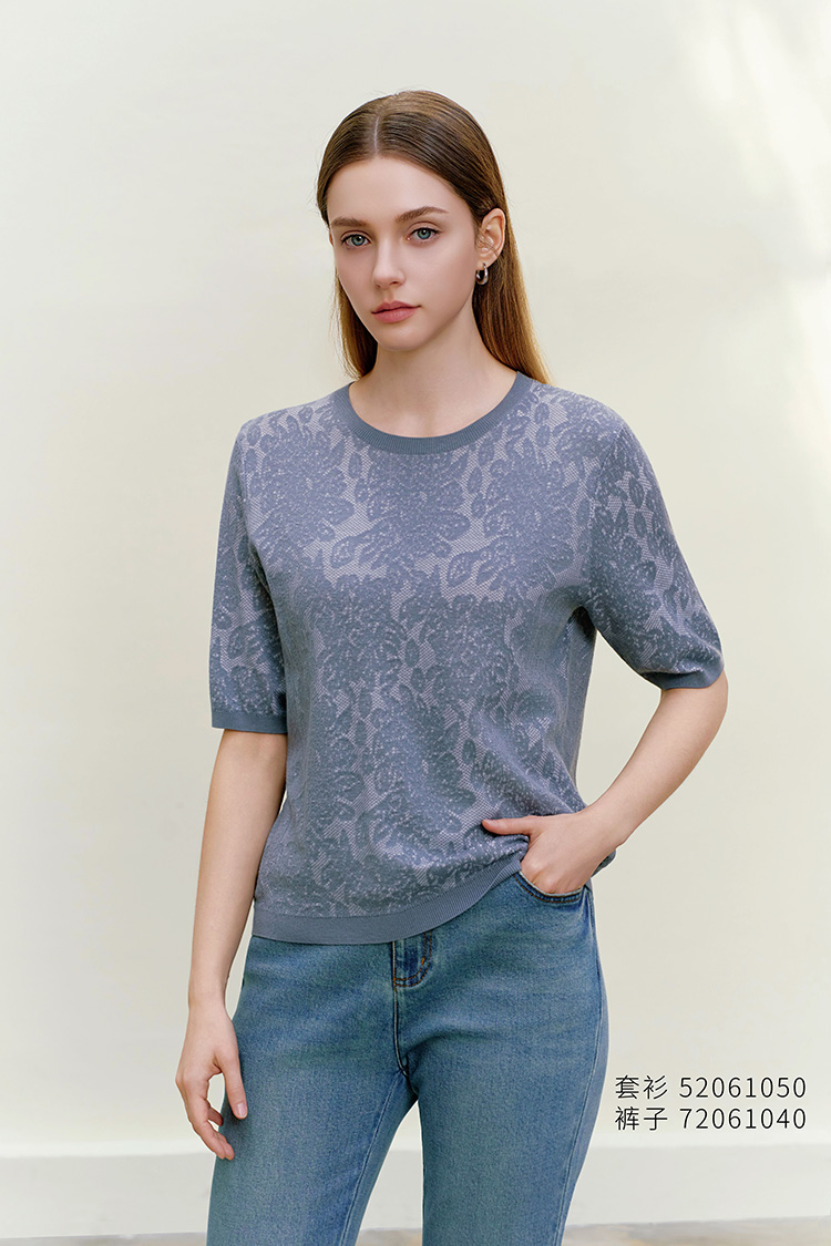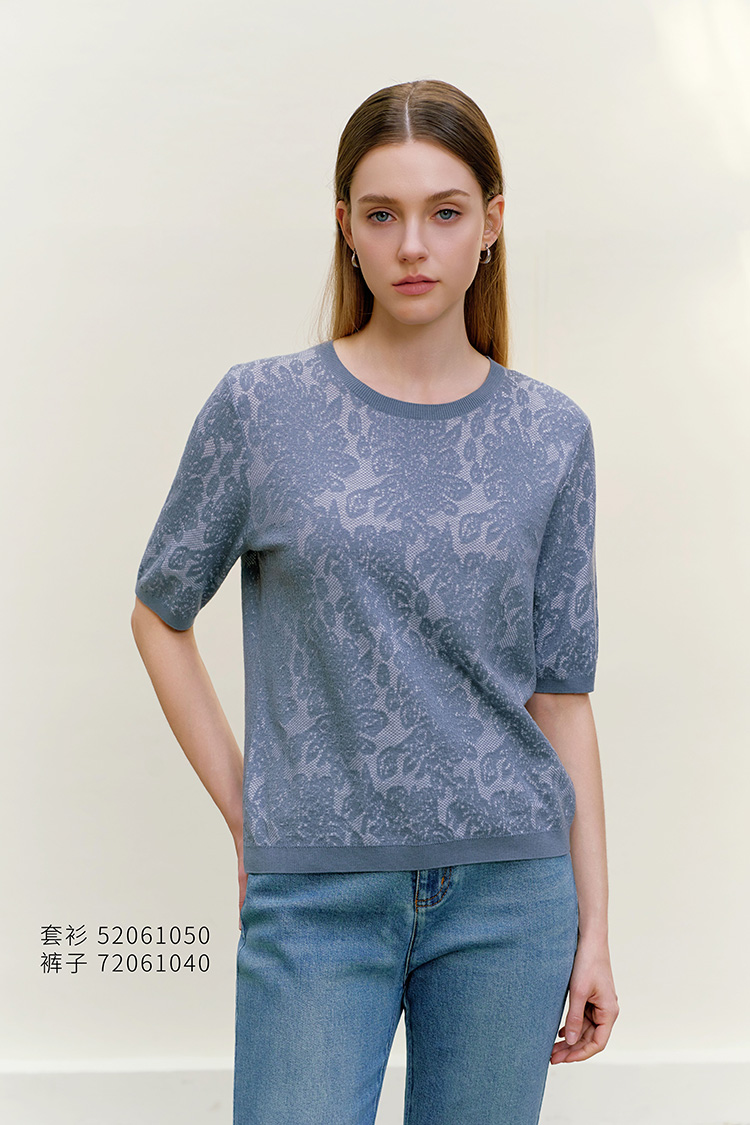【圆领短袖提花套衫】26年春夏新品女士圆领薄款圆领套头针织上衣