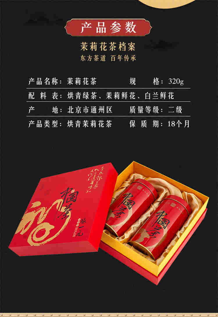 张一元 茉莉花茶金福礼盒 320g-YGF