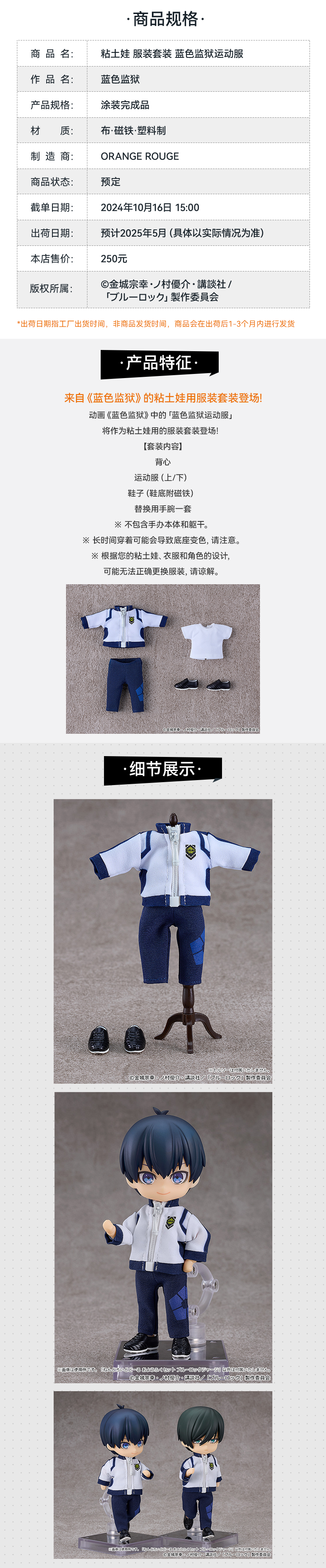 【GSC现货】粘土娃 服装套装 蓝色监狱运动服