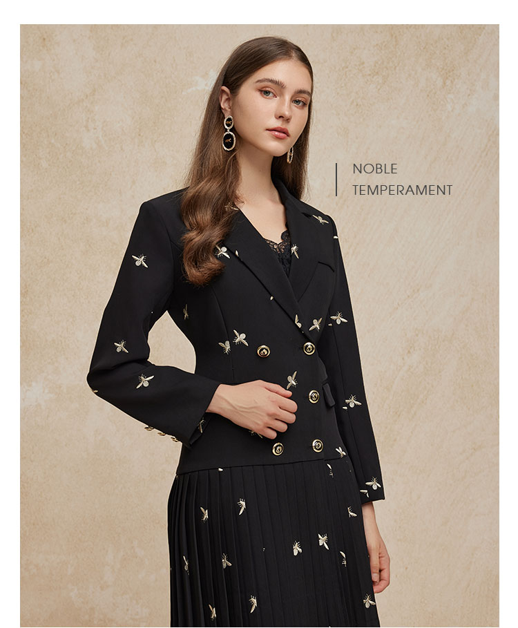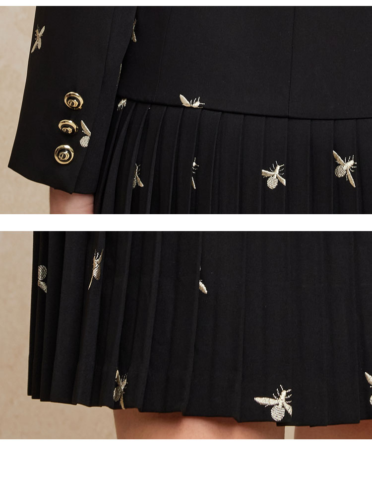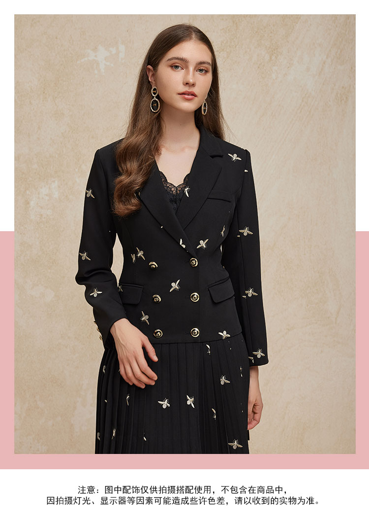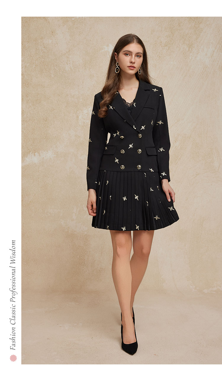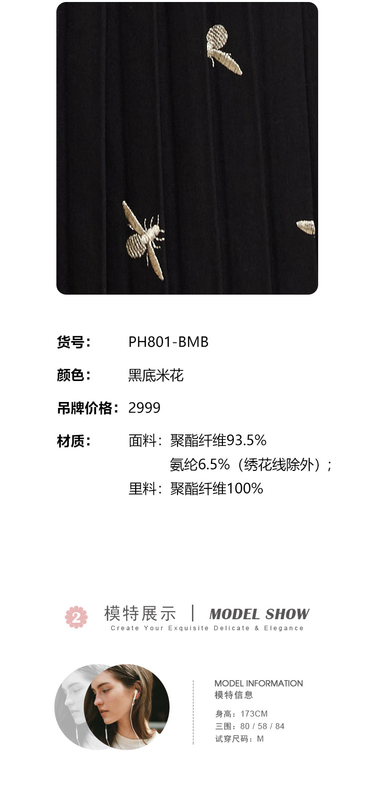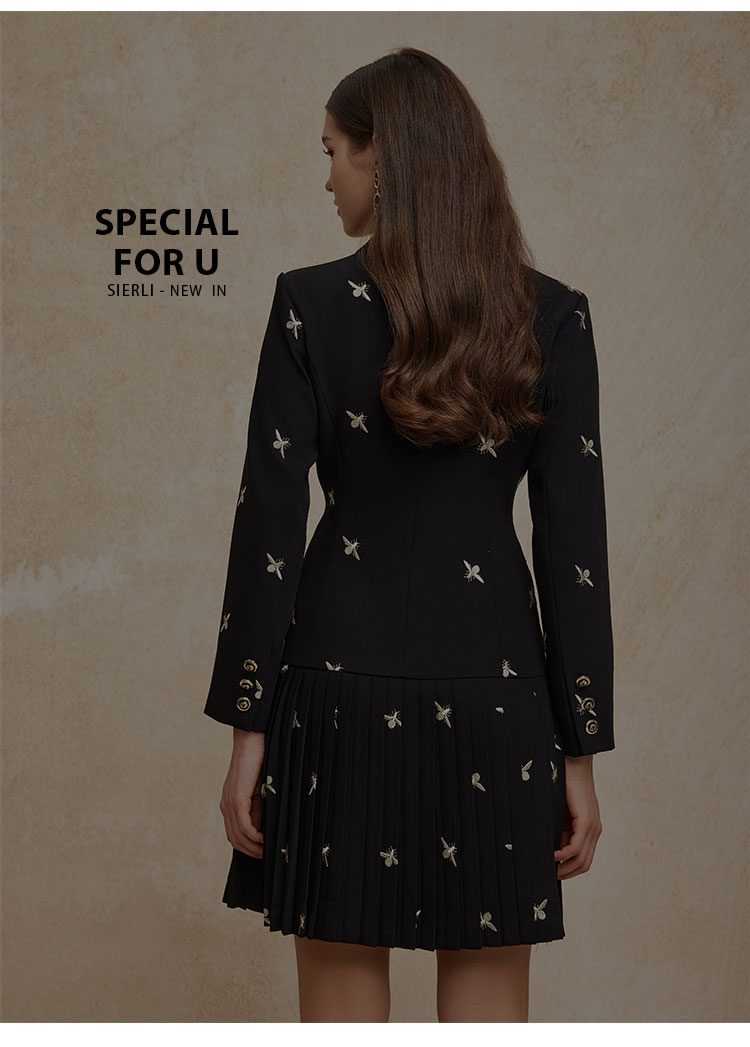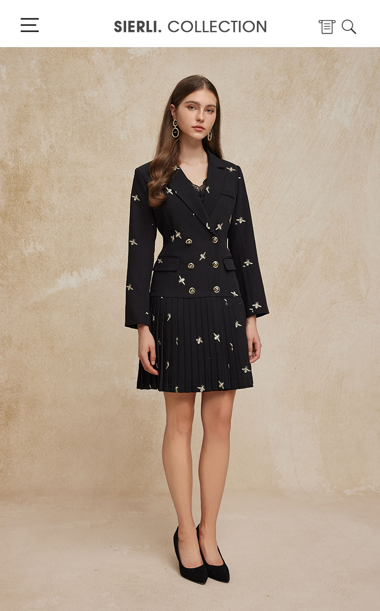 PH801斯尔丽2024秋冬新款风衣式连衣裙长袖下摆百褶绣花时尚减龄气质款