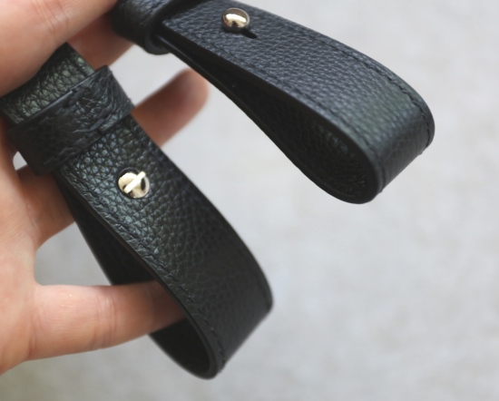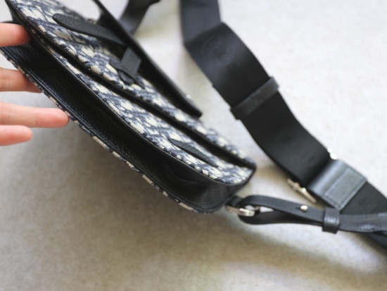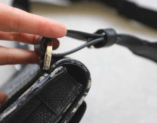 帆布老花 配黑色压纹牛皮 皮料挺厚实的 亮银色五金件 镜面效果